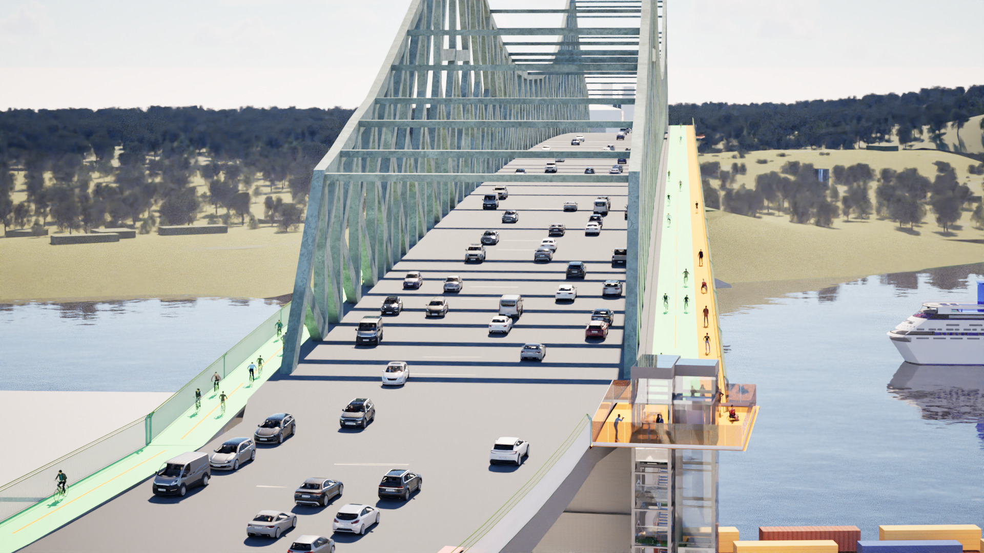 Spirales donnant accès au pont, passerelles permettant d’éviter le croisement des cyclistes et des automobilistes, pistes cyclables installées sous le tablier : les ingénieurs du consortium formé des firmes Parsons et WSP ont vraiment pensé « hors du cadre » lorsqu’ils ont soumis leurs propositions, en 2020. Le hic : le coût des aménagements retenus était estimé à l’époque entre 277 et 340 millions de dollars.