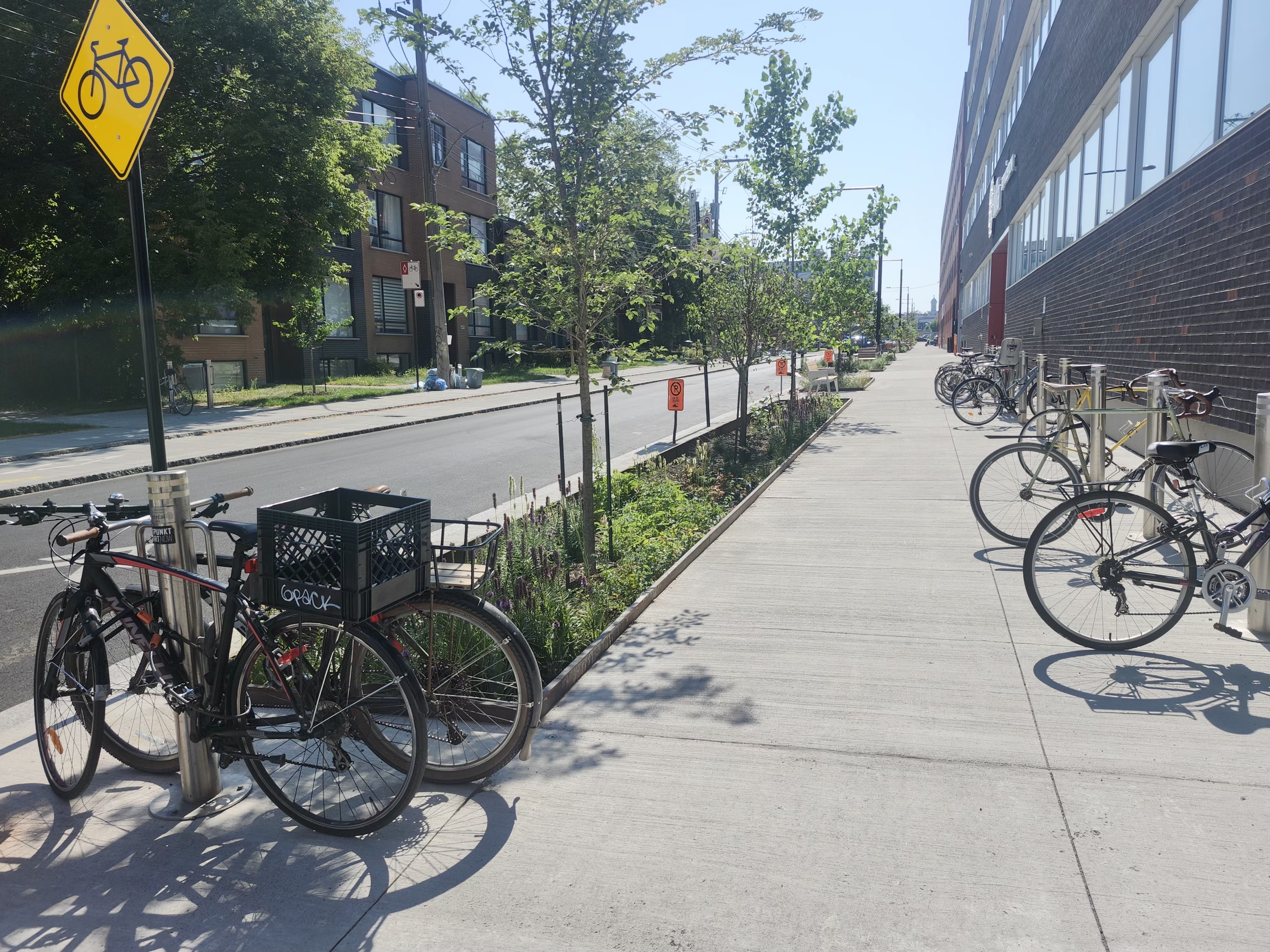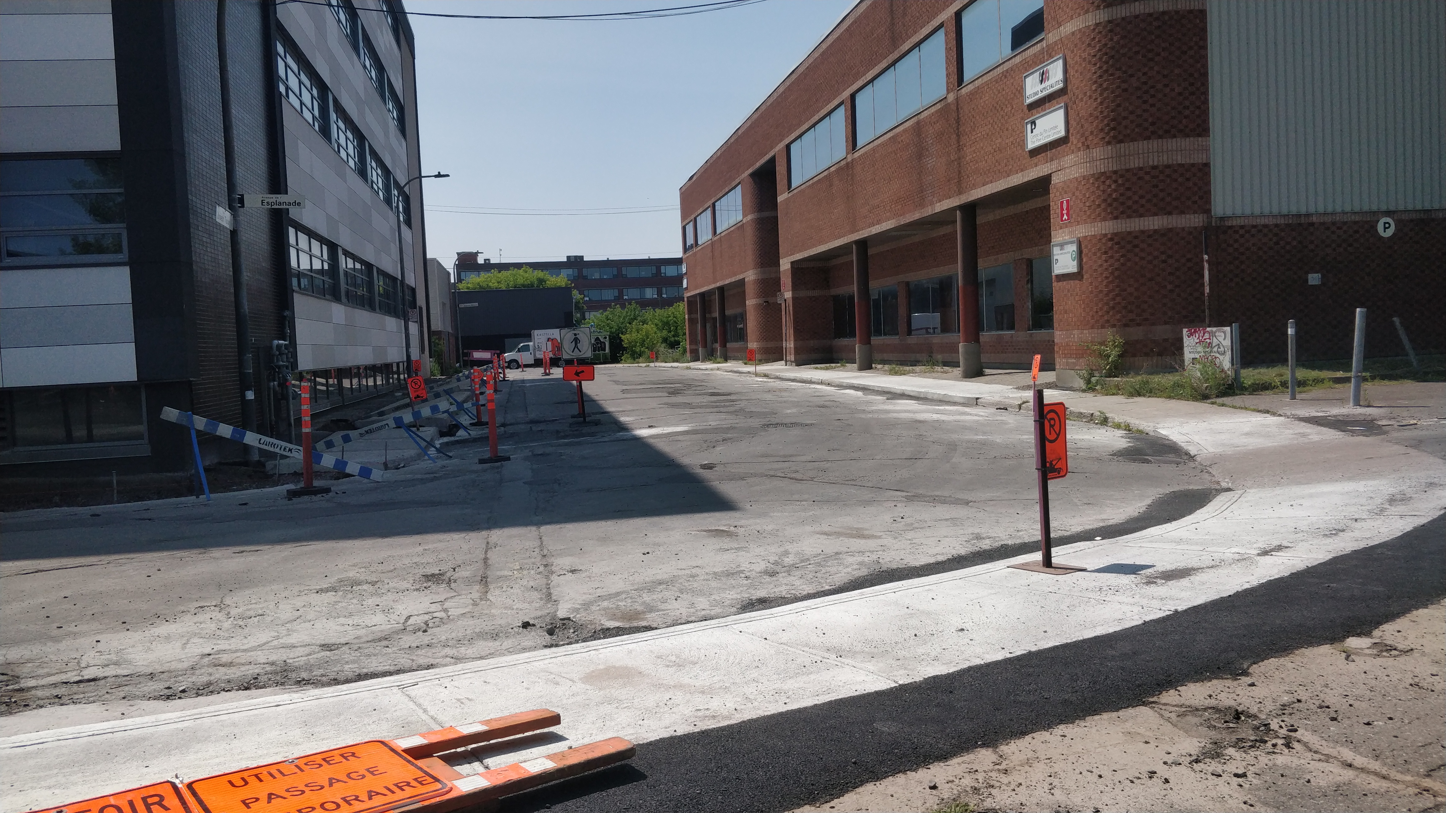 Endroit peu achalandé sur Avenue de l’esplanade dans le Mile Ex. Plusieurs nouveaux morceaux de trottoirs installés.