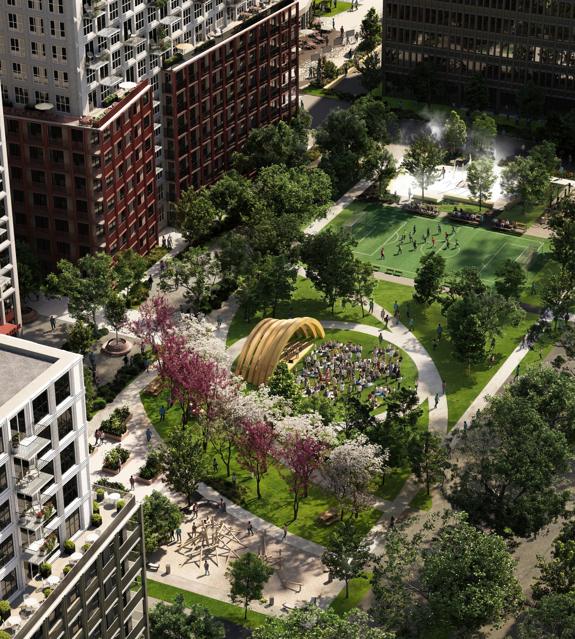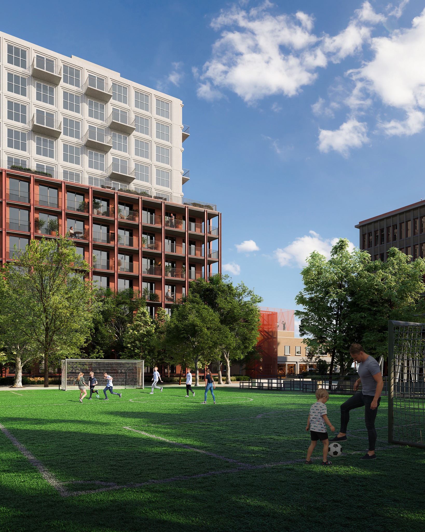 600 à 700 appartements dans des immeubles de moyenne hauteur offrant à la fois des logements abordables et aux loyers du marché.