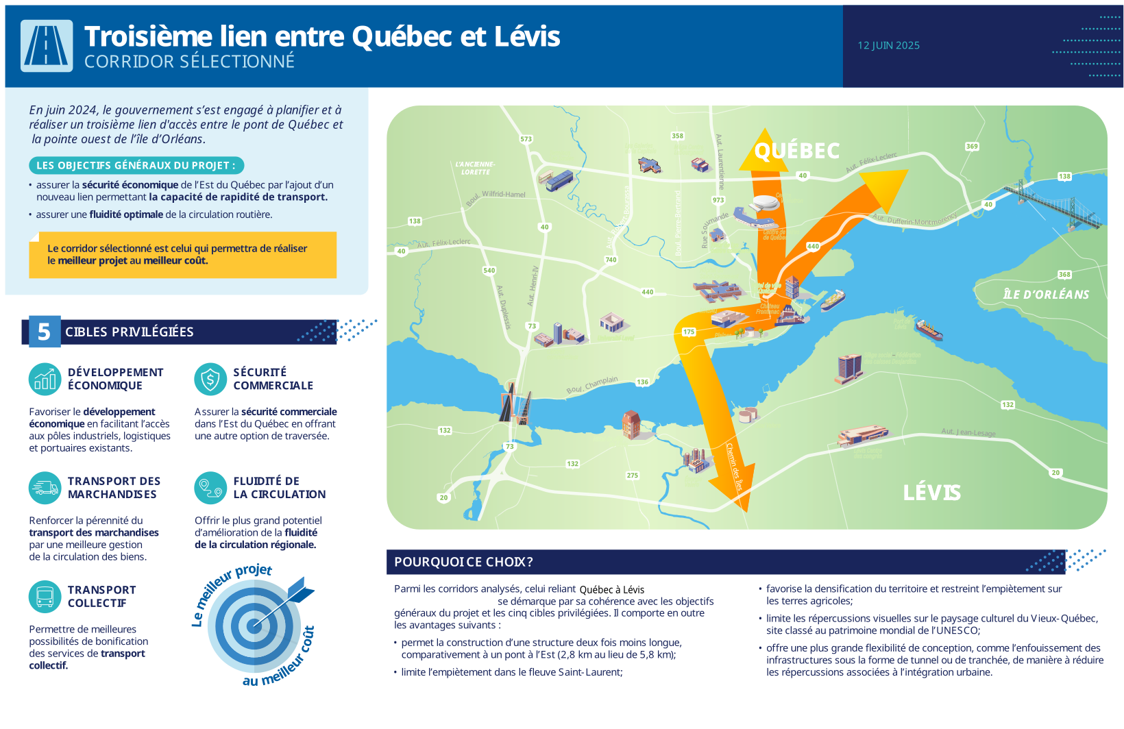 Le troisième lien sera un pont-tunnel reliant les secteurs de Saint-Romuald et Sillery. Mais le tracé précis, les sorties et le prix restent à déterminer.