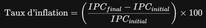 Plutôt, il faut utiliser cette formule pour obtenir le taux d’inflation entre l’année n2 et n1.