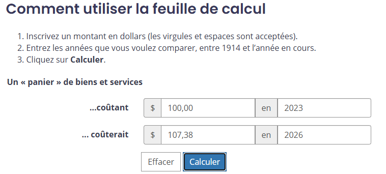 L’inflation au Canada depuis 2023 est de 7,38%. (Inflation Calculator - Bank of Canada)