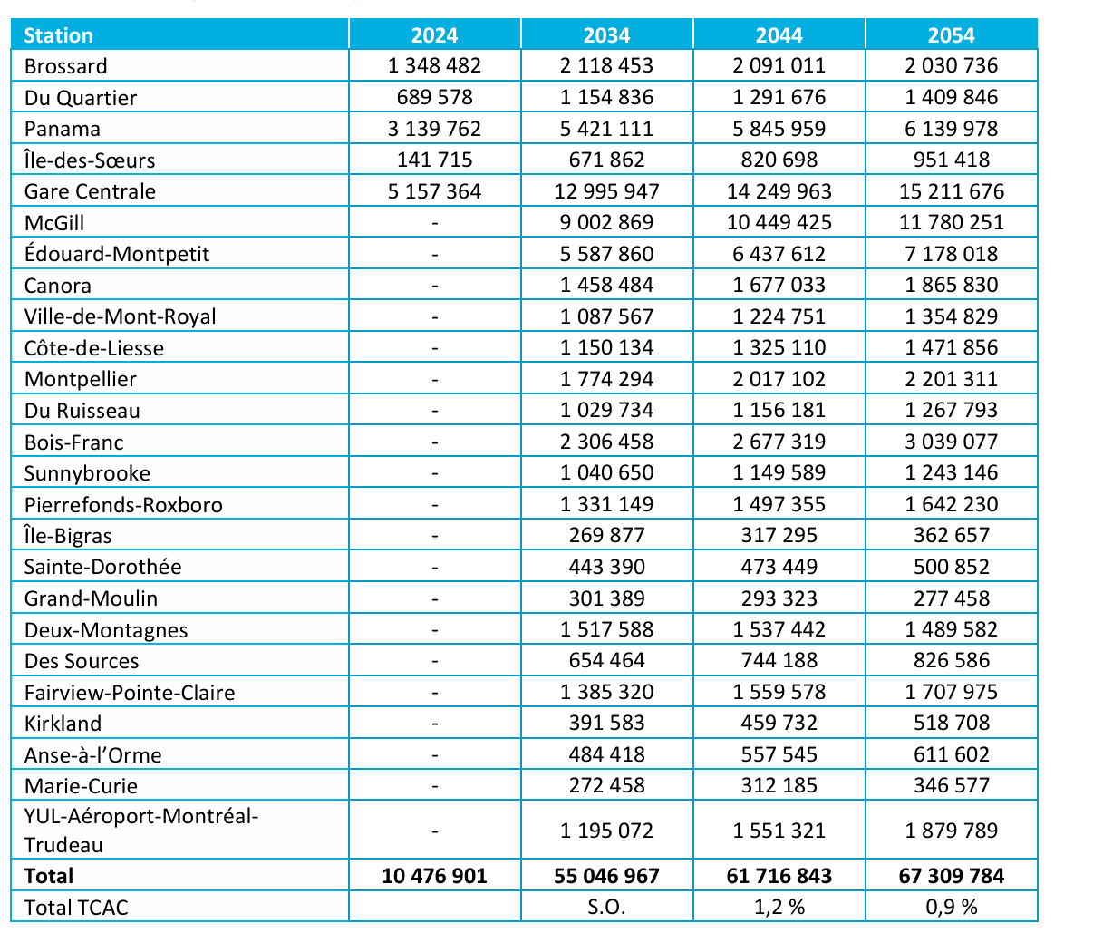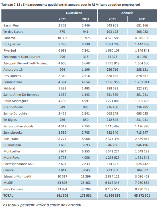 Seulement ça c’est en passagers annuels, contrairement à la prévision de 2016, qui utilisait des passagers quotidiens, donnée qui ciblent seulement les jours de semaine non-fériés.