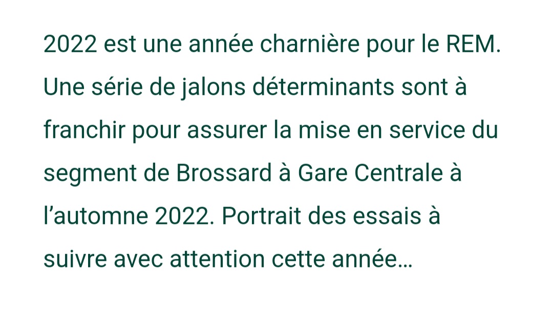 Négativisme? Je fais juste pointer que pour ajouter 50km de métro, il va falloir trouver une alternative au REM pendant ces 4 à 6 semaines… c’est très valide comme problème. J’ai pas dit que ça avait pas d’allure, juste que UNE navette aux dix minutes ne peut pas remplacer un train plus fréquent que ça, même pendant la période creuse de l’été.