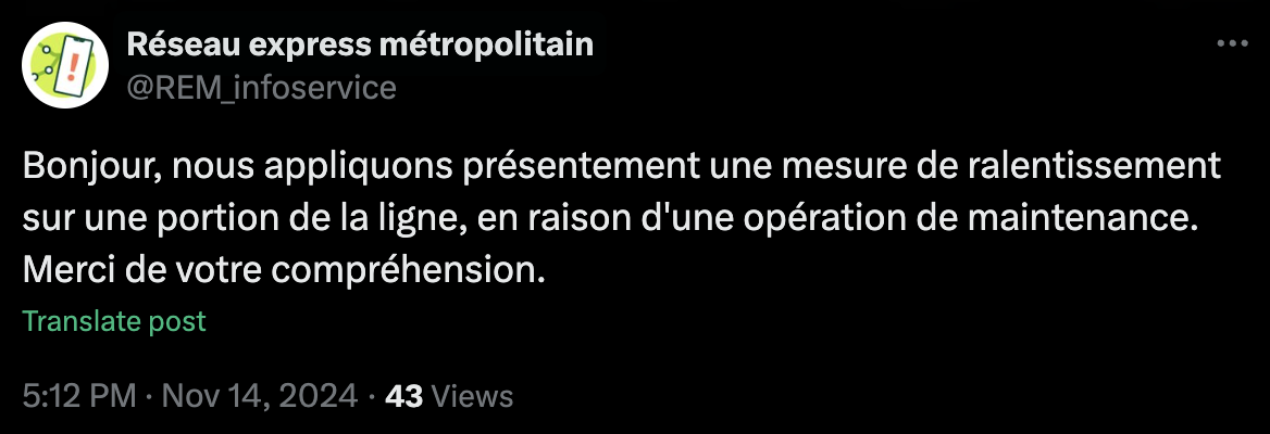 Quand même curieux qu’il y ait des travaux de maintenance sur un tronçon qui a ouvert il y a un peu plus d’un an mais bon ![]()
