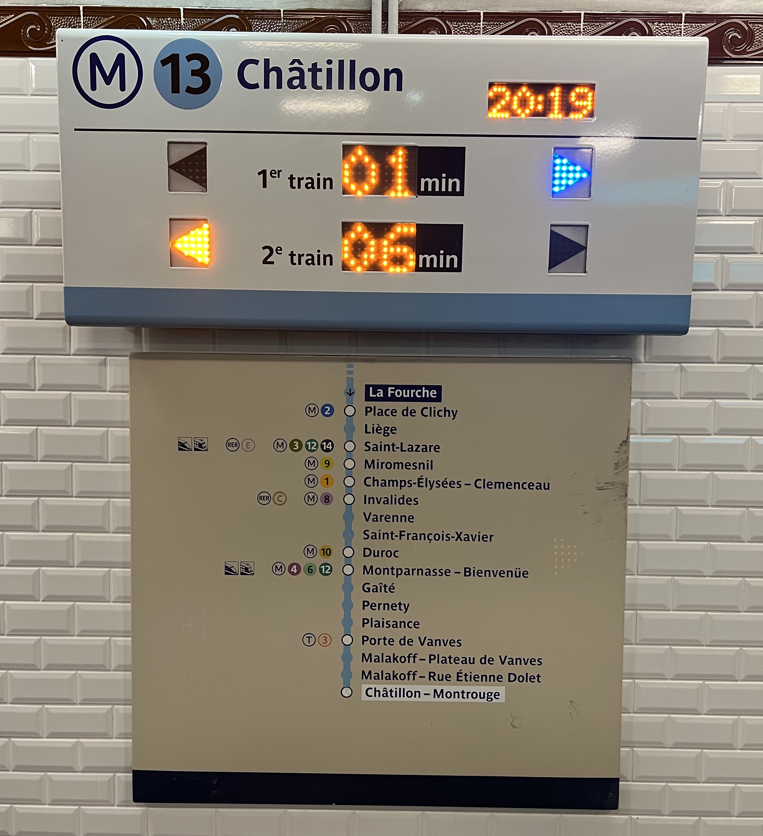 Fun fact: pour des raisons historiques, la station La Fourche de la ligne 13 (où la ligne se sépare en deux branches, d’où son nom!) a 3 quais sur 2 étages, mais les trains vers le centre venant des branches arrivent sur 2 quais sur des étages différents. Les trains vers les branches partent d’un seul quai sur l’étage supérieur.