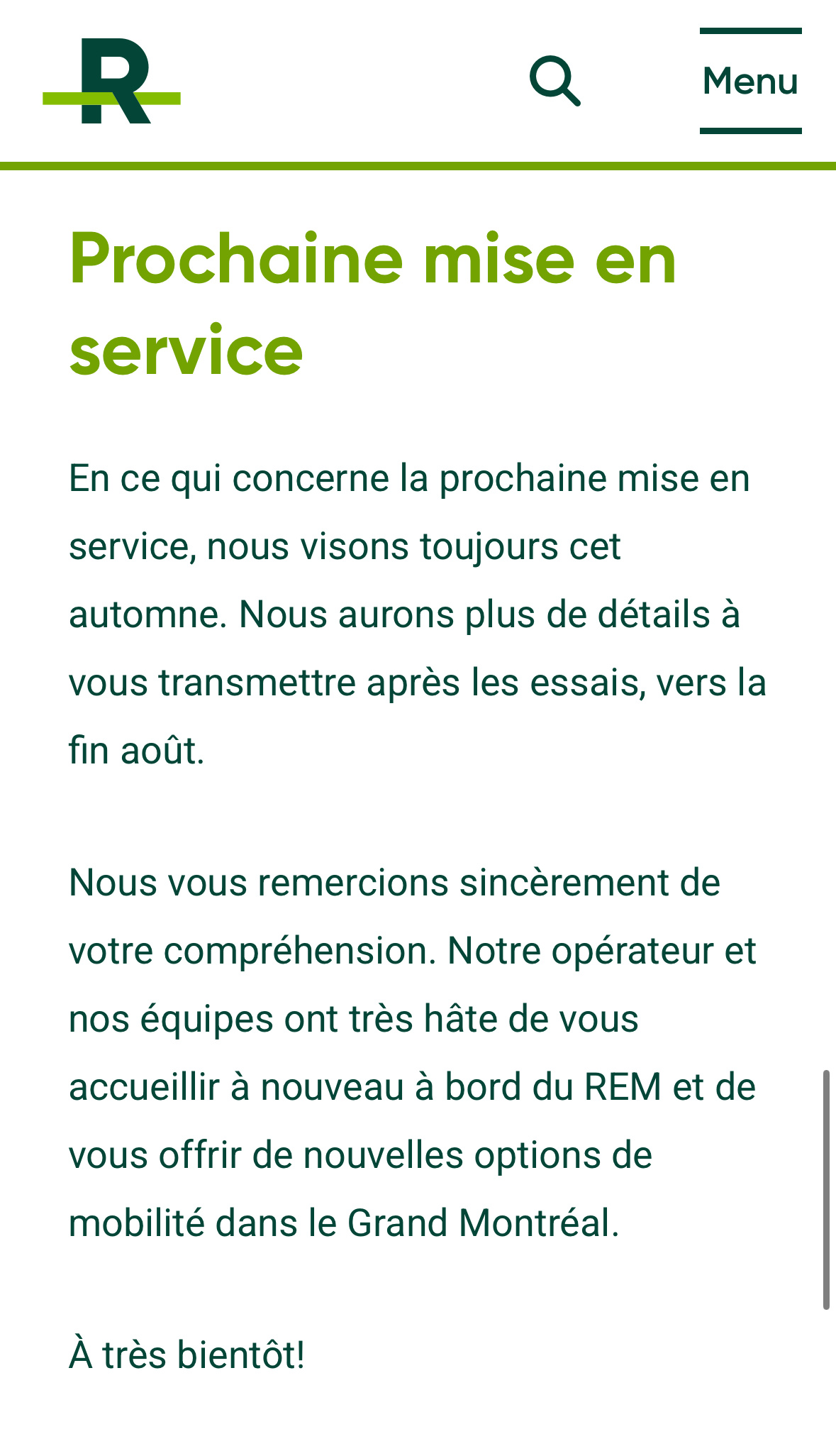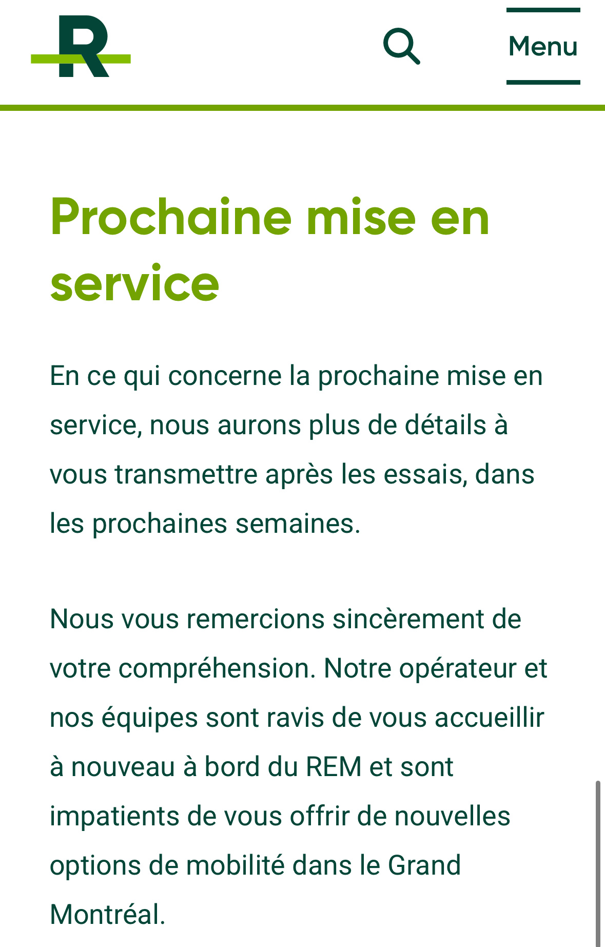 Voici les mises à jour du 4 août et 25 août 2025 en captures d’écran sur la prochaine mise en service du site Cap sur la prochaine mise en service | REM