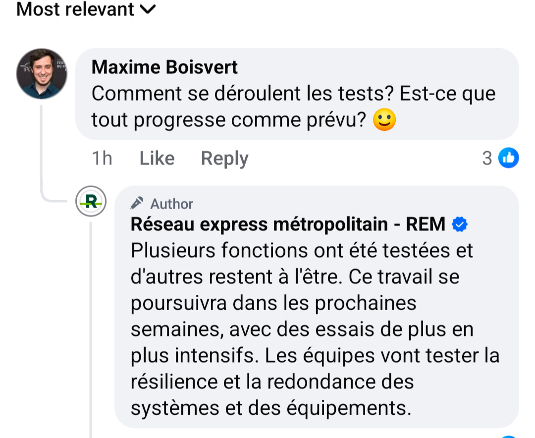 Salut! Avez-vous vu le REM être testé hier, soit Rive Sud ou les deux nouveaux axes? Je me demande si je vais le voir aujourd’hui direction AAO