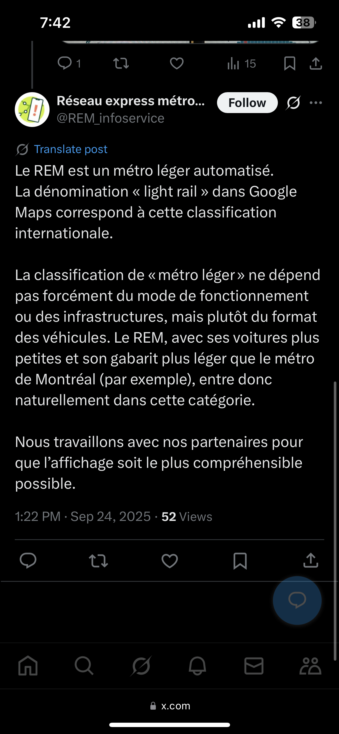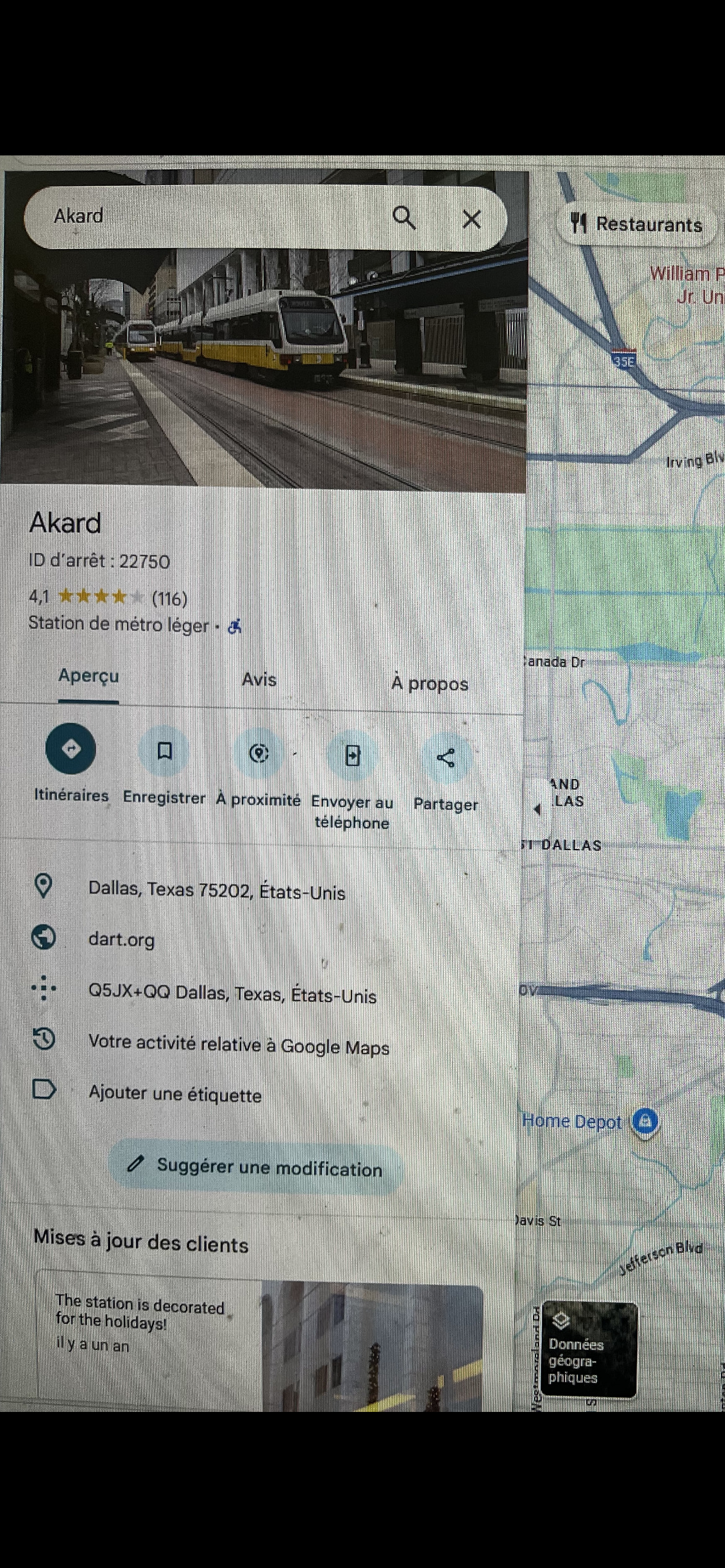 Le Vancouver Skytrain est beaucoup mieux considéré sur les maps que le REM. Le REM à littéralement le même icône qu’un tramway. Pour une raison ou une autre dans Google Maps « métro léger» en français se traduit à « light rail » en anglais. Regarde tous les systèmes qui sont considérés dans la même catégorie que le REM sur Google Maps. Voici Dallas et Houston. J’ai beaucoup plus d’exemple. Ces systèmes n’ont rien avoir avec le REM en terme d’infrastructure.