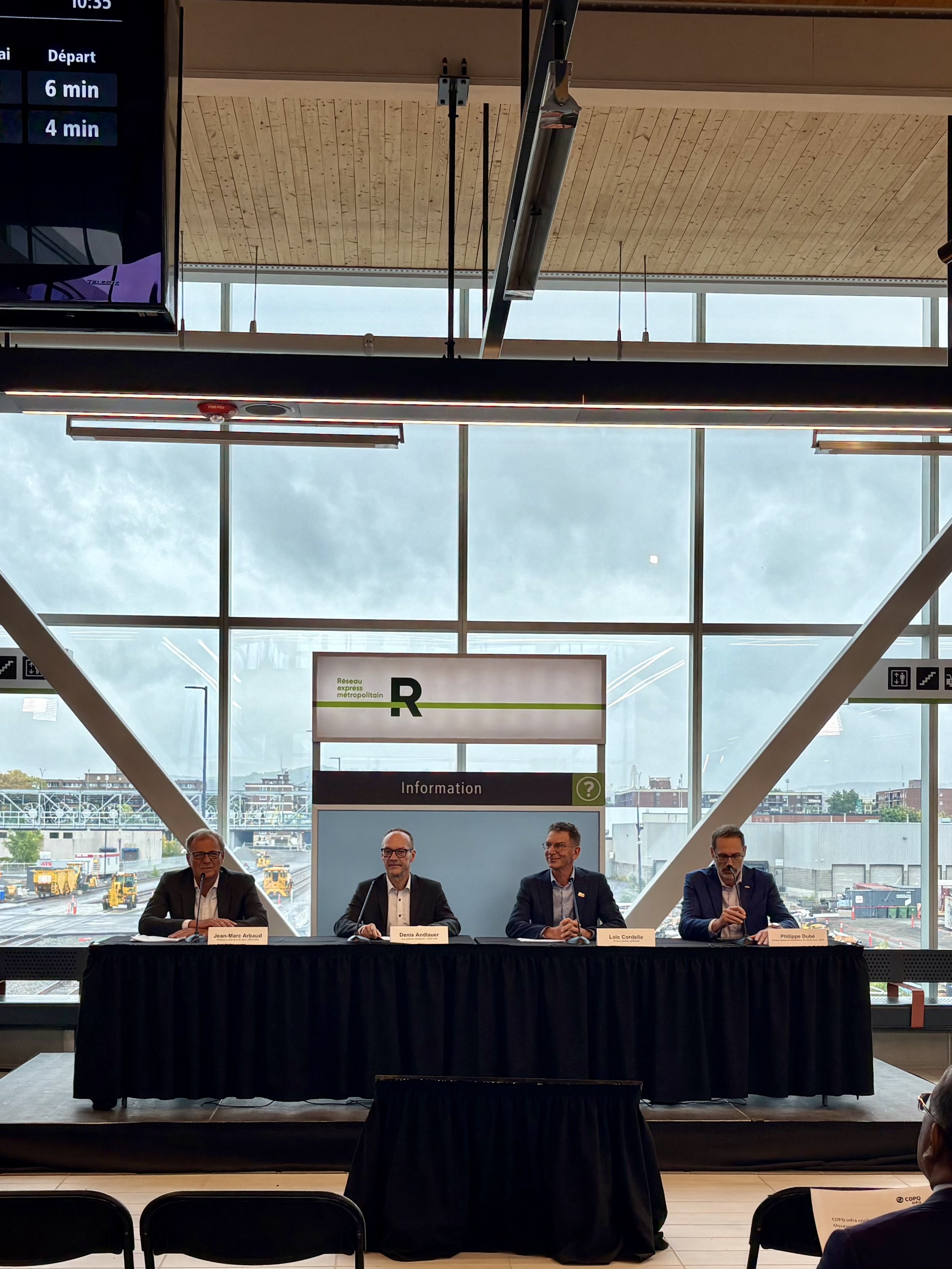 The four horsemen of the apocalypse hunched over microphones. The worst way to way to do a newser. Would that the system will (eventually) work more efficiently than the comms at CDPQ Infra.