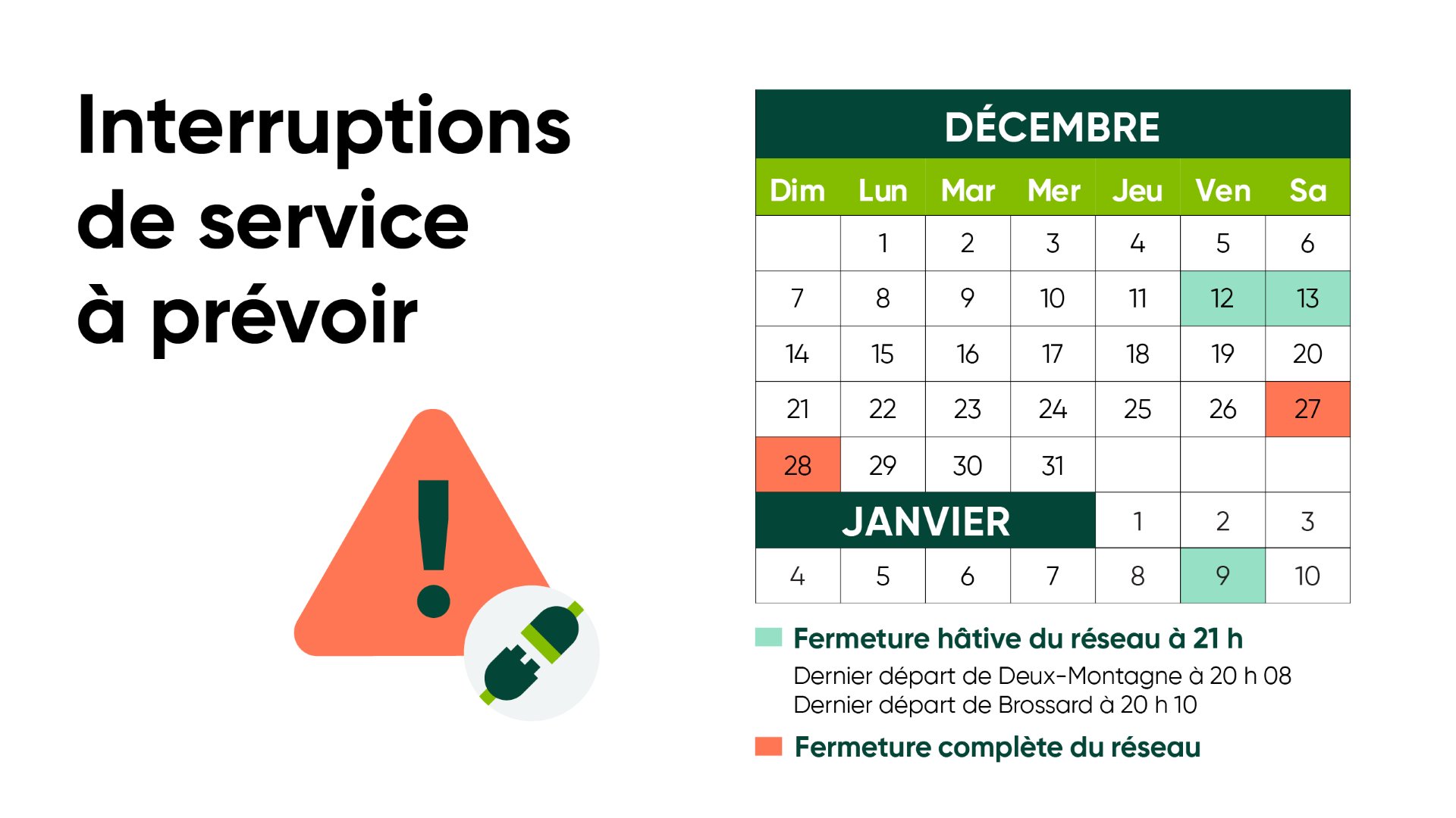 -Fermeture hâtive du réseau les 12, 13 décembre et le 9 janvier