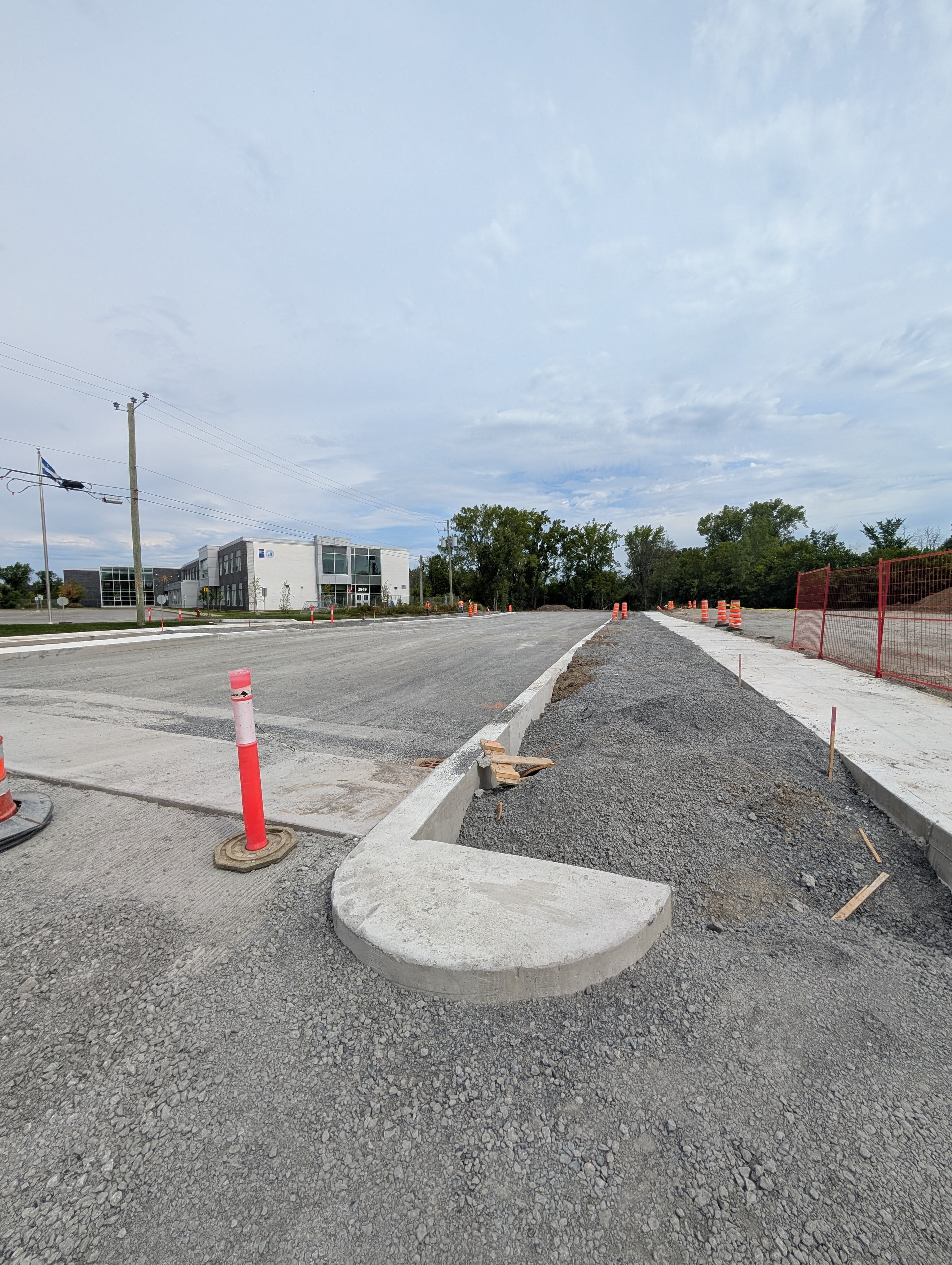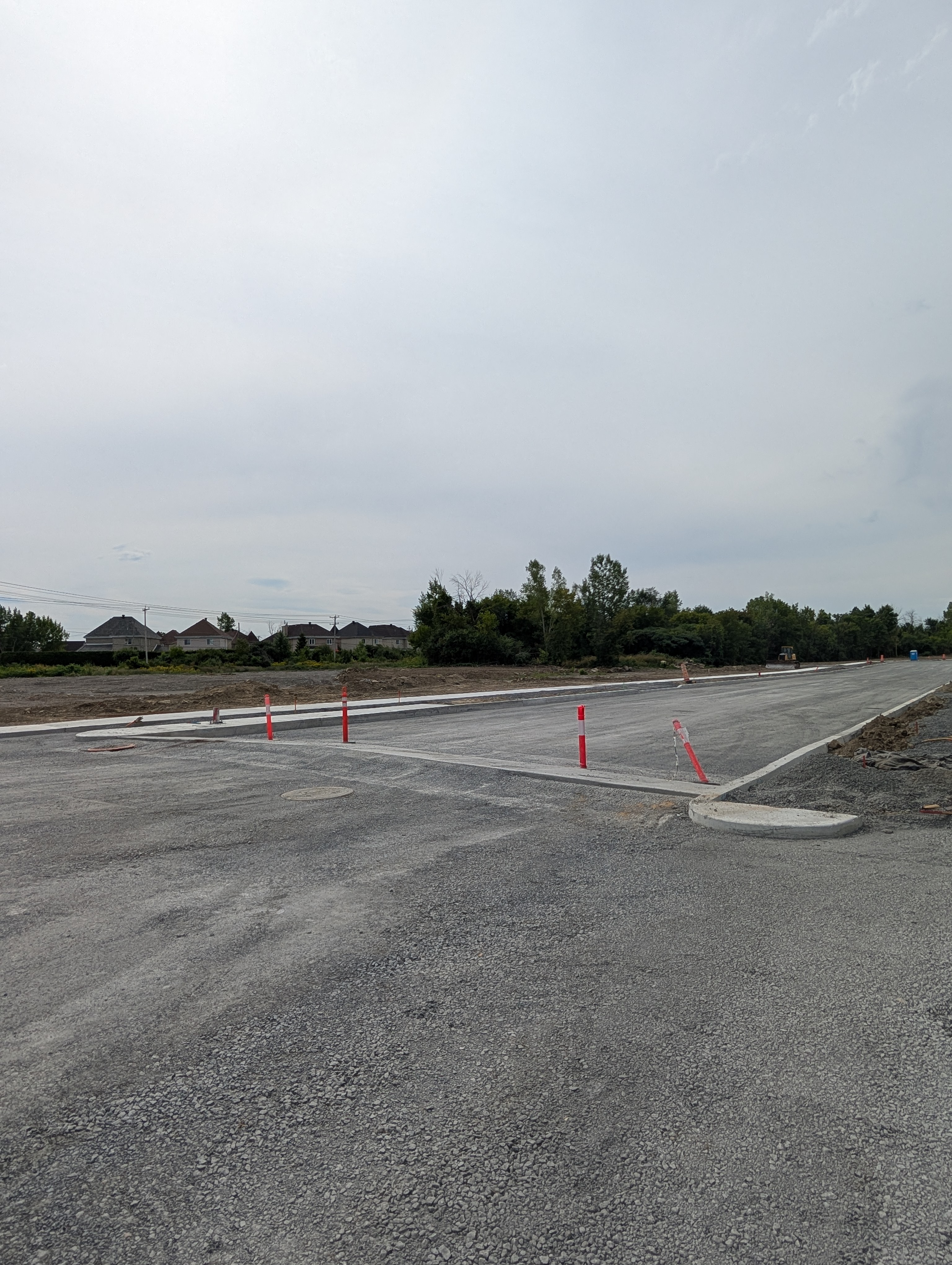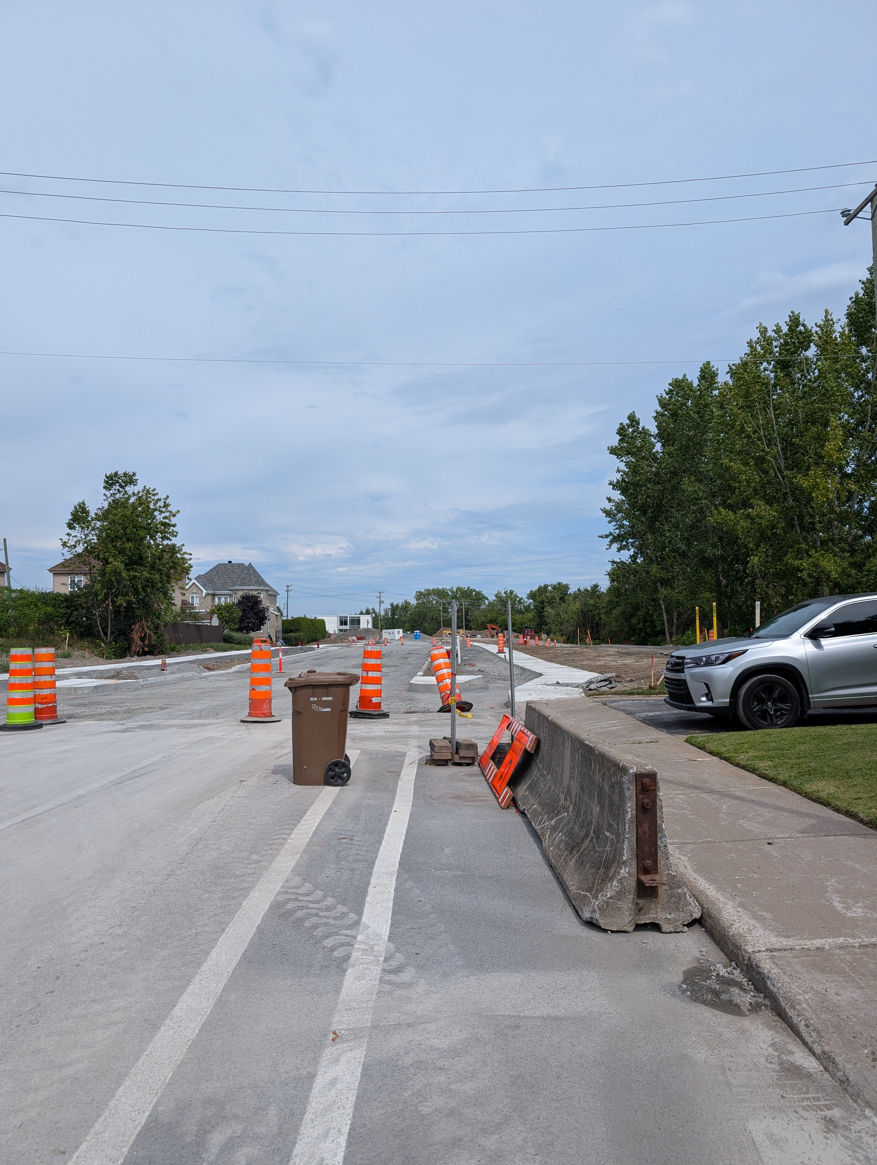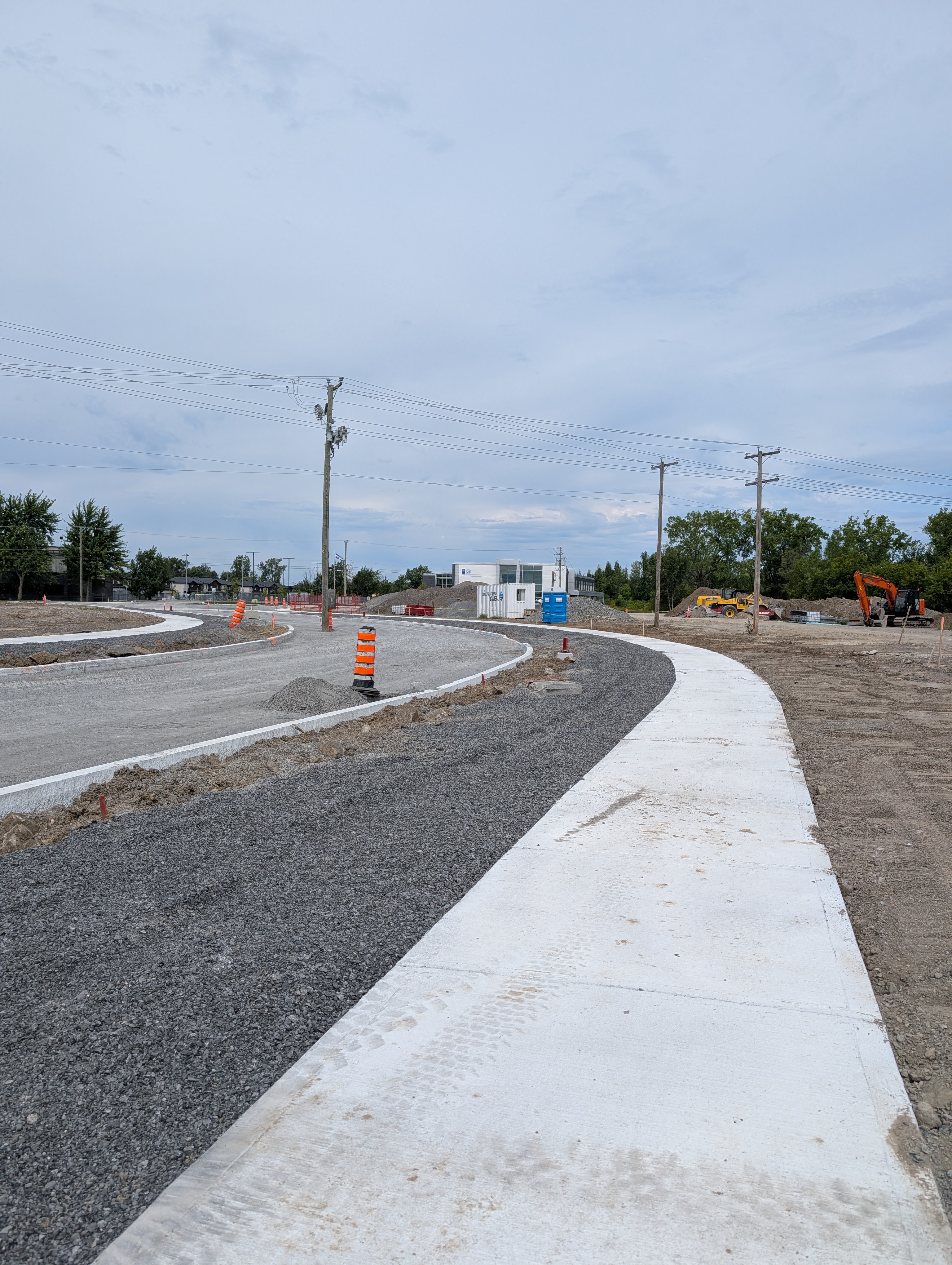 Prolongement du boulevard de la Renaissance (Laval) et réaménagement de la connexion entre Renaissance et Rossignol en cours, incluant déploiement de pistes unidirectionnelles, réalignement de la géométrie et implantation d’une intersection surélevée. Ça progresse en vue du déploiement de nouvelles unités dans le secteur, le tout par l’intérim d’une DSM.