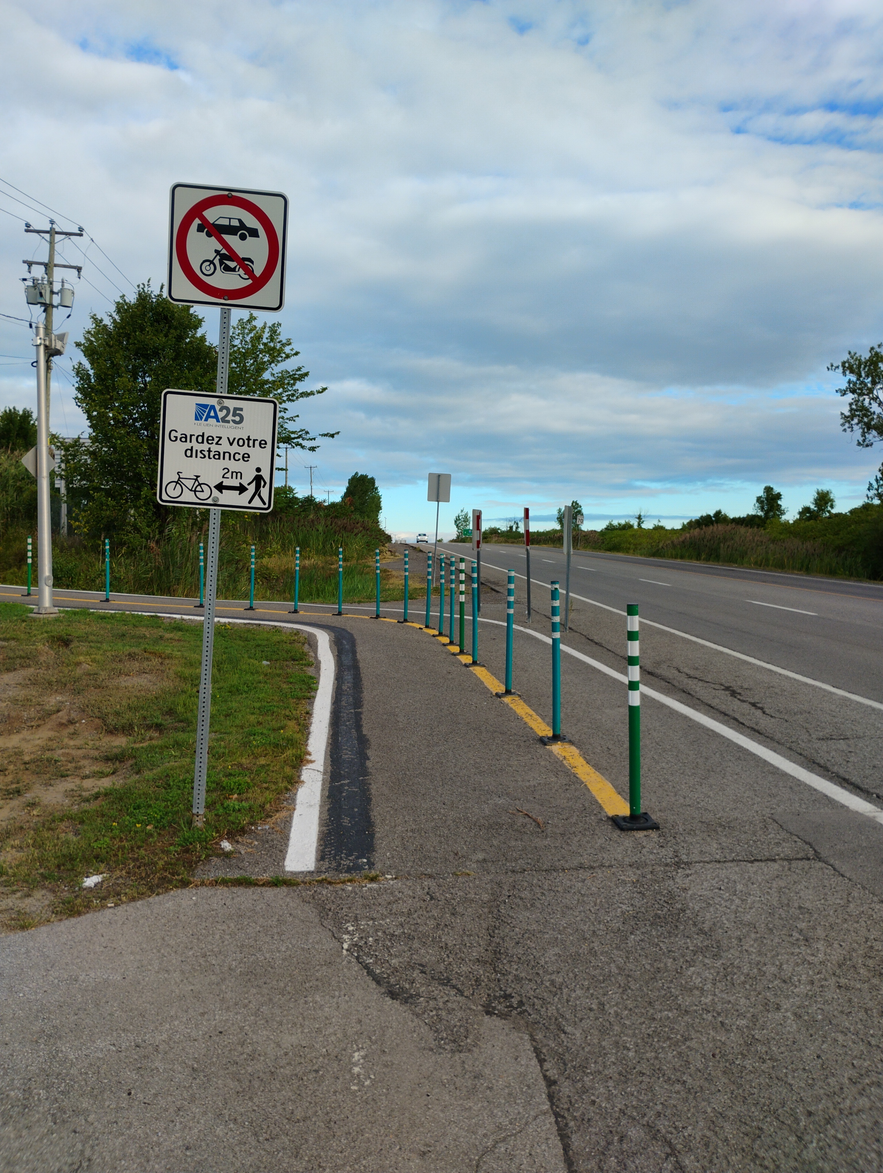 Je vais juste faire un gros thumbs up au passage piétonnier dessiné dans la piste cyclable. C’est quelque chose d’important qui est manquant pratiquement partout sur la rive-sud.