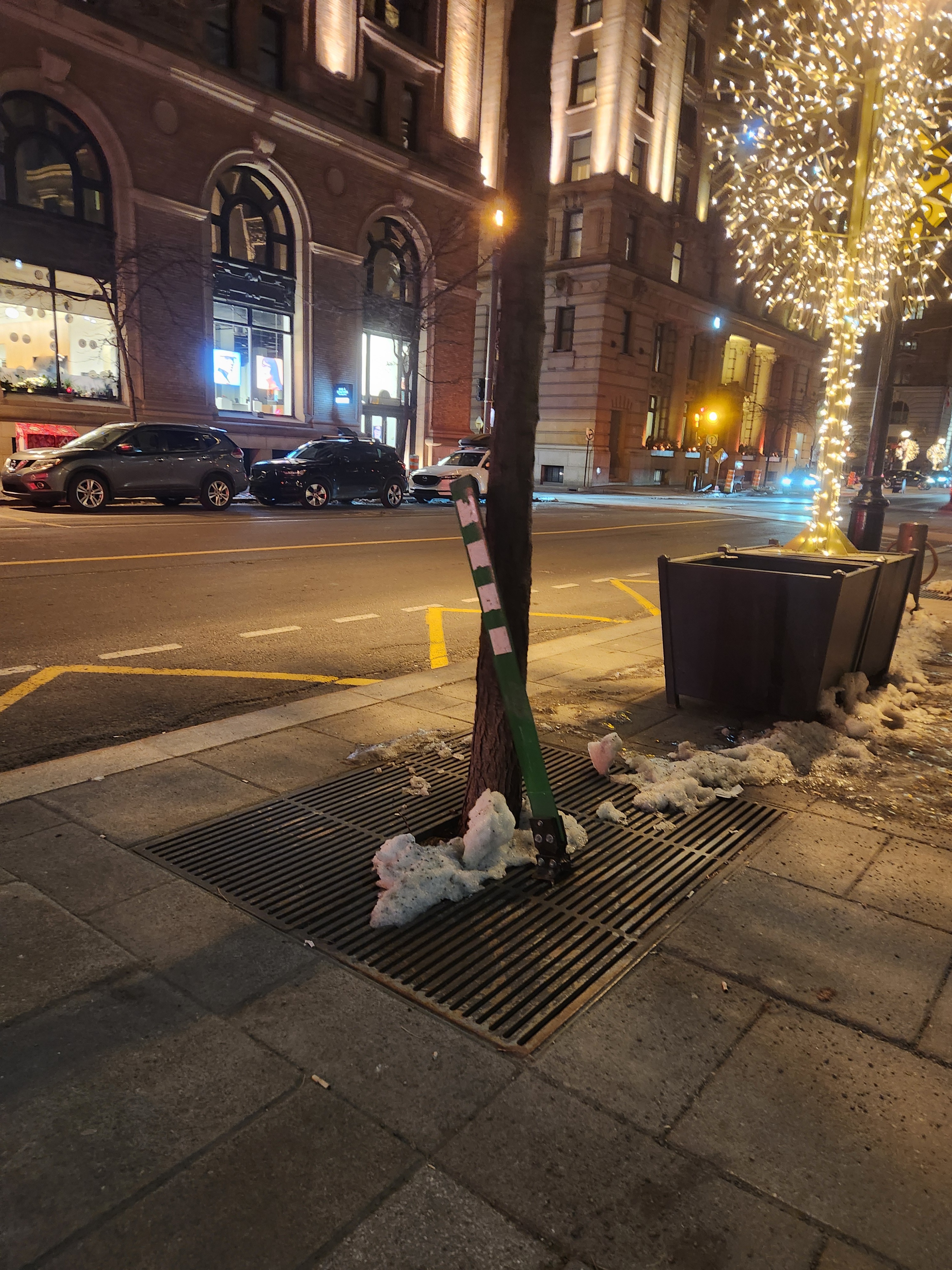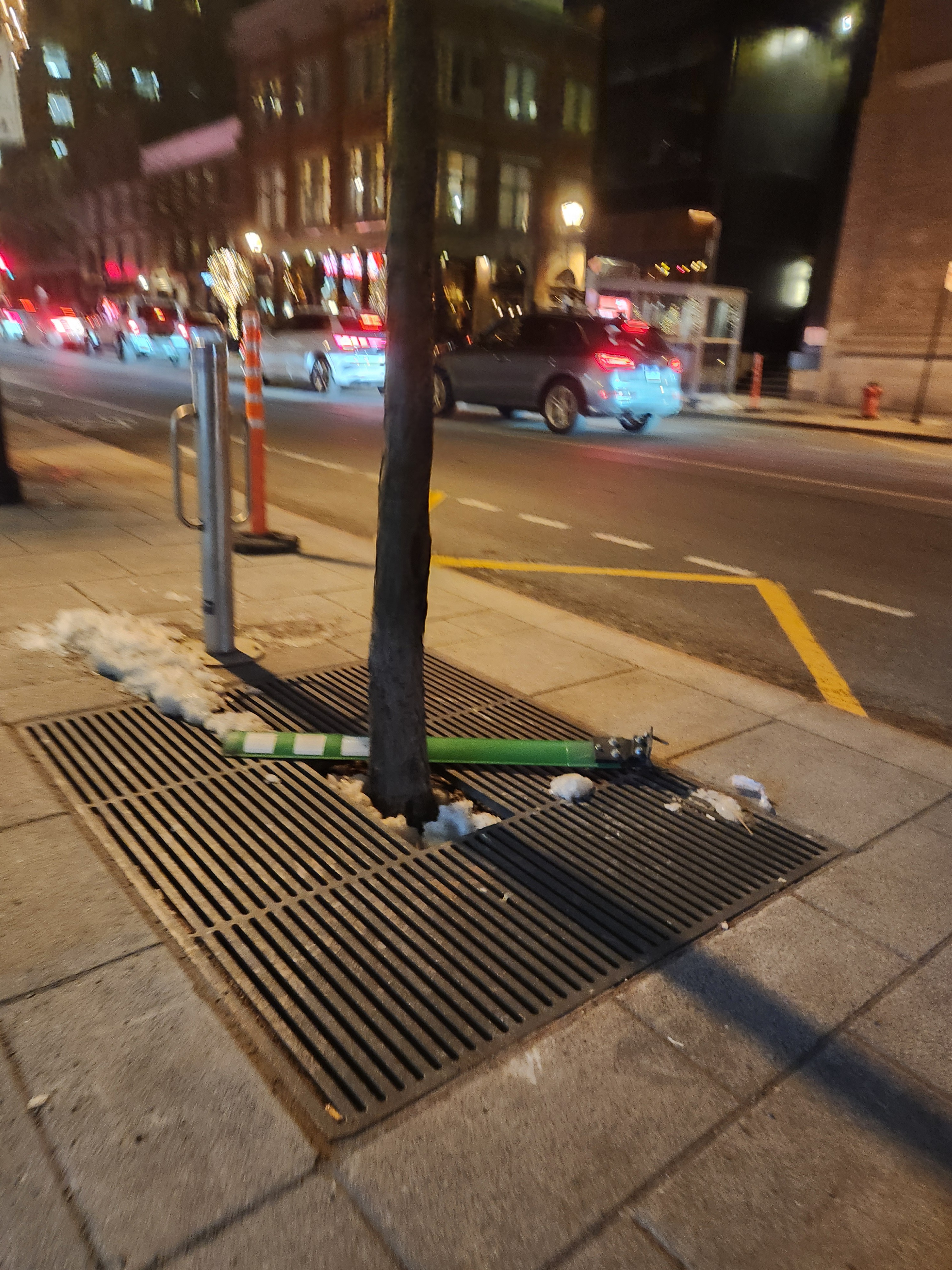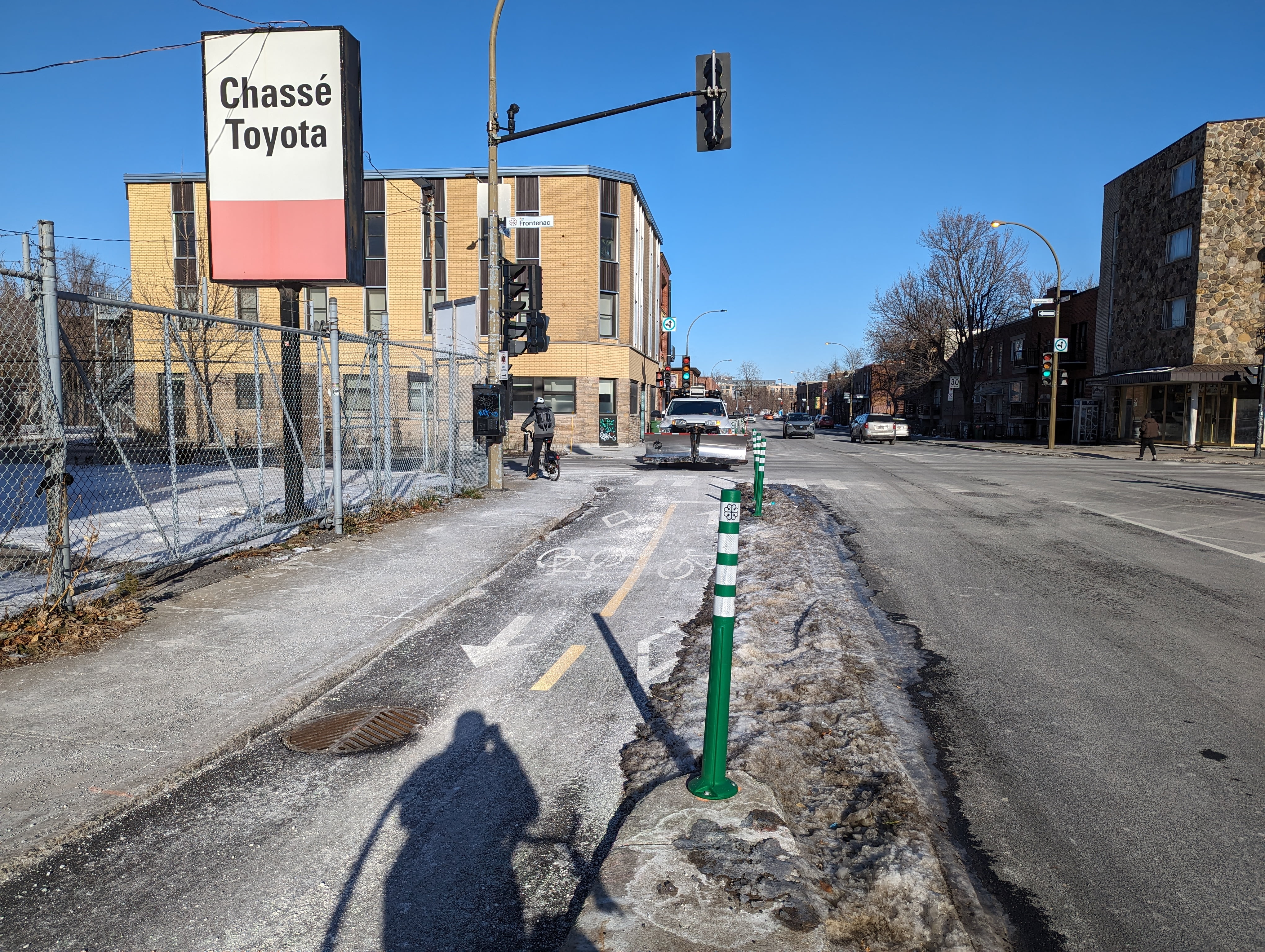 En même temps, avec ce genre d’installation, faut pas s’attendre à mieux, avec une bordure la neige aurait été arrêtée et sans bollard la neiges aurait été tassée complètement sur la bordure du trottoir, avec trop de bollards ça aide pas le déneigement