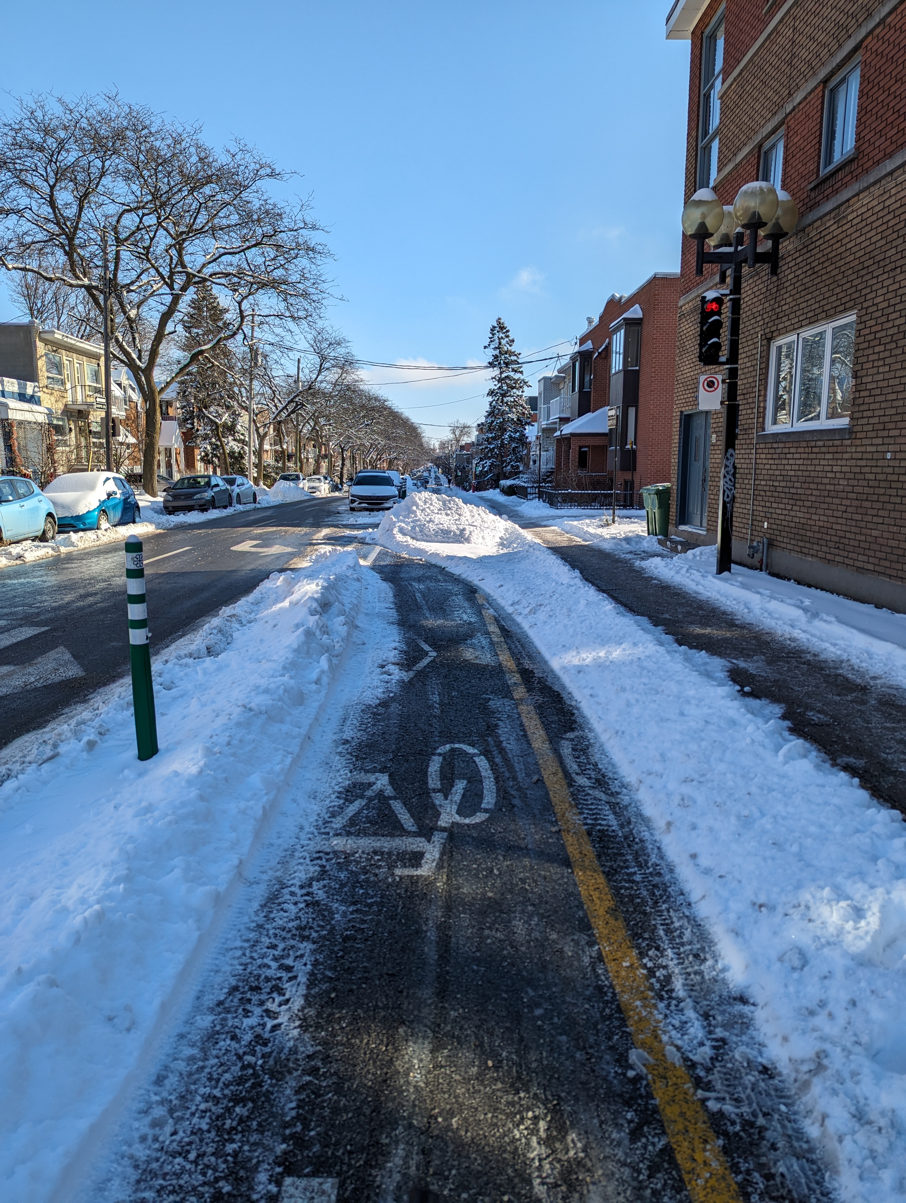 Je ne suis pas cycliste d’hiver mais je m’interroge - pourquoi certaines pistes n’ont qu’une voie de déneigée? C’est le cas pour Bourbonnière