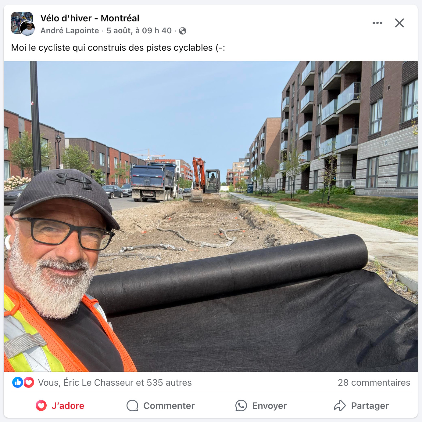 C’est drôle, en filmant ce matin Hochelaga, un ami qui travaille à la voirie était sur le chantier et m’a appelé de son camion. Ça m’a fait rire!
