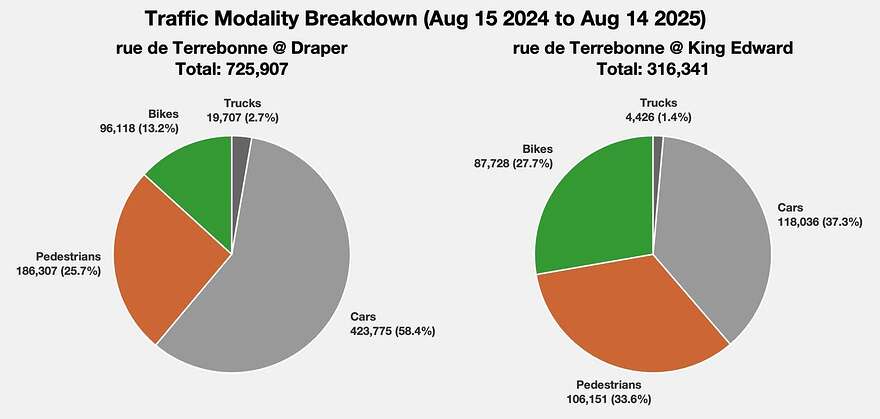 Il faut rajouter minimum +25% à ces chiffres car Telraam rate beaucoup de passages vélos et ne compte que s’il fait jour…il est très précis pour le comptage automobile par contre.