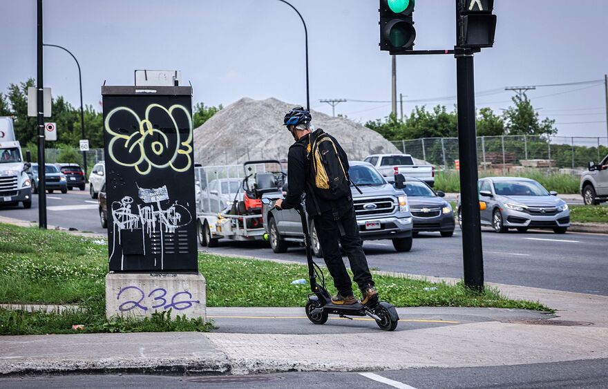 À Montréal, l’espace de chaussée consacré aux voitures fait 42,8 km², soit 98 % du total, contre un peu plus d’un kilomètre carré pour les infrastructures de micromobilité, ou 2 %. Les vélos, les trottinettes et les autres modes de transport légers sont pourtant utilisés pour 5 % des déplacements, selon des données notamment basées sur l’Enquête origine-destination de 2018. Et l’écart entre l’utilisation du vélo et l’espace qui lui est voué est encore plus grand dans certains arrondissements : Le Plateau-Mont-Royal arrive en tête (22 % des déplacements qui y sont effectués sont faits en micromobilité), puis suivent Rosemont–La Petite-Patrie (9,97 %) et Outremont (9,48 %).