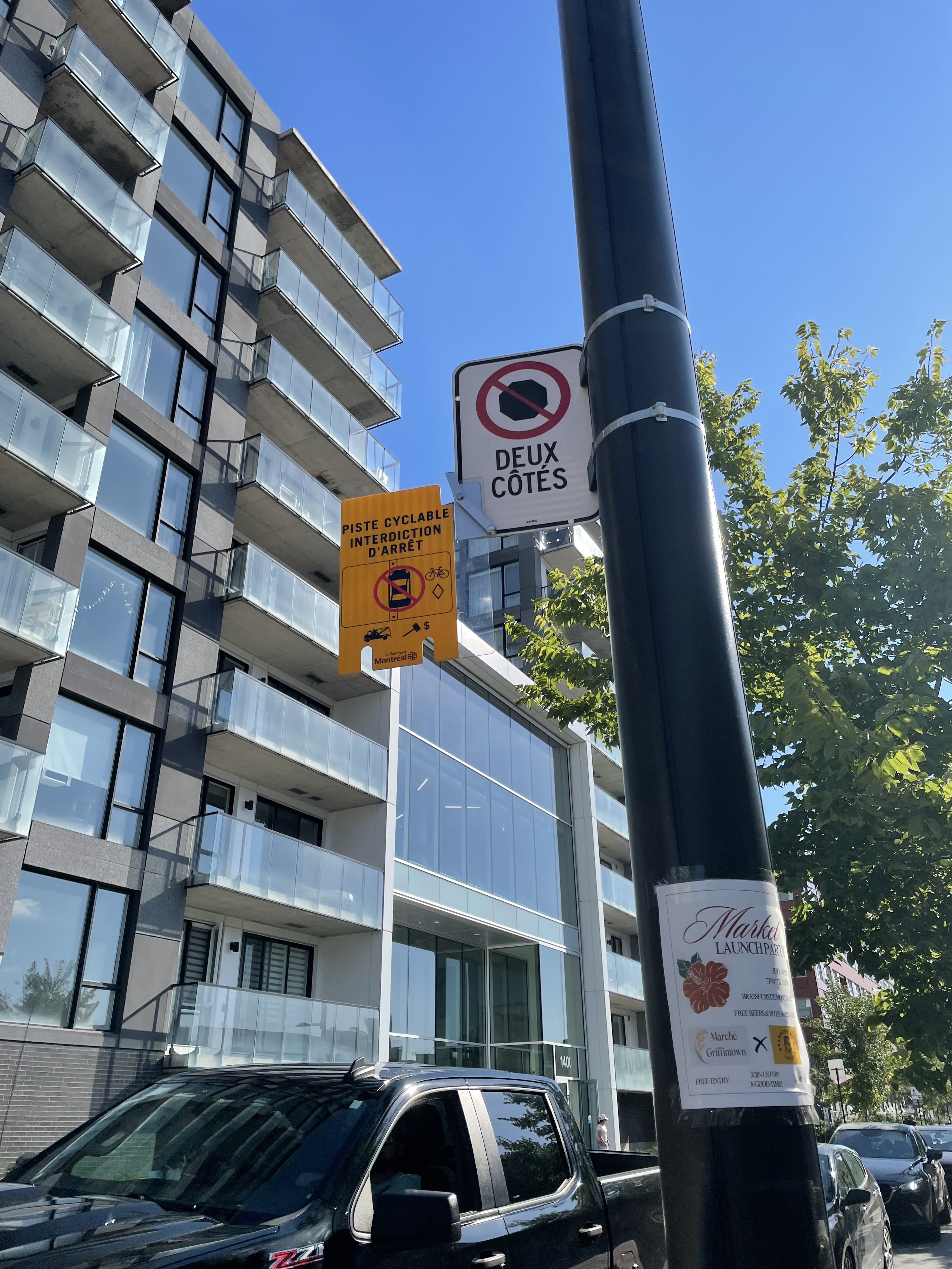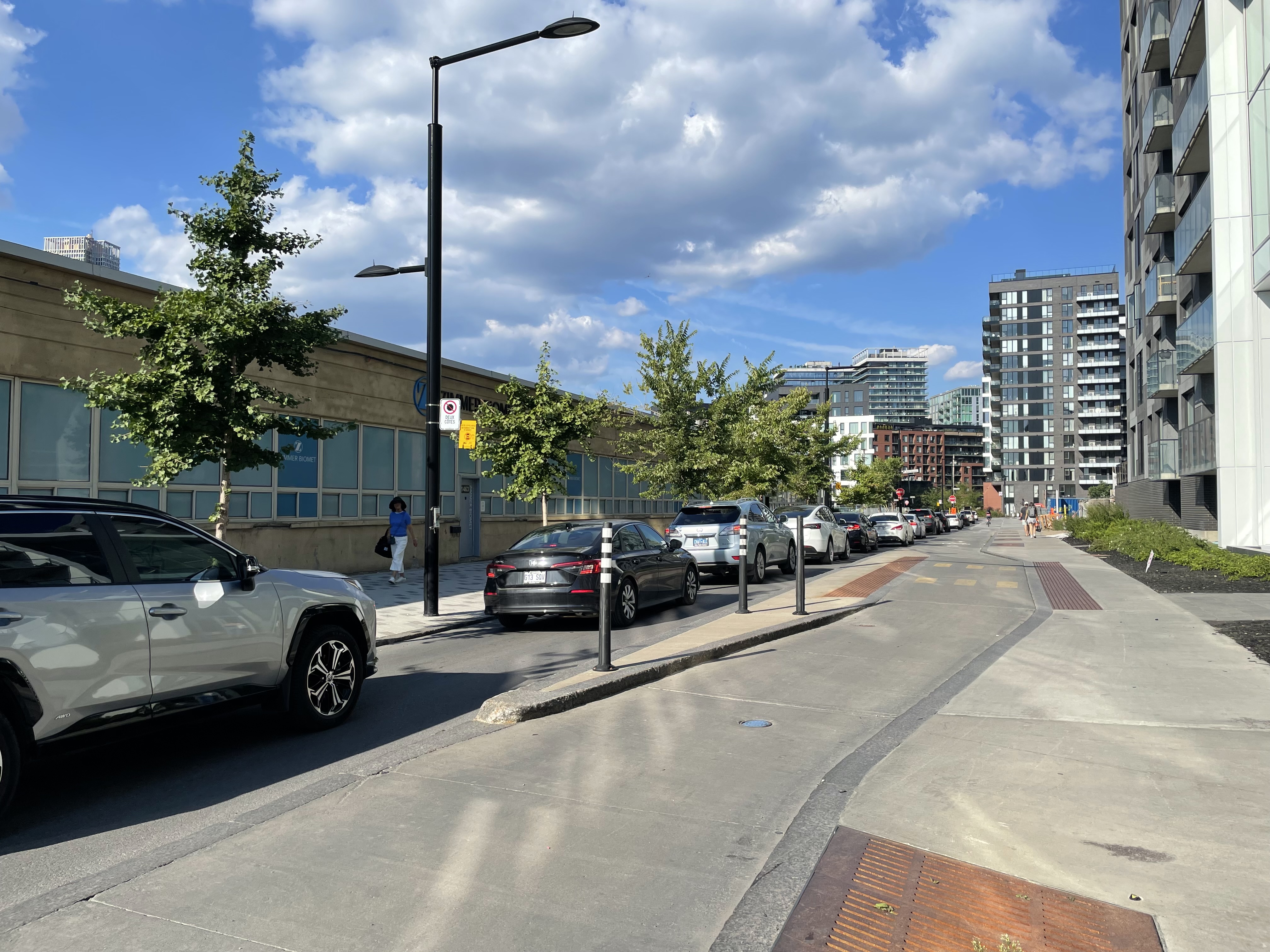 Cependant, celui devant le 1400 rue Ottawa (Bass 3-4) et les suivants sont installés de l’autre côté de la rue. Il n’y a pas de panneaux d’interdiction de stationnement devant les 4 phases du Bass du côté Sud, côté piste cyclable ![]()
