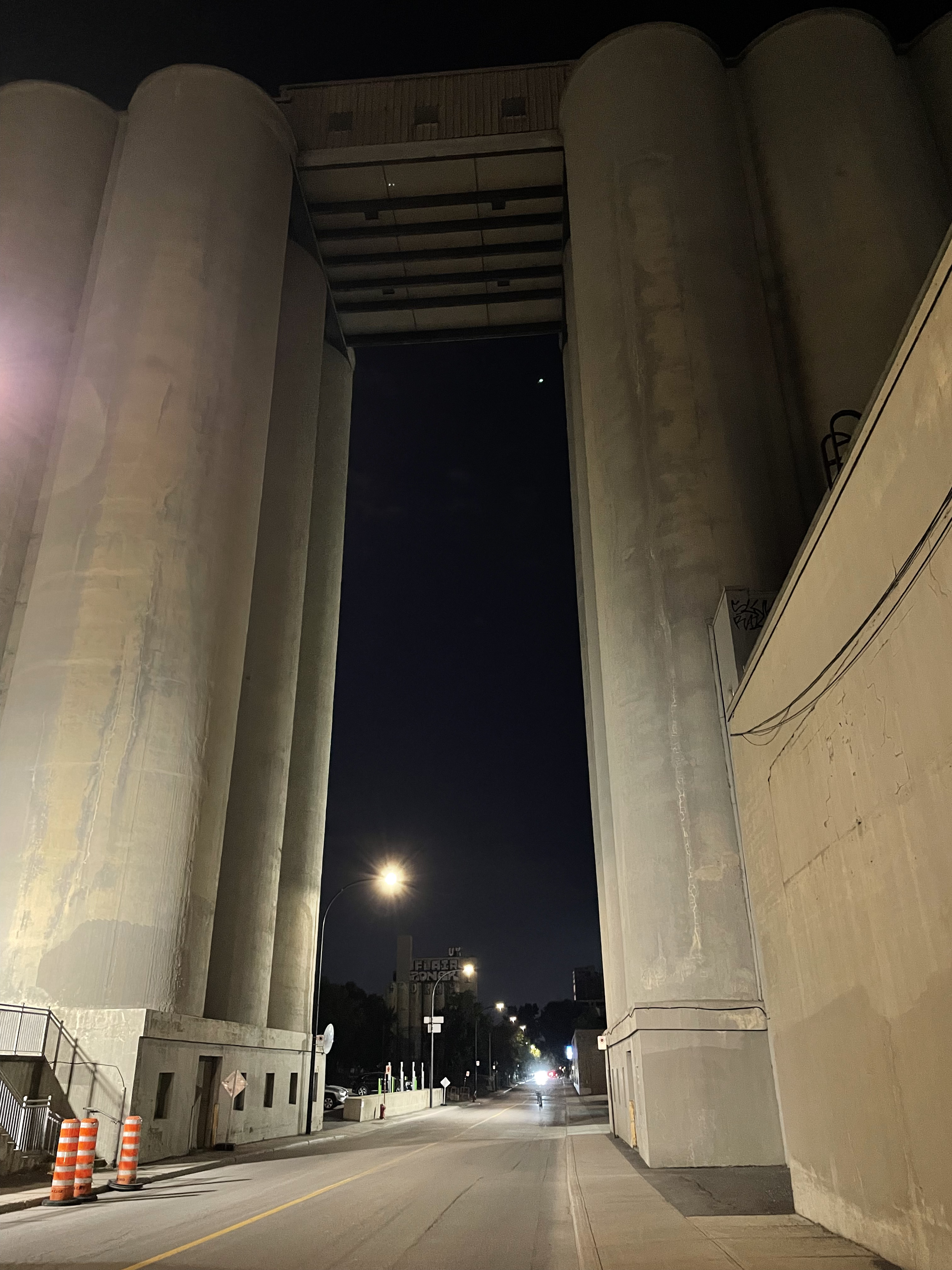 C’est cool de passer à travers le silo mais hier soir j’ai été frôlé par quelques fêtards en route vers le centre-ville…