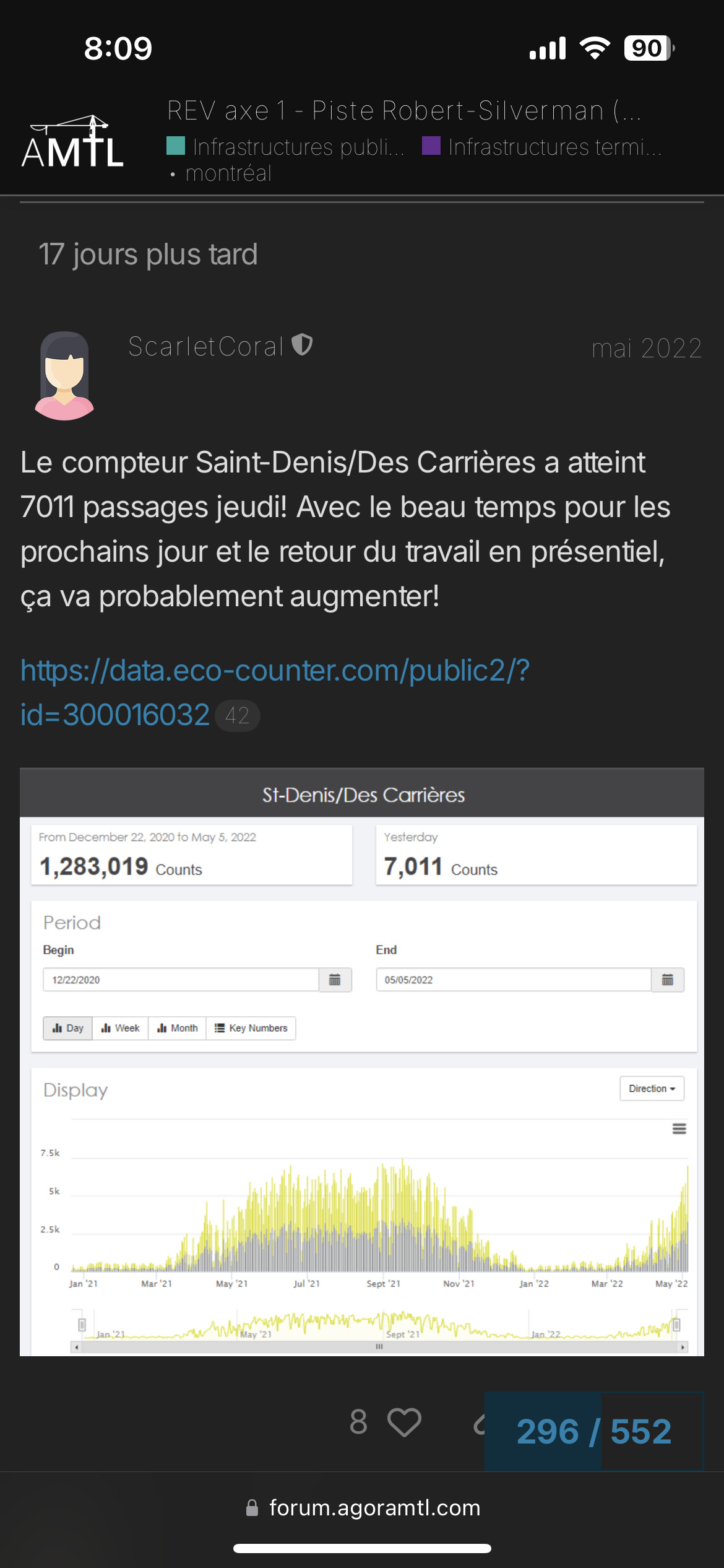 Il semble y avoir un problème avec le compteur Saint Denis/Des Carrières. Ça semble compter qu’une seule direction: