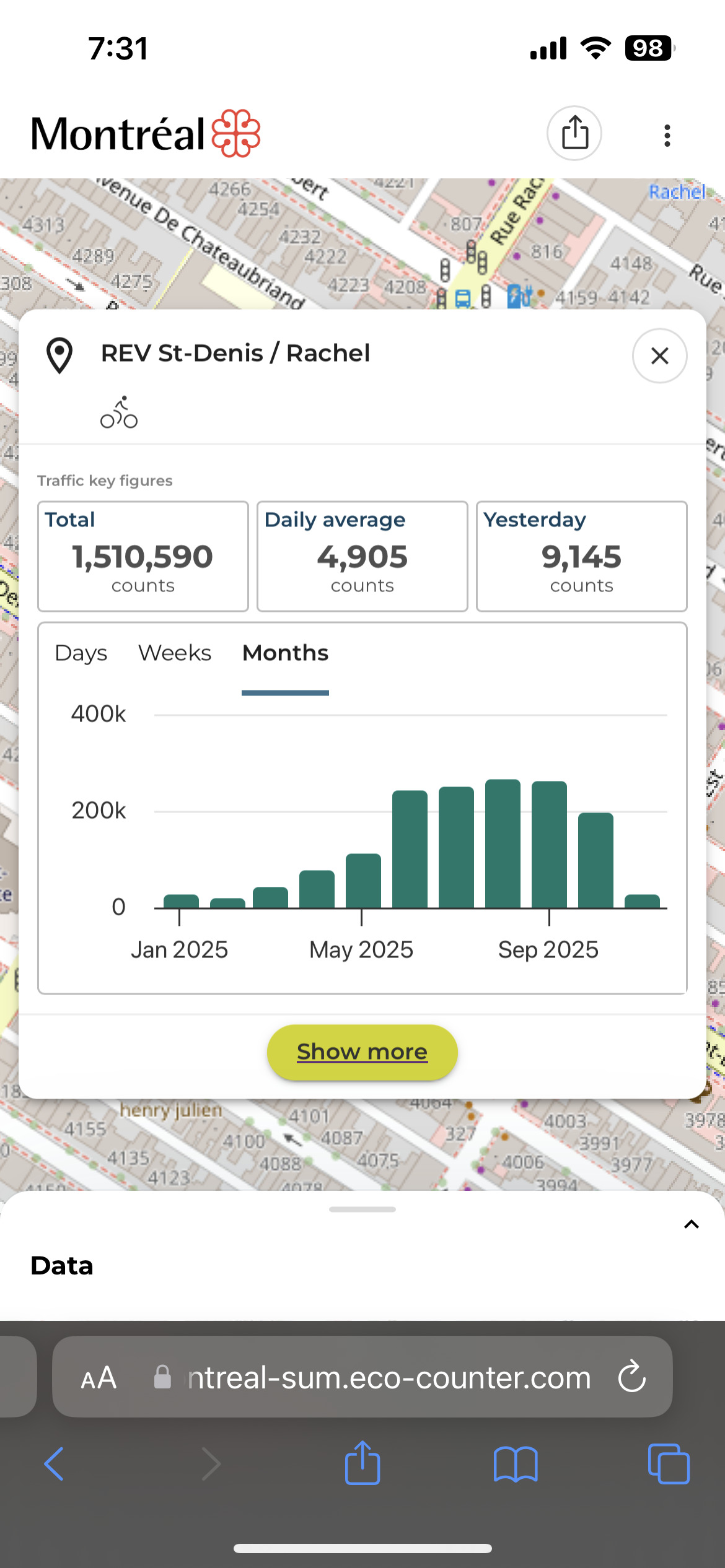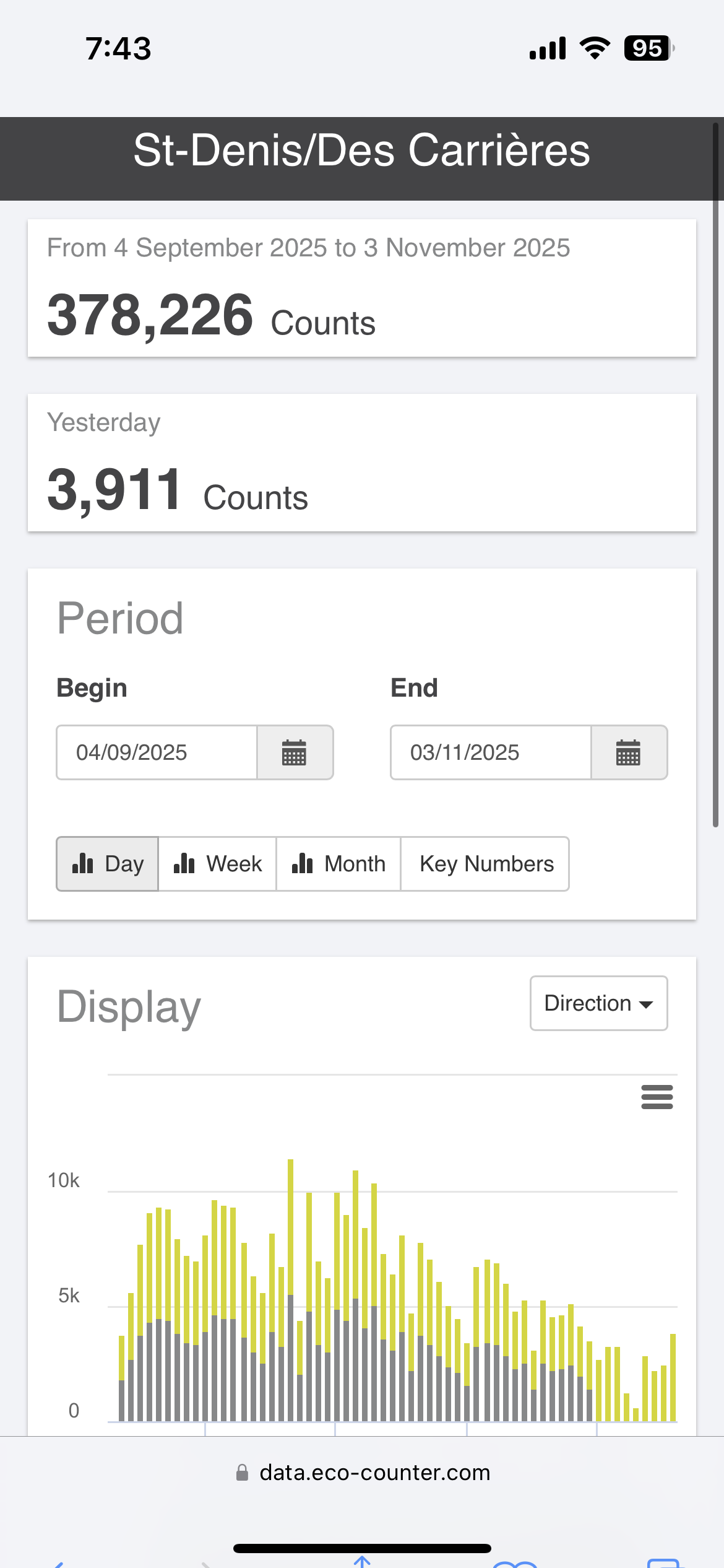 Comment tu as fait pour obtenir l’achalandage par direction avec la nouvelle page web de la Ville pour les compteurs. J’arrive plus à l’Avoir depuis le temps qu’ils ont mis à jour l’interface.