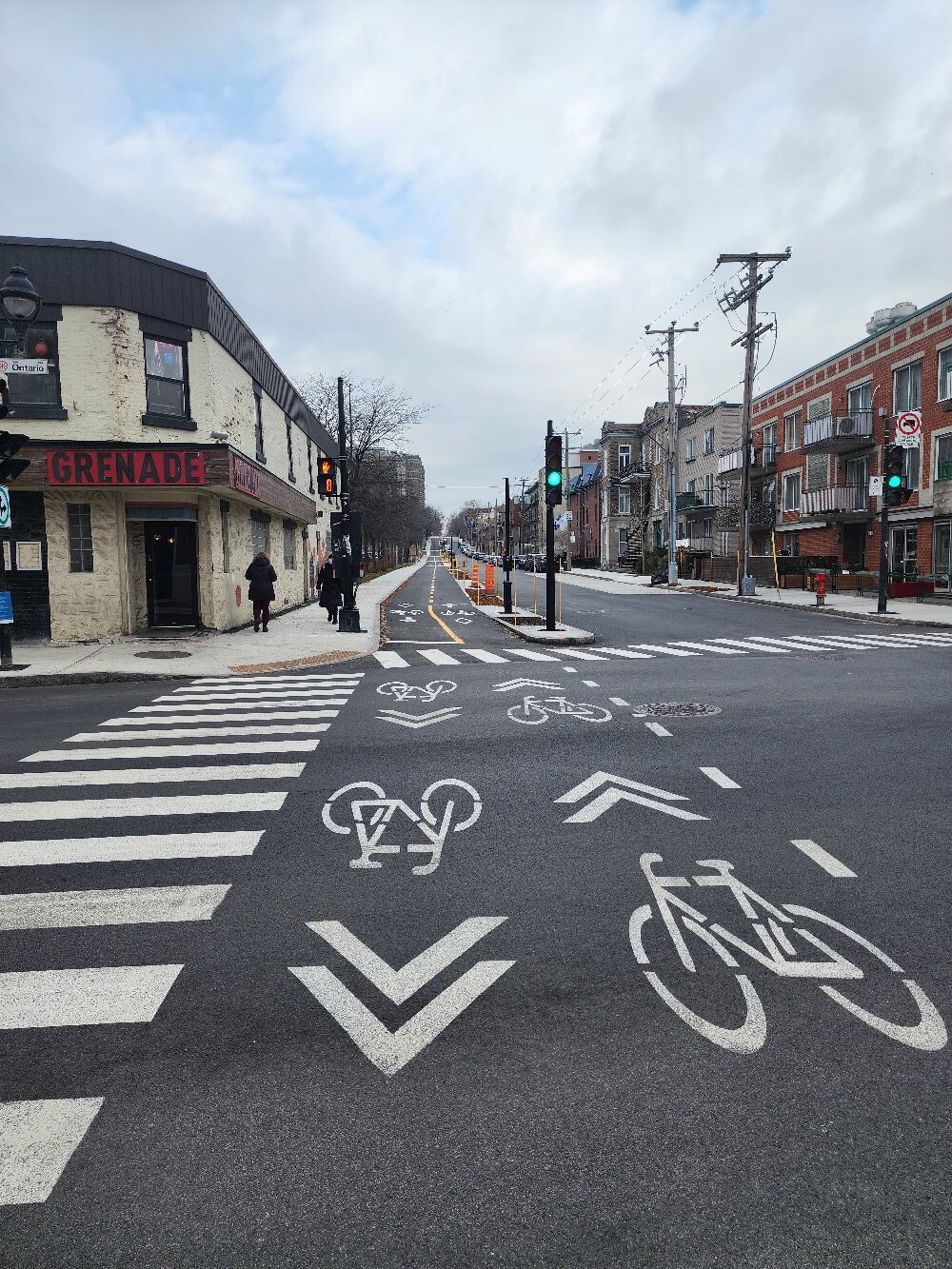 C’est une rue extra large, on dirait le centre-ville d’un village triste au Midwest, dans un coin mal desservi par les TEC. Une distance qui fait très long à marcher (et, saif pour 3-4 rues à PSC, sans intérêt), mais une distance qui deviendrait très gérable à vélo.