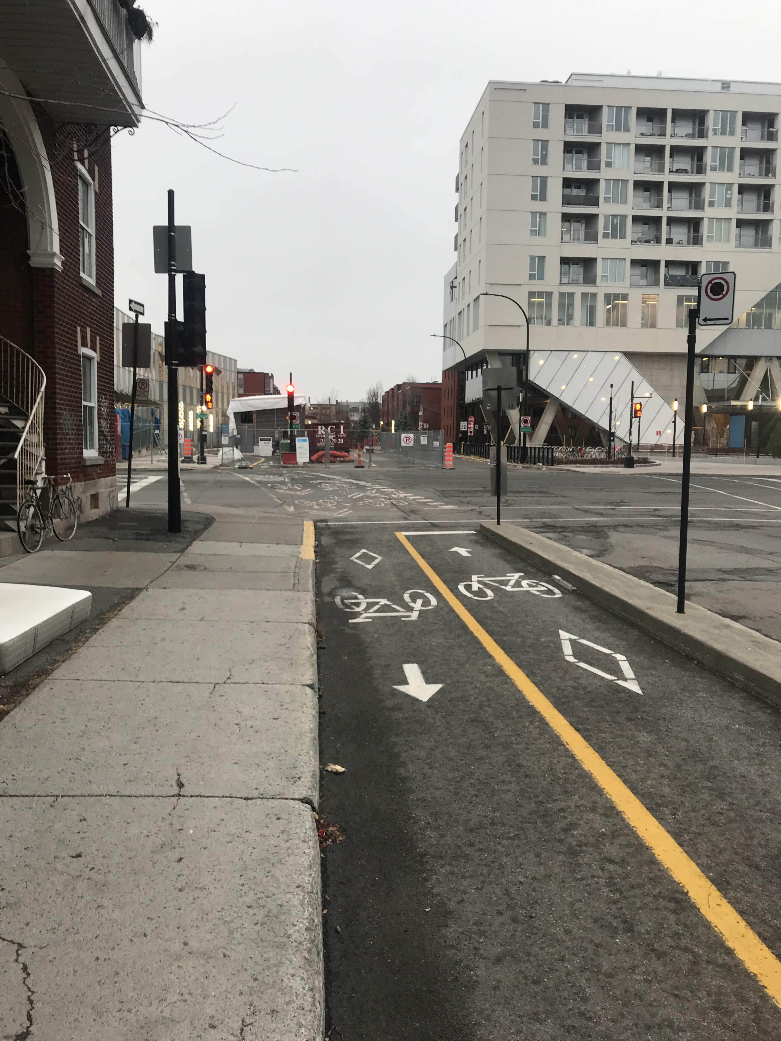 I know, but with all the with that the city use for the bike path, a piece of that total width & painted island could have been use to make a sidewalk, just outside the Parc Canada property, since they don’t really seems to be in a hurry.