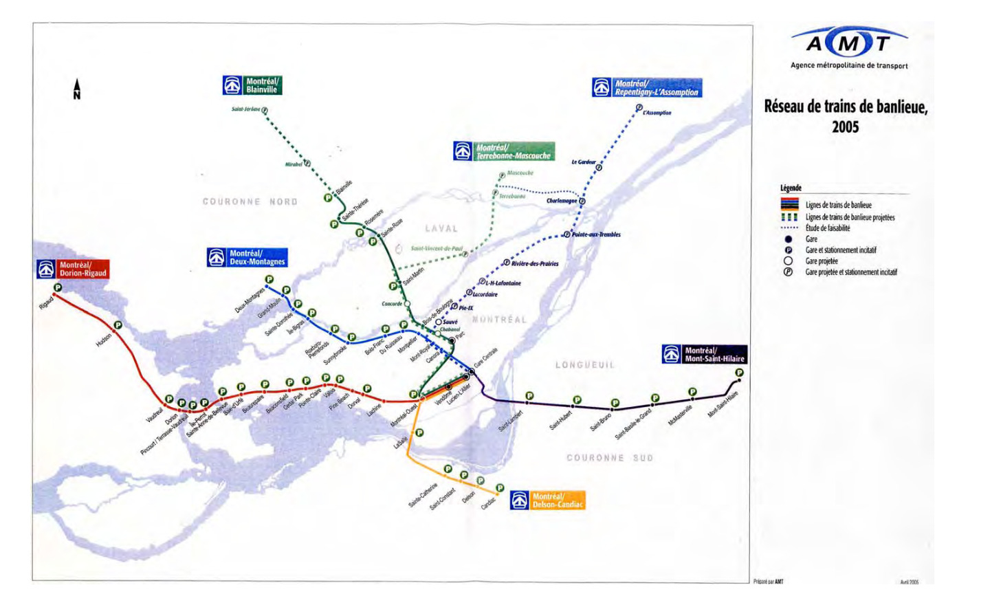 J’ai trouvé une carte du réseau projeté de l’AMT de 2006 dans un document du BAPE pour le train de l’est. C’est un monde différent…
