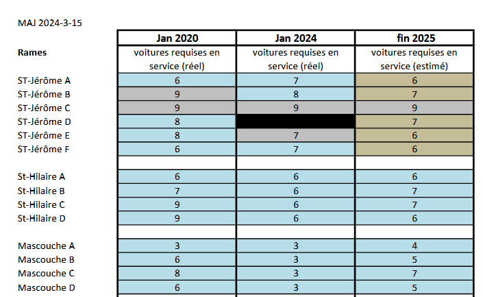Ce qui risque d’arriver, c’est que la ligne Mont-Saint-Hilaire sera probablement amputée de 2-3 voitures afin de les redistribuer à la ligne Mascouche.