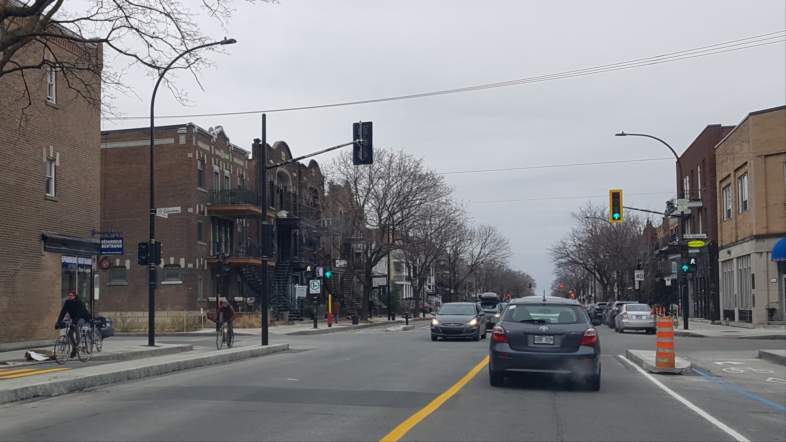 Seule le parcours de transition sur De Castelnau, entre Saint-Denis (en direction nord) et Lajeunesse, ne me paraît pas être complétée à l’axe 1 du REV. Du moins, elle ne me semble pas tellement être optimale… et sécuritaire, un peu en raison d’une terrasse sur rue non-démantelée au coin de Berri.