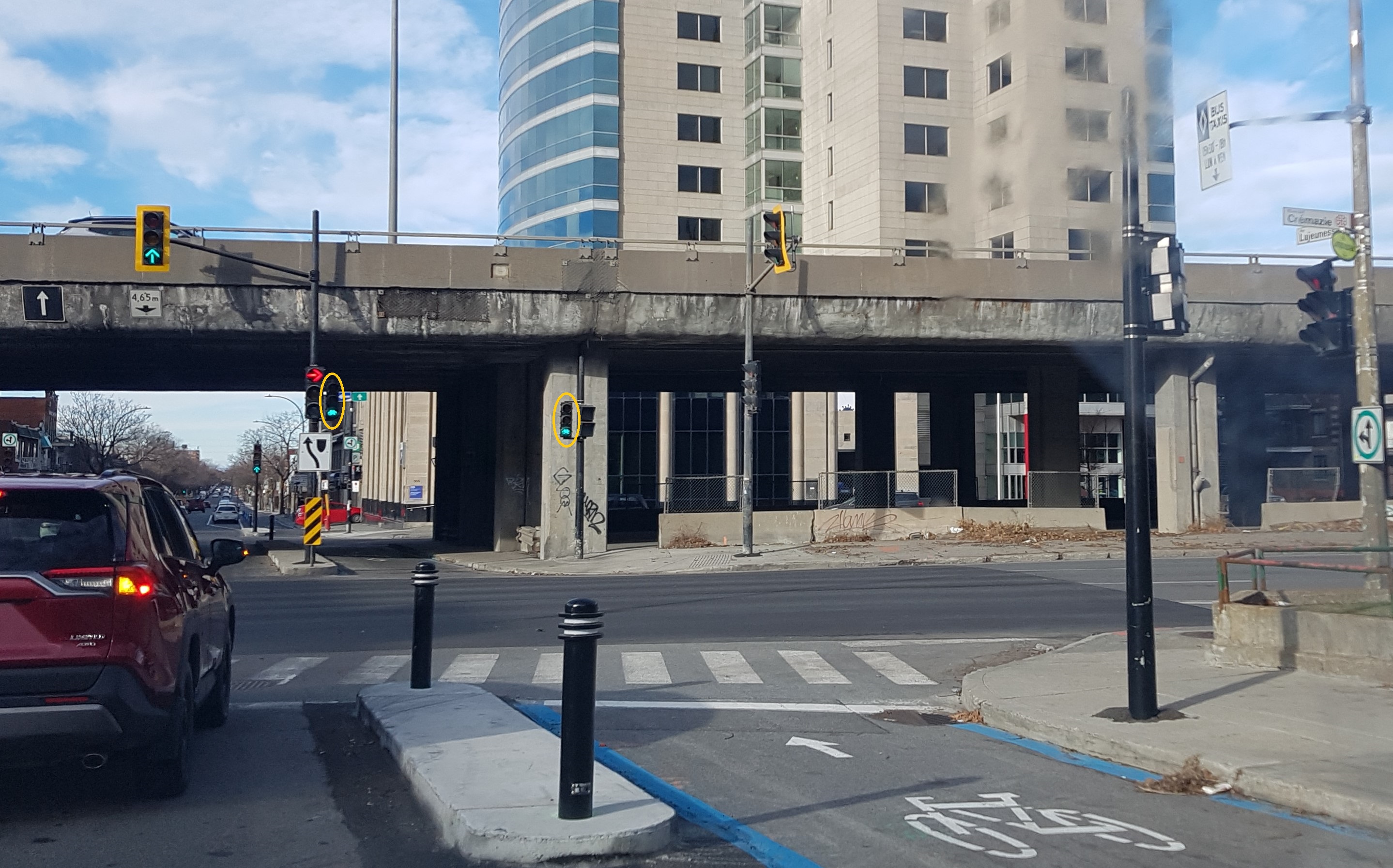 On a installé un feu cycliste à l’intersection Lajeunesse / Crémazie Est afin de sécuriser le passage des usagers du REV1 vers le nord de l’A40.