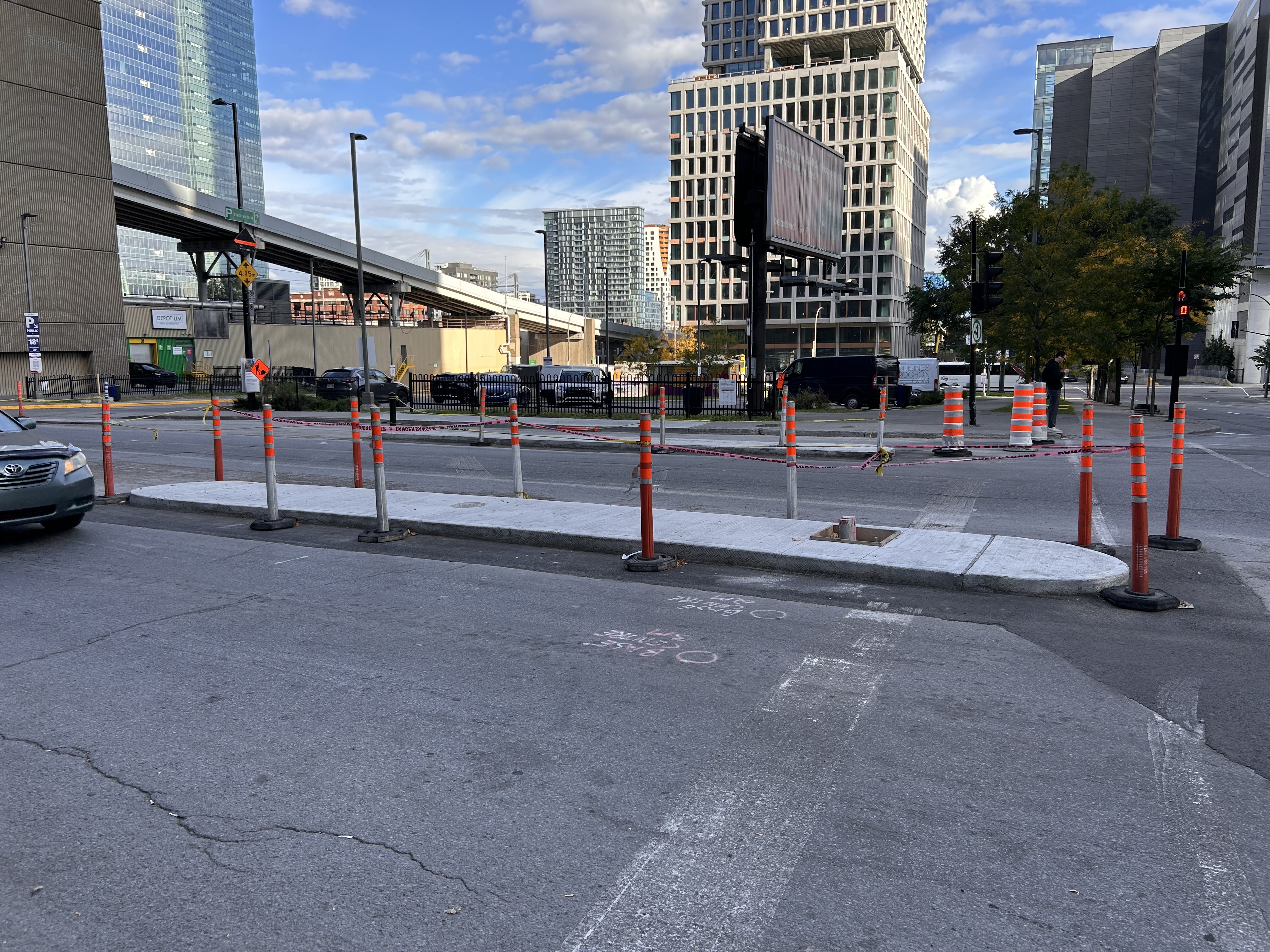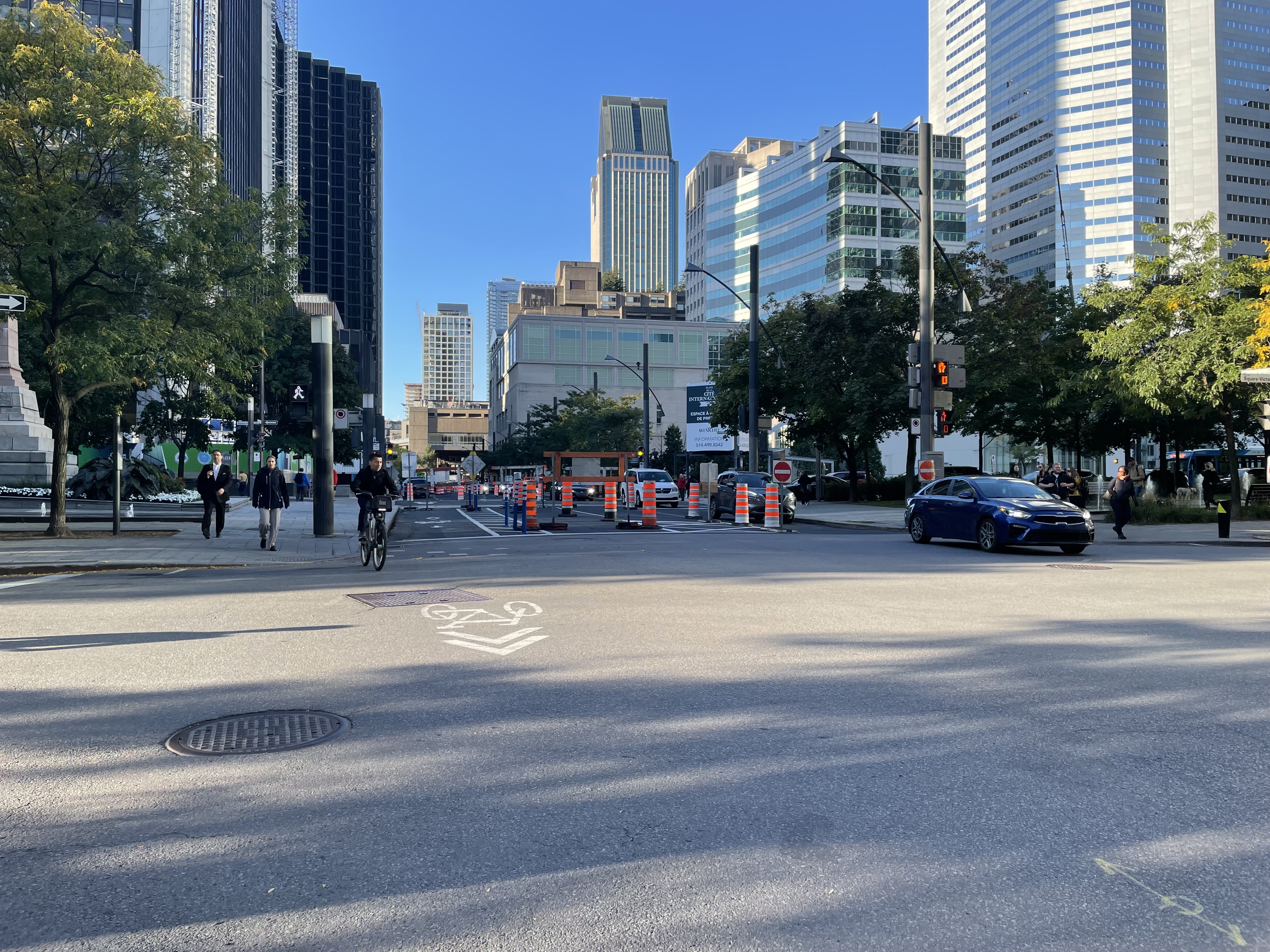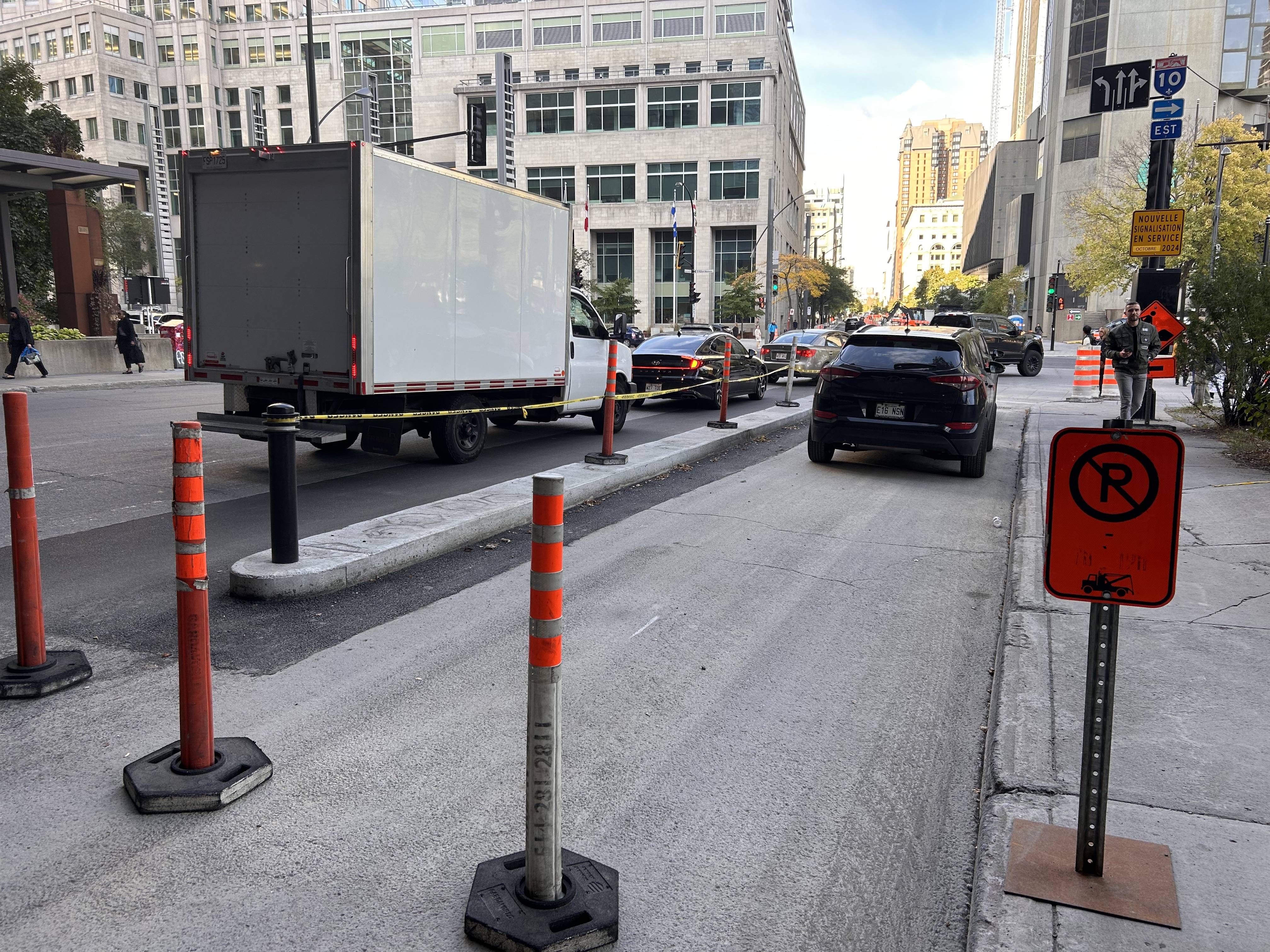 Il y a pleine de cônes orange plus à l’est. Je me demande si l’arrondissement va enfin commencer les travaux entre Robert-Bourassa et Square-Victoria.
