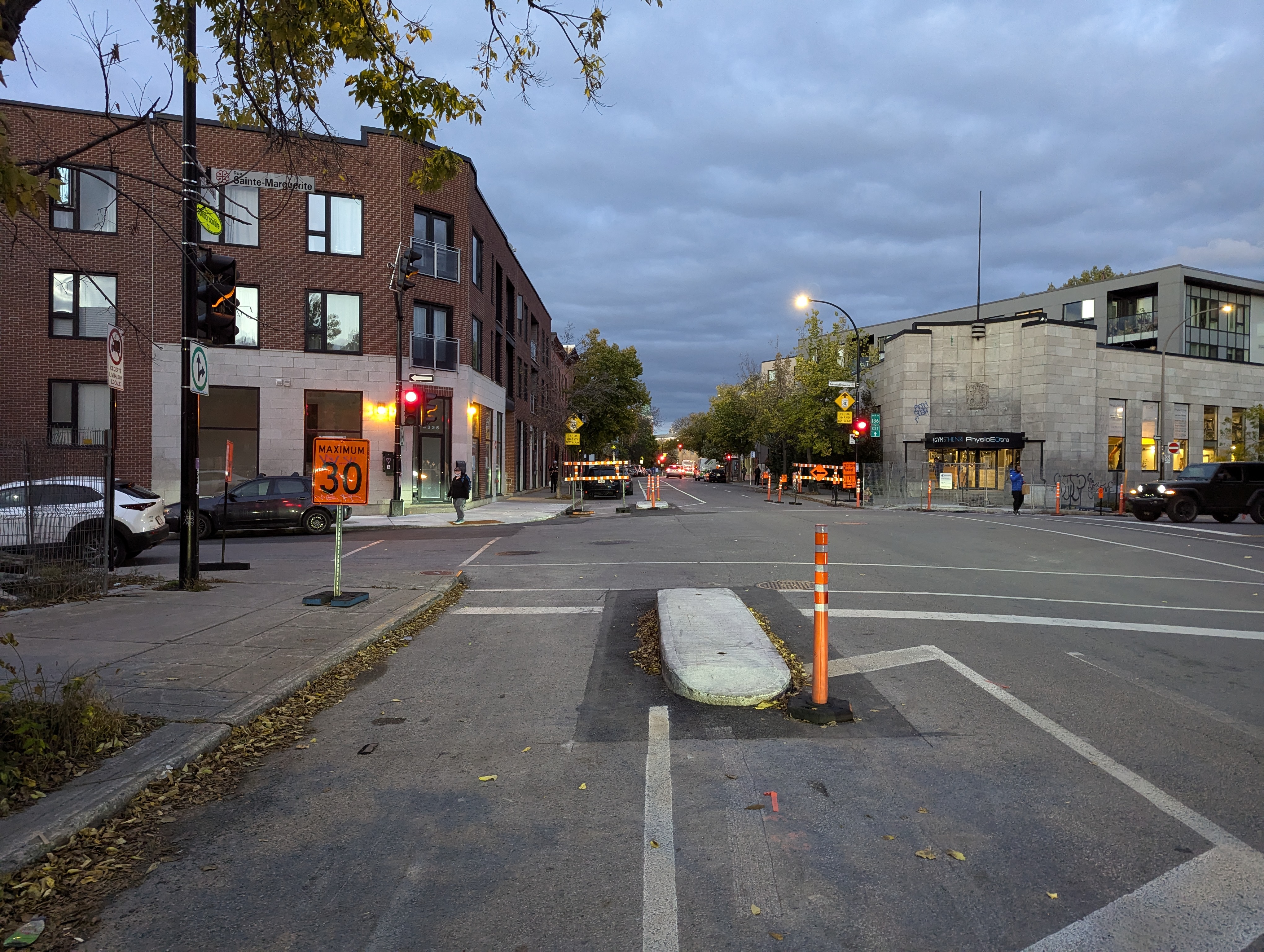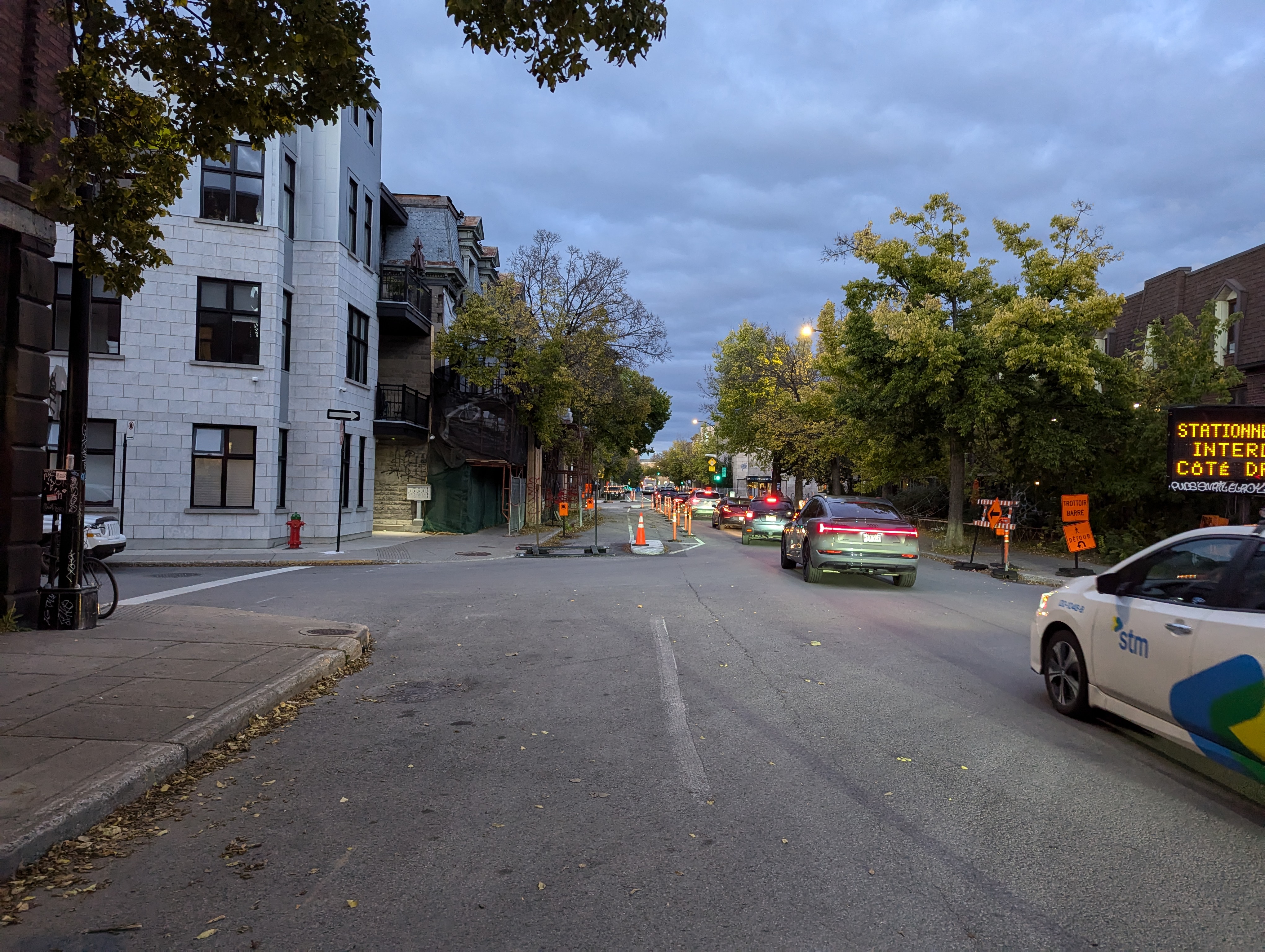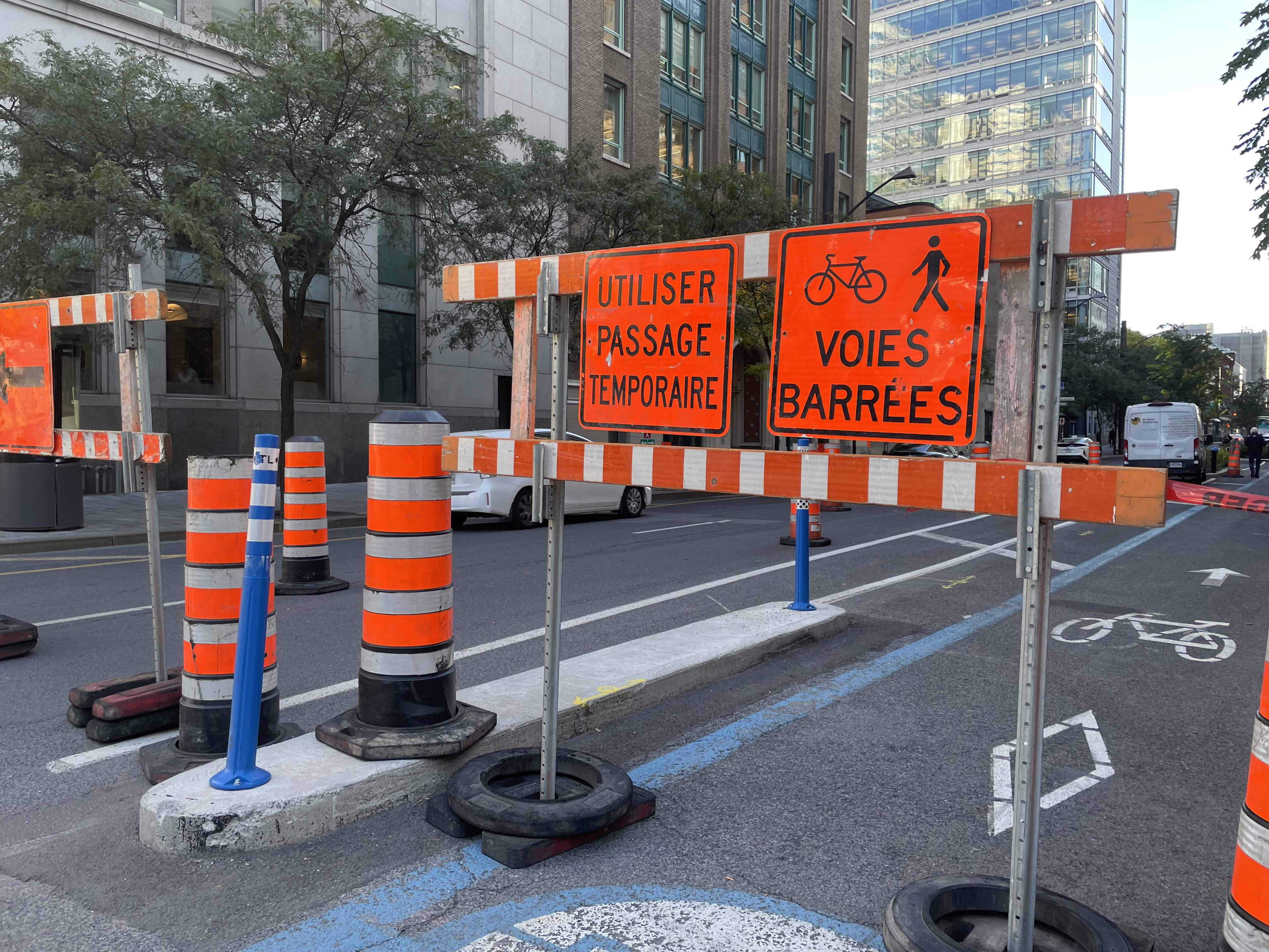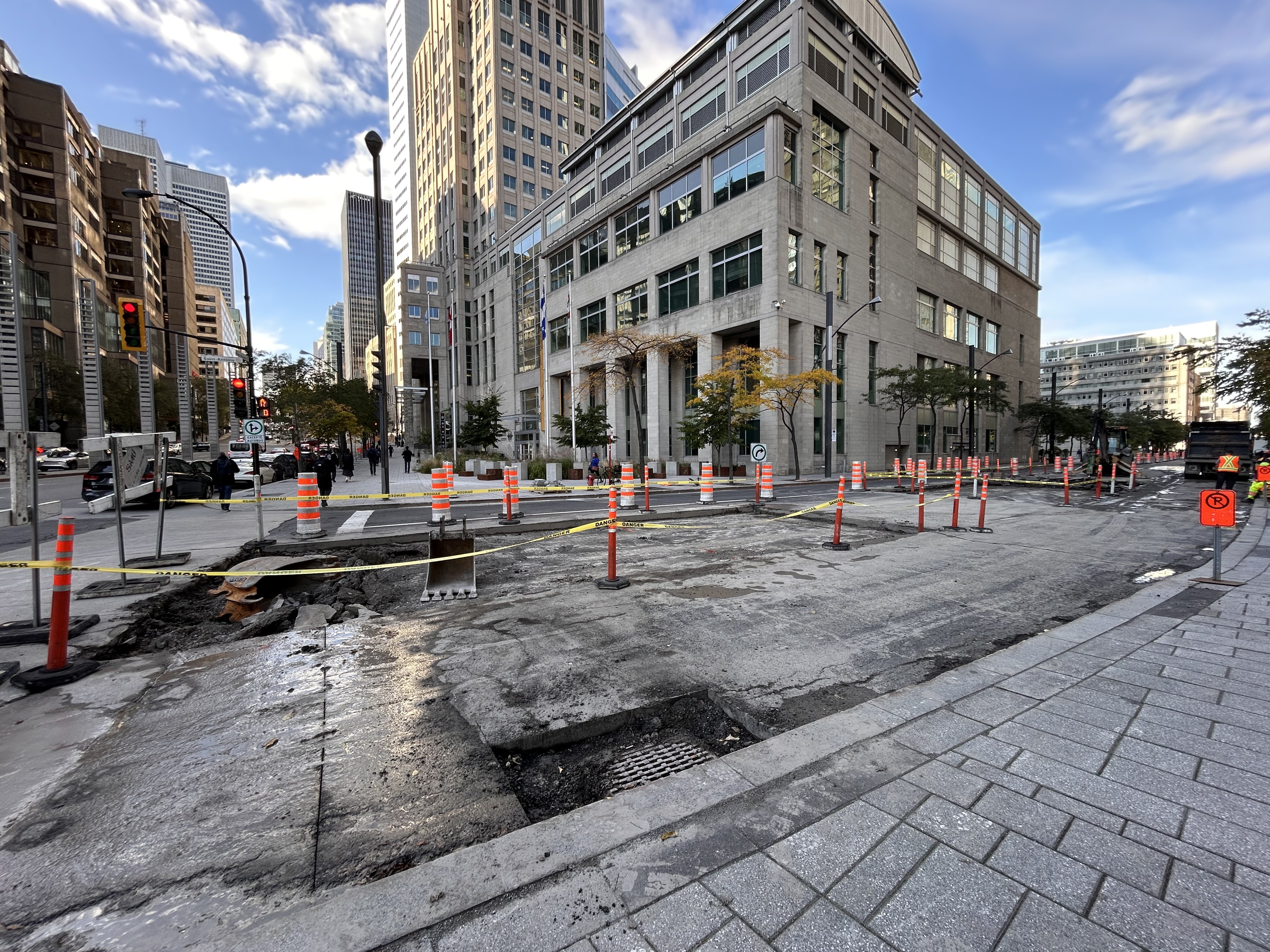 Il y a pleine de cônes orange plus à l’est. Je me demande si l’arrondissement va enfin commencer les travaux entre Robert-Bourassa et Square-Victoria.