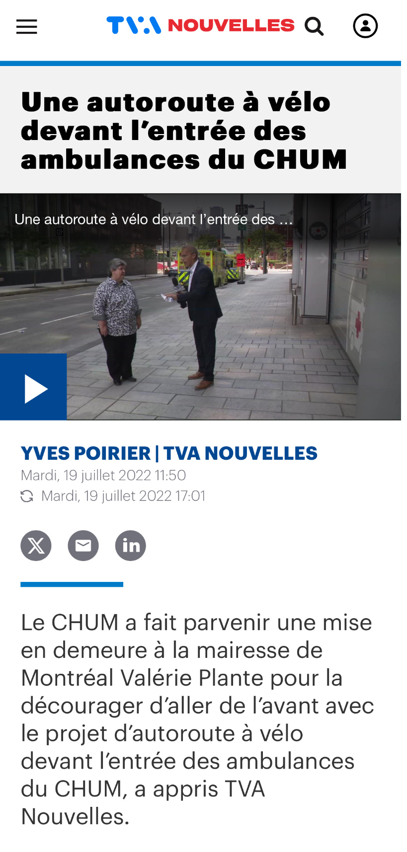 Salut, quelqu’un sait ce qui arrive avec la mise en demeure qu’a adressé le CHUM à la Ville pour le déploiement du REV sur Viger ? C’était une question « de vie ou de mort » selon la dame interviewée par le célèbre Yves Poirier