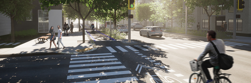 - Ajout de mobilier urbain et d’éclairage, dont un éclairage dédié à la piste cyclable