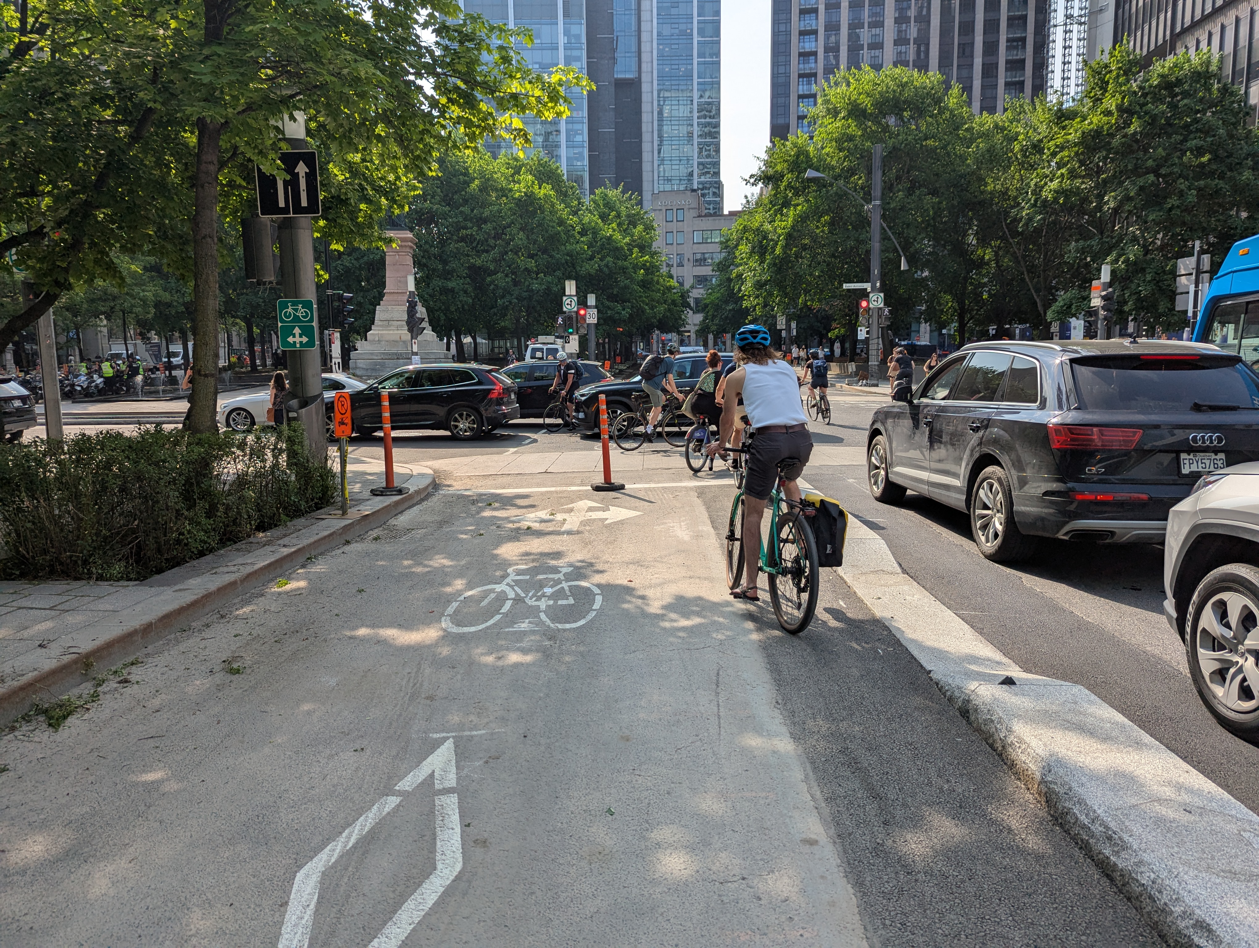 Je vois des parents à vélo avec leurs enfants à l’arrière essayer de contourner les automobilistes qui bloquent l’entrée de la piste, car ces derniers ne veulent pas rester derrière la ligne d’arrêt et attendre leur prochain feu vert ![]()
