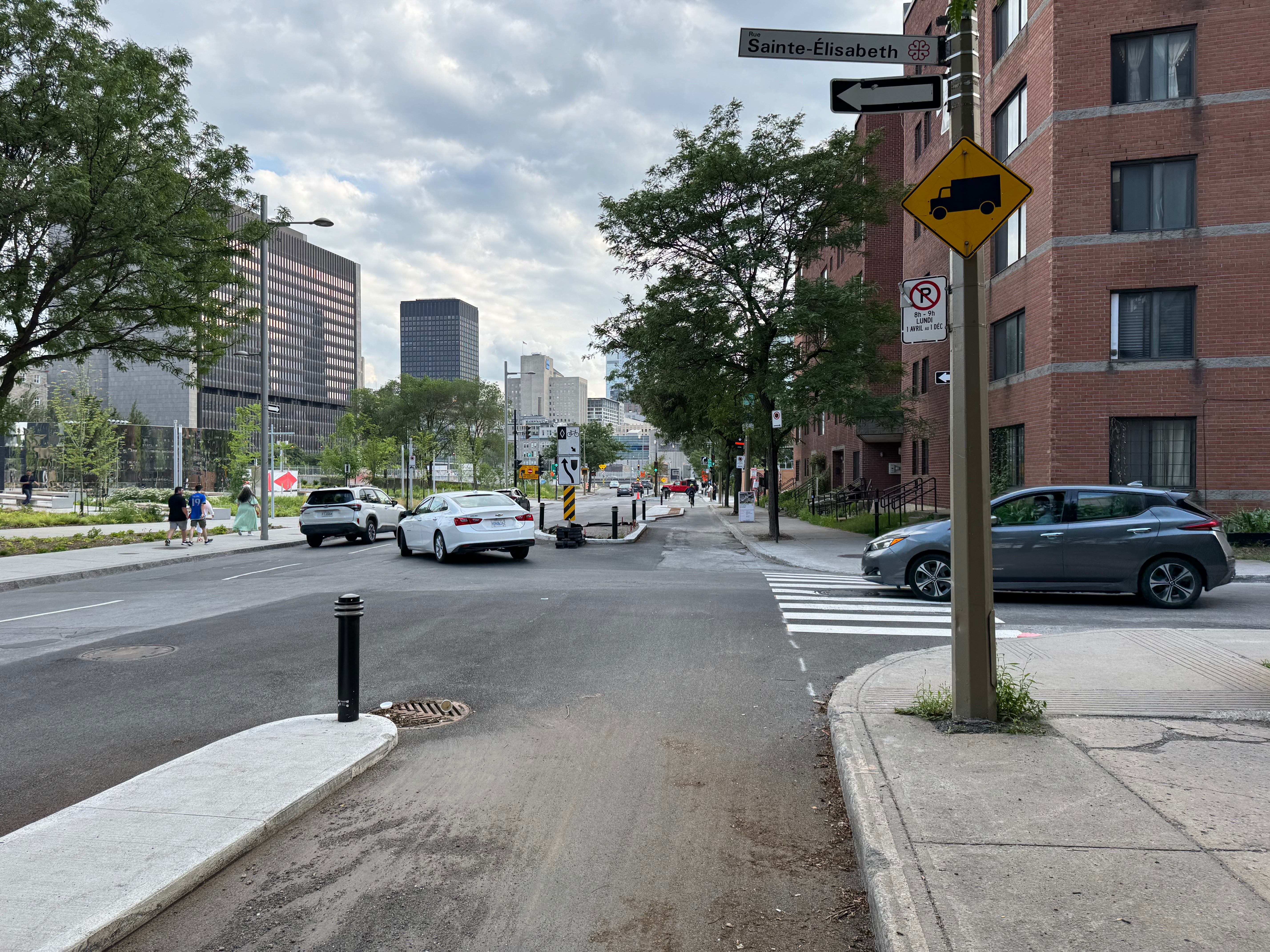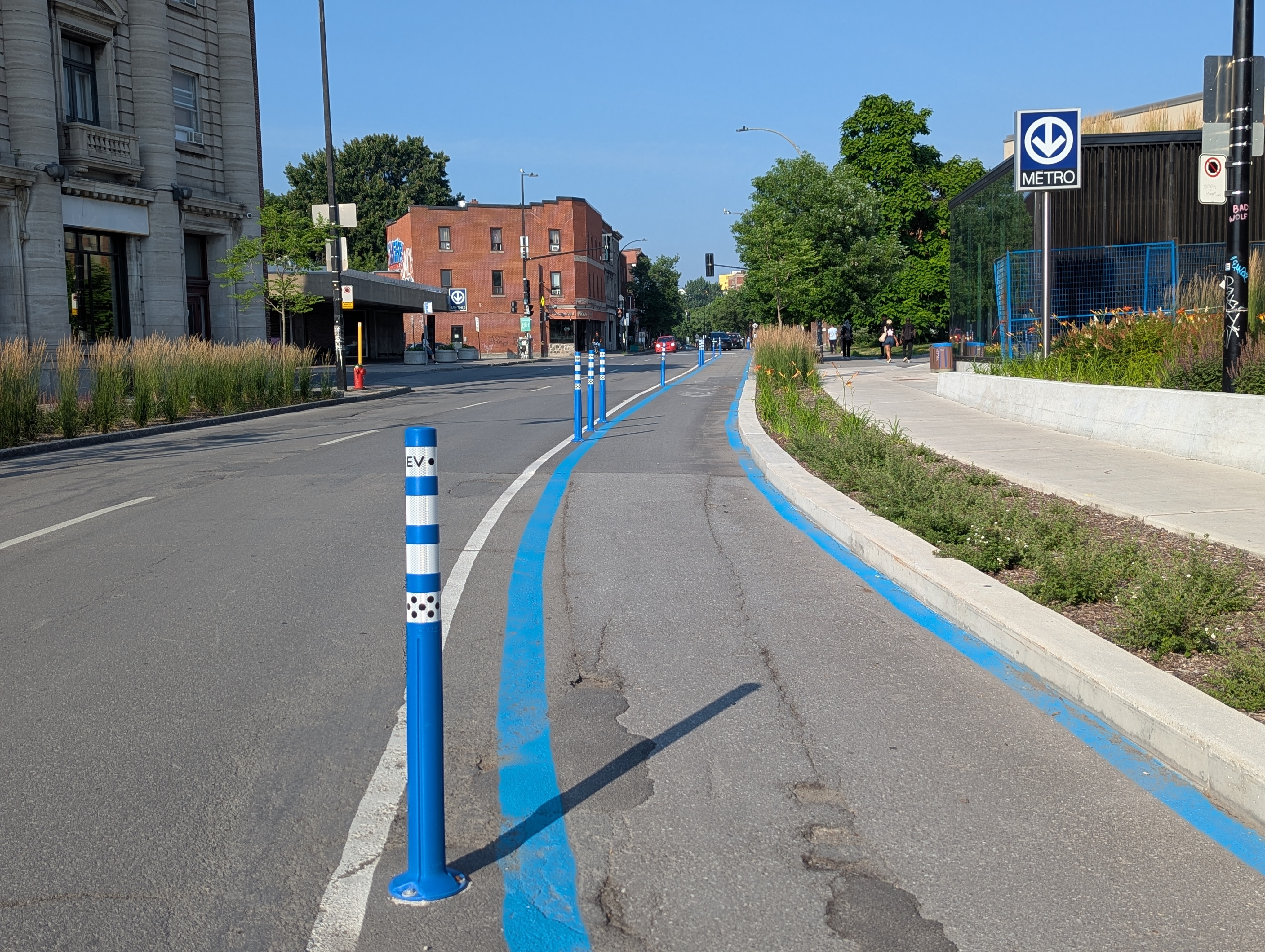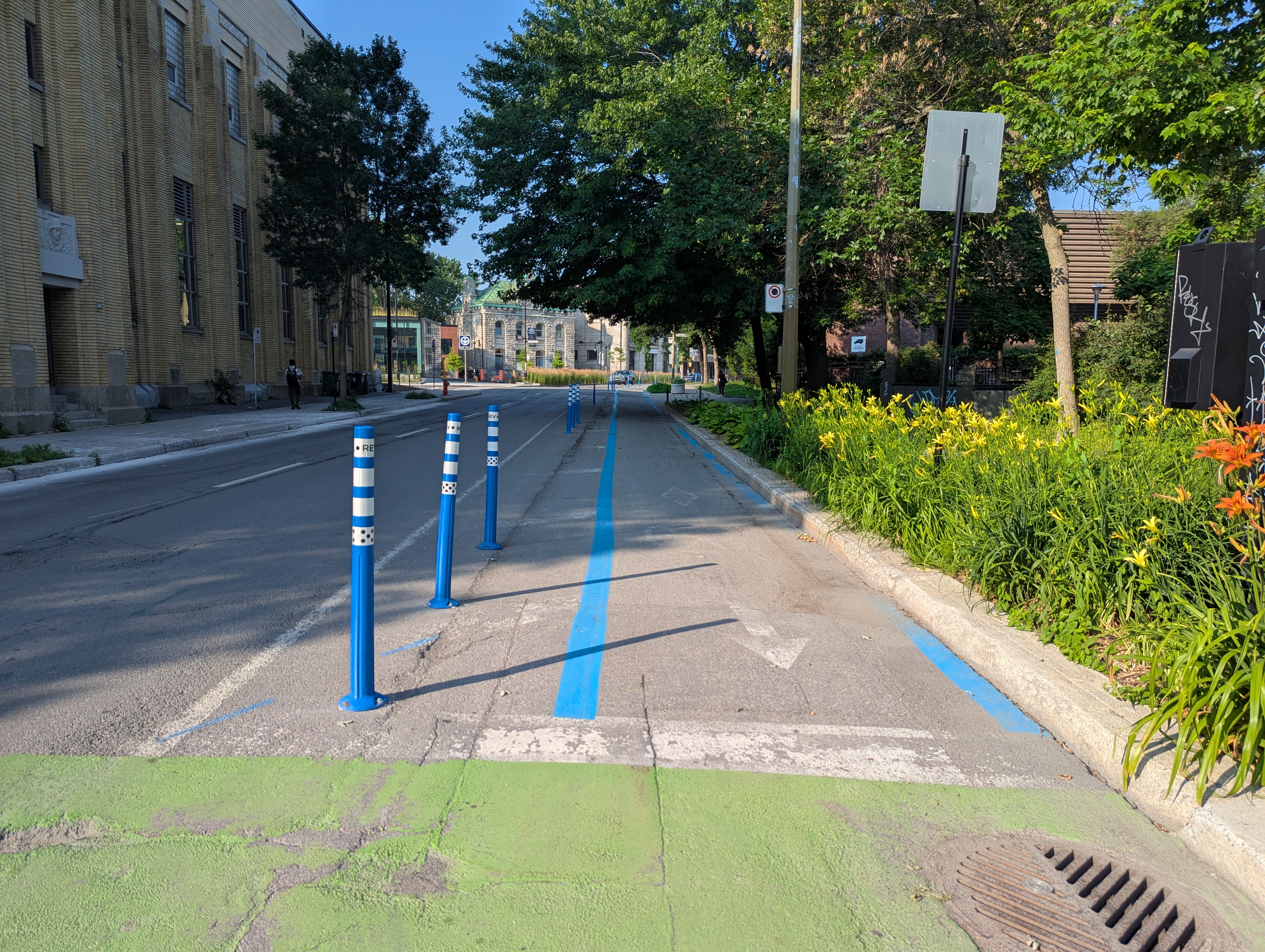 Je ne sais pas si mon courriel au 311 y est pour quelque chose, mais il y a des bollards sur le segment de la place Saint-Henri !