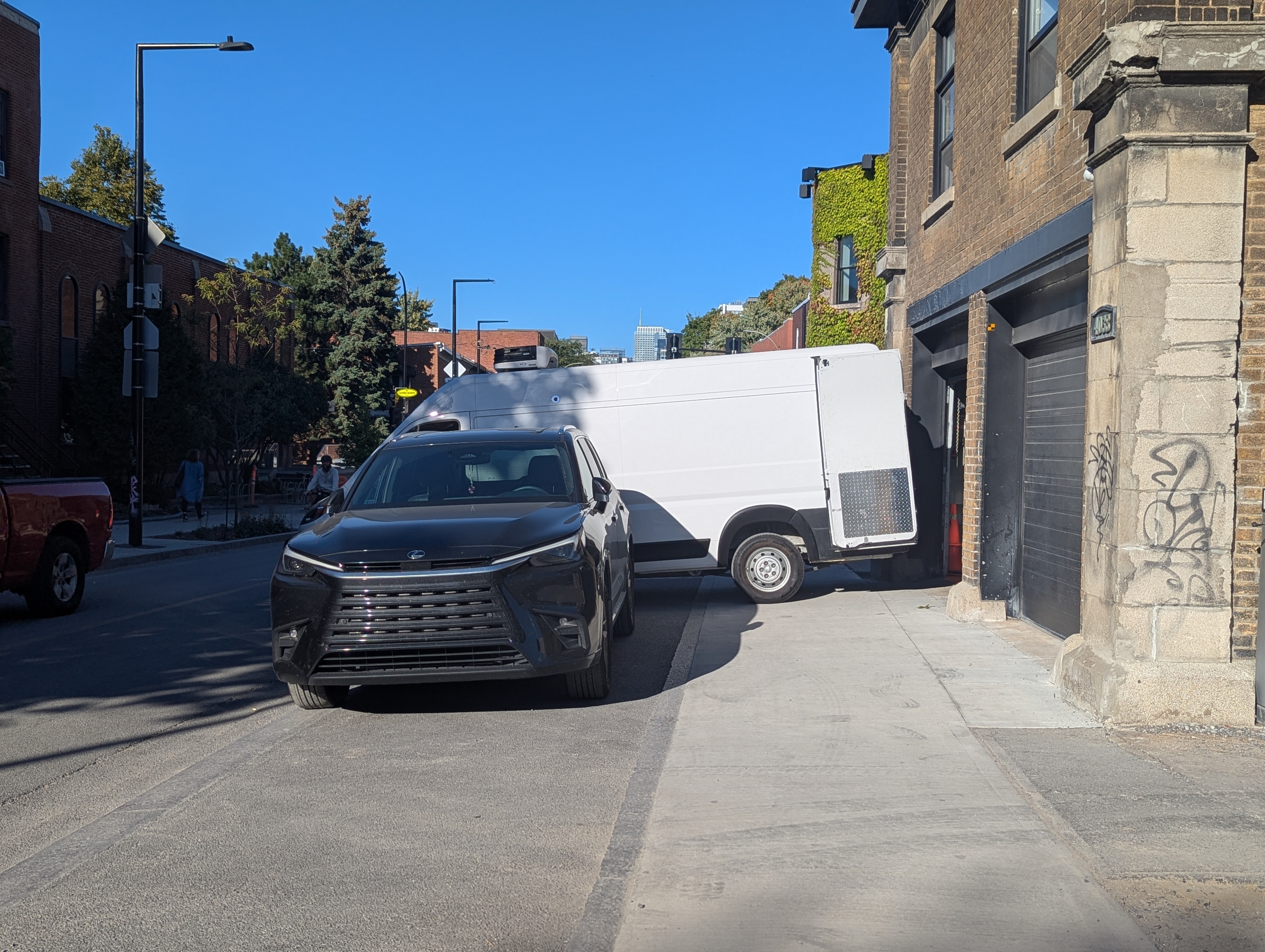 T’inquiète, on a le même problème ici, à Rosemont, avec le Pharmaprix, coin Rosemont/Des Écores. Il y a régulièrement un camion qui bloque le trottoir, au lieu de se stationner correctement. C’est agaçant, je vais être honnête.