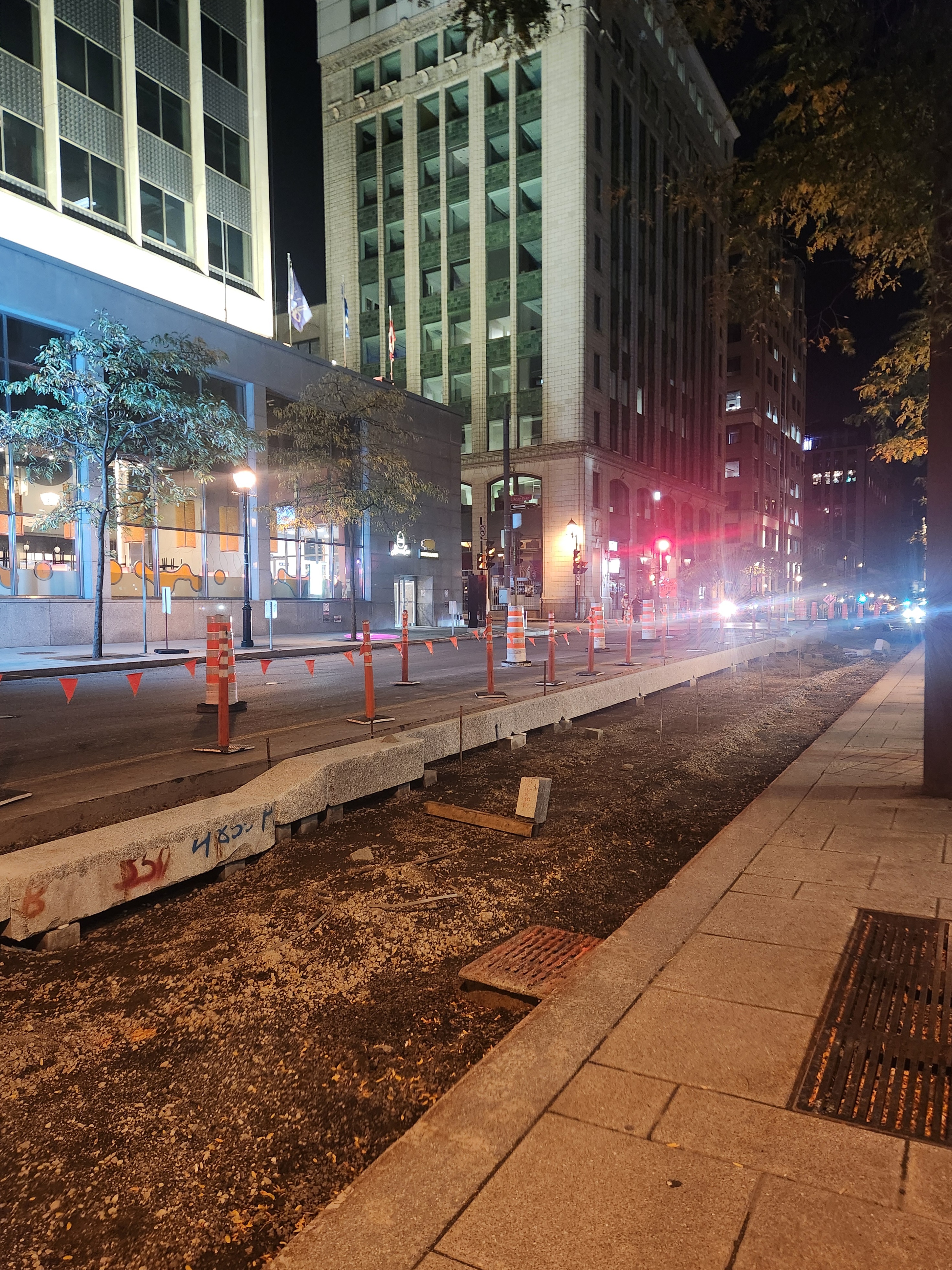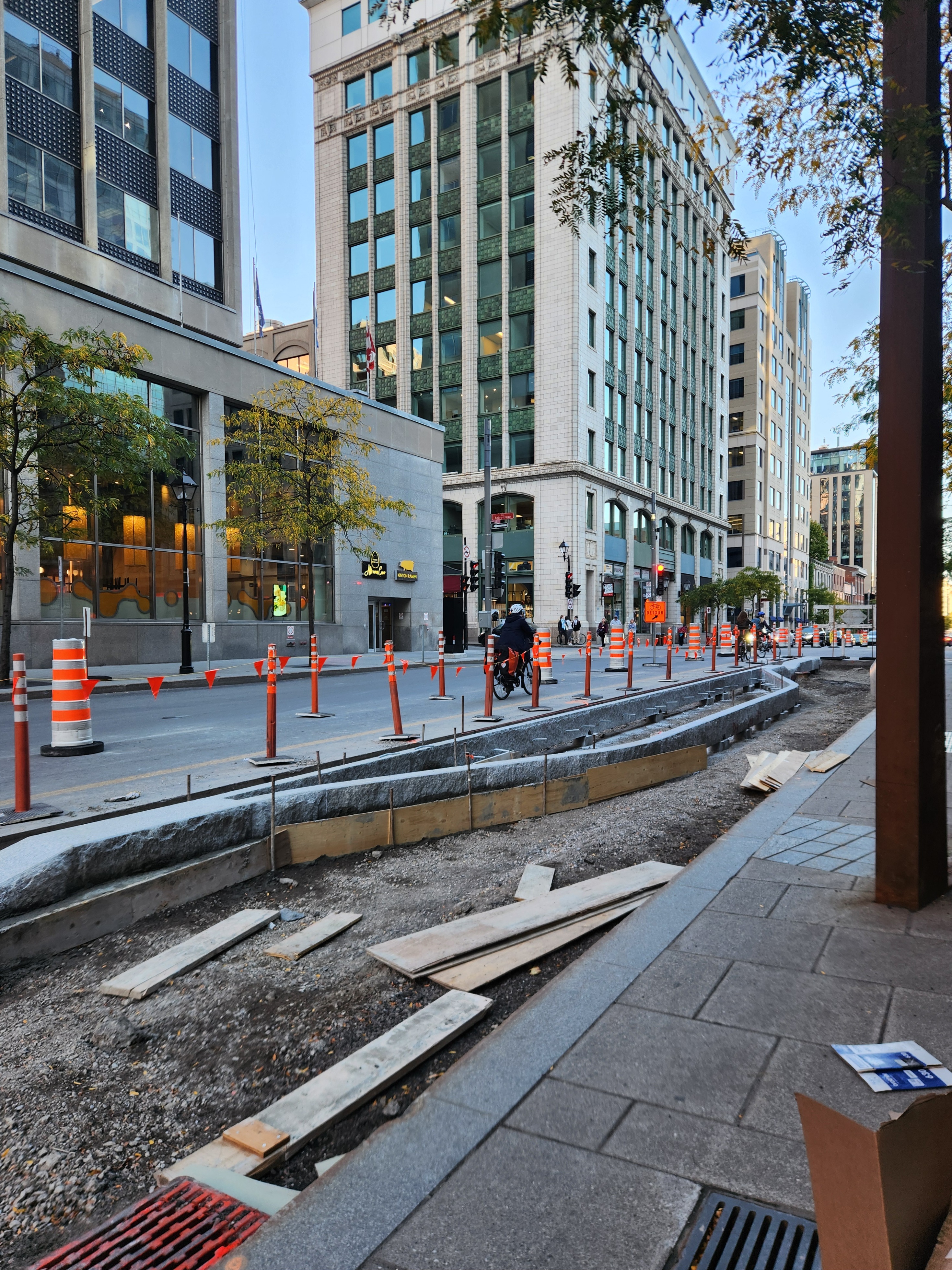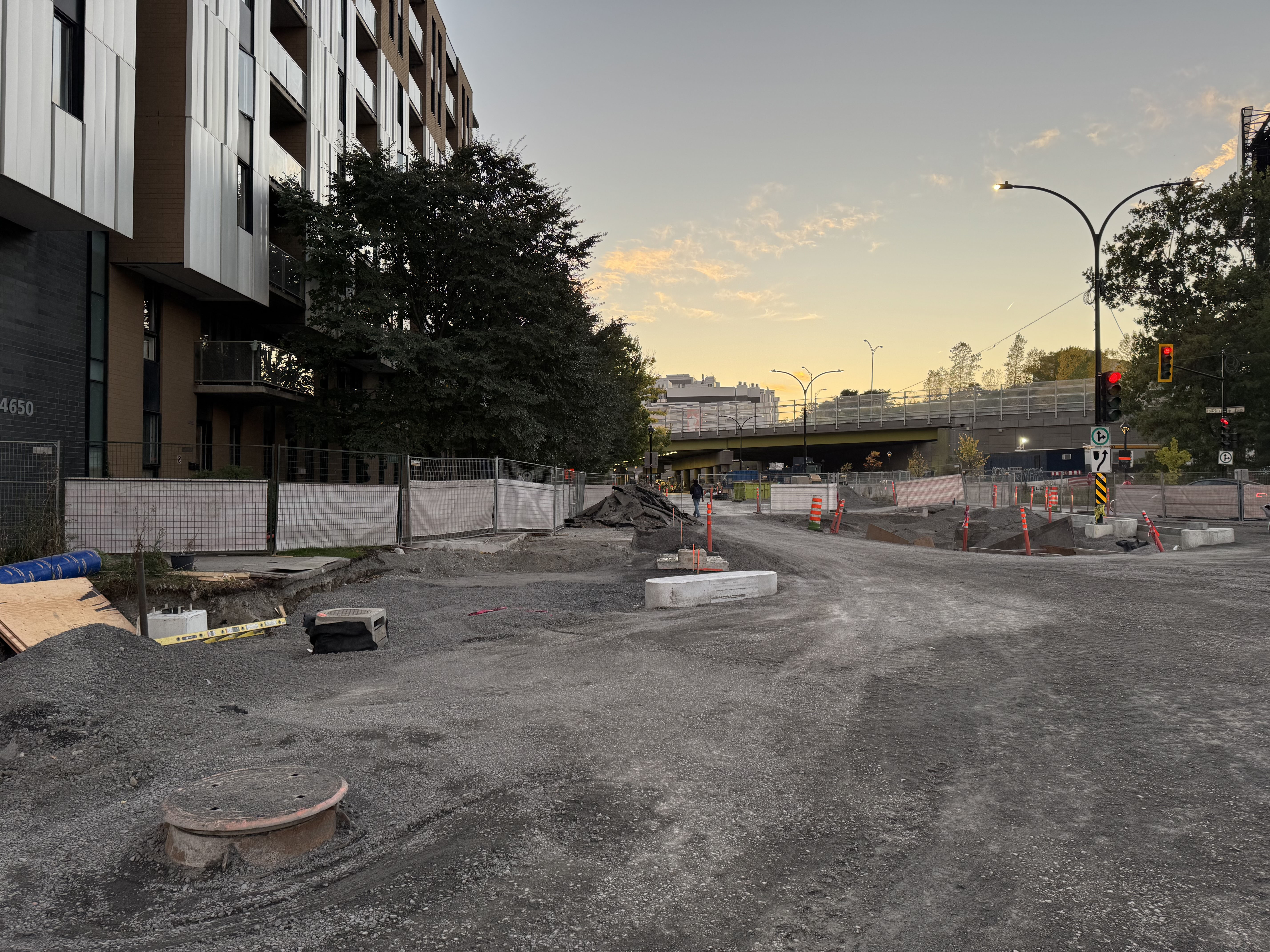 Les mails de béton protégeant le REV vont enfin être construits. Ce tronçon a été retardé en raison des échaffaudages autour du bâtiment au coin de Saint-Jacques et Greene