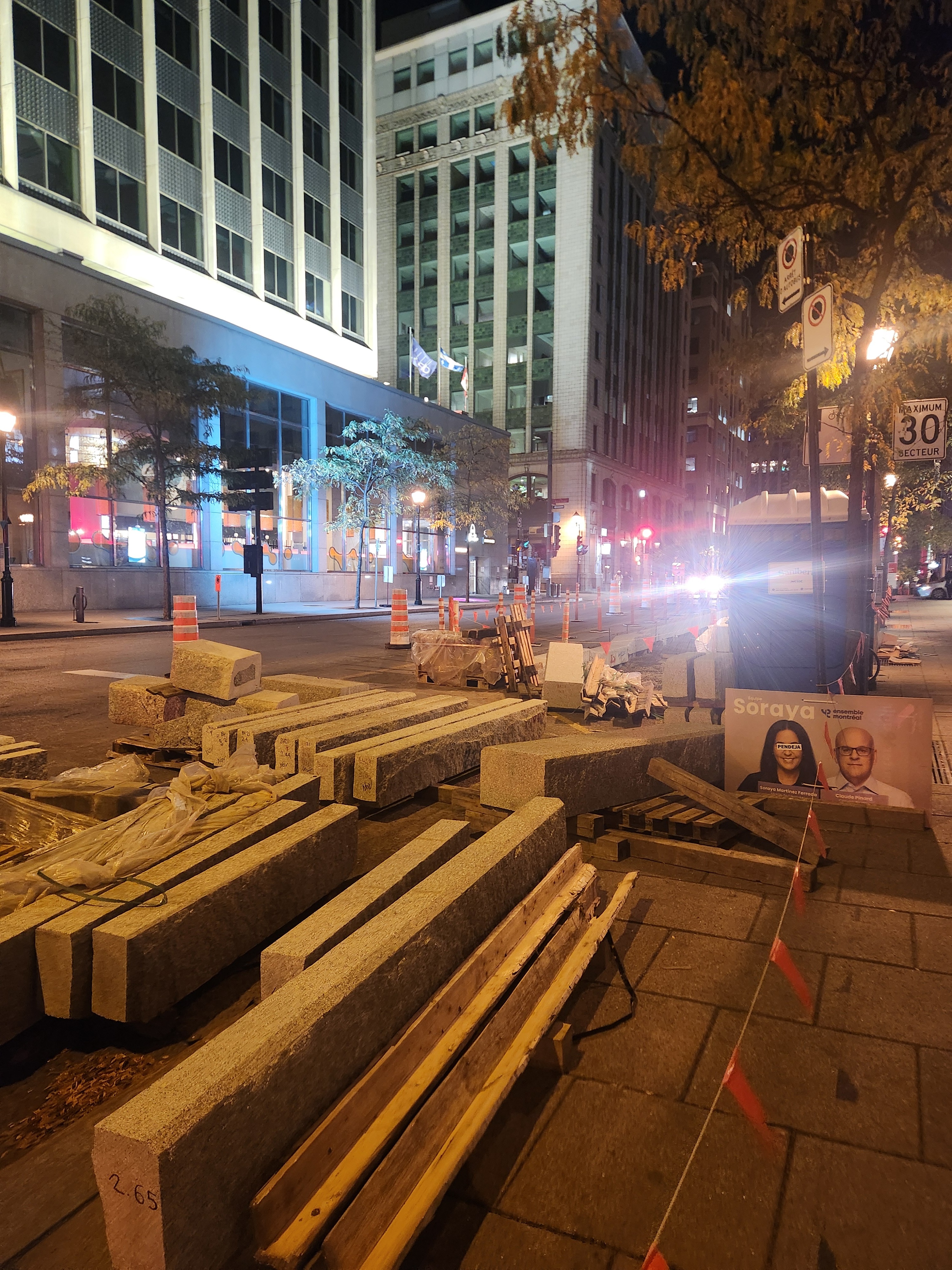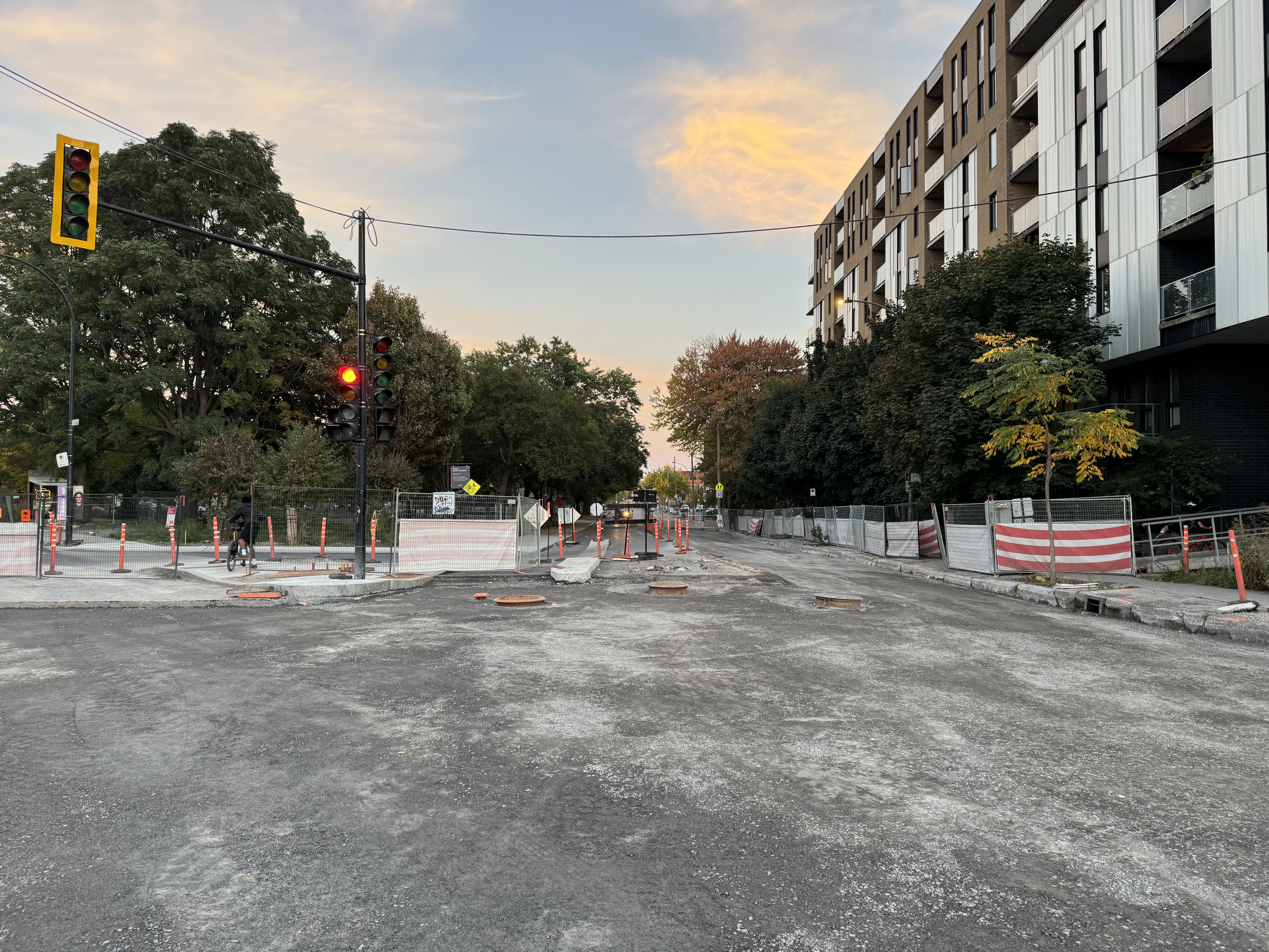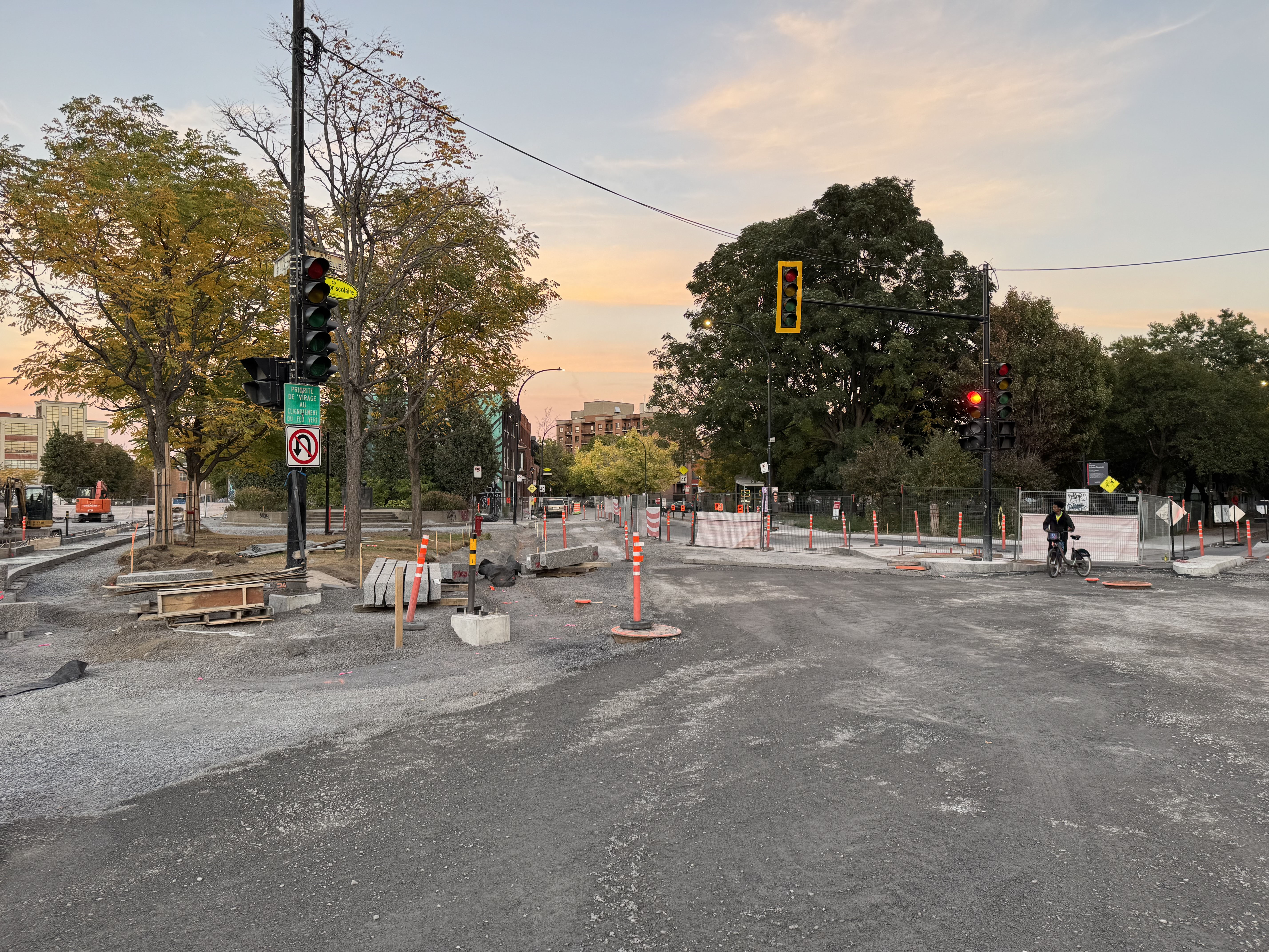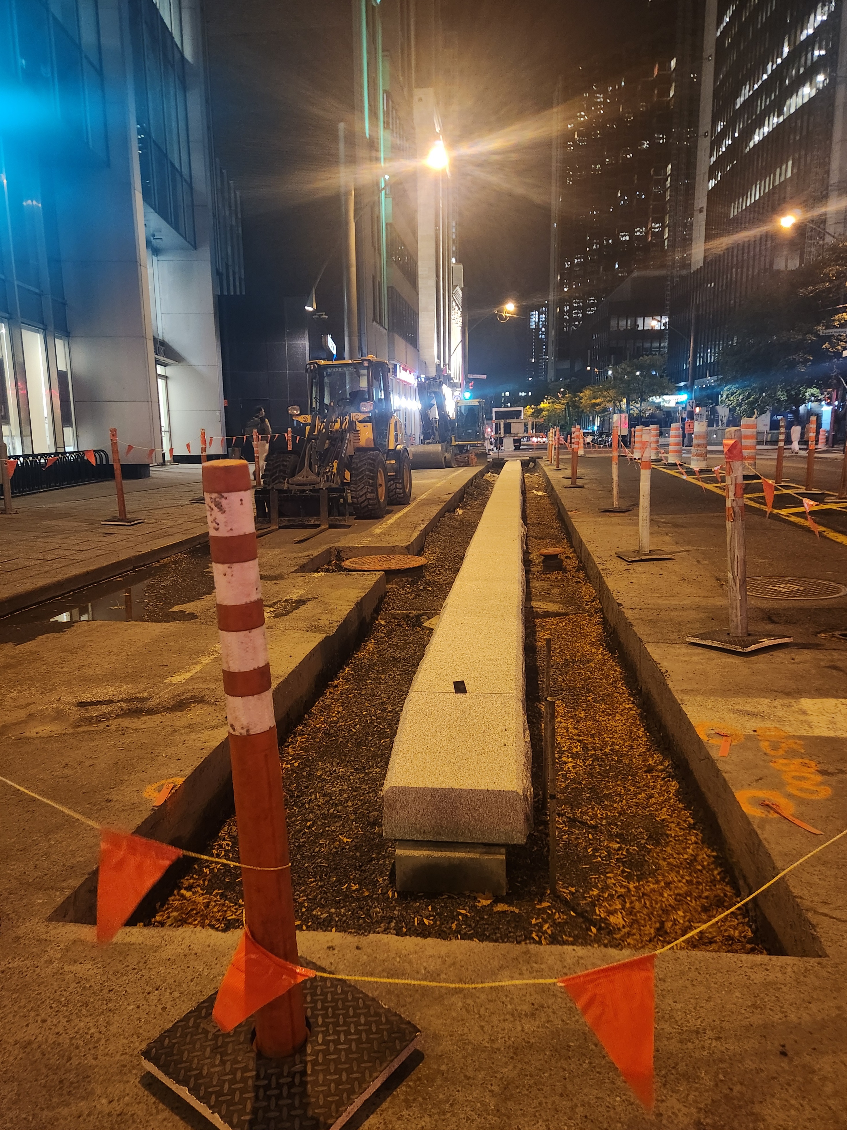 Les mails de béton protégeant le REV vont enfin être construits. Ce tronçon a été retardé en raison des échaffaudages autour du bâtiment au coin de Saint-Jacques et Greene