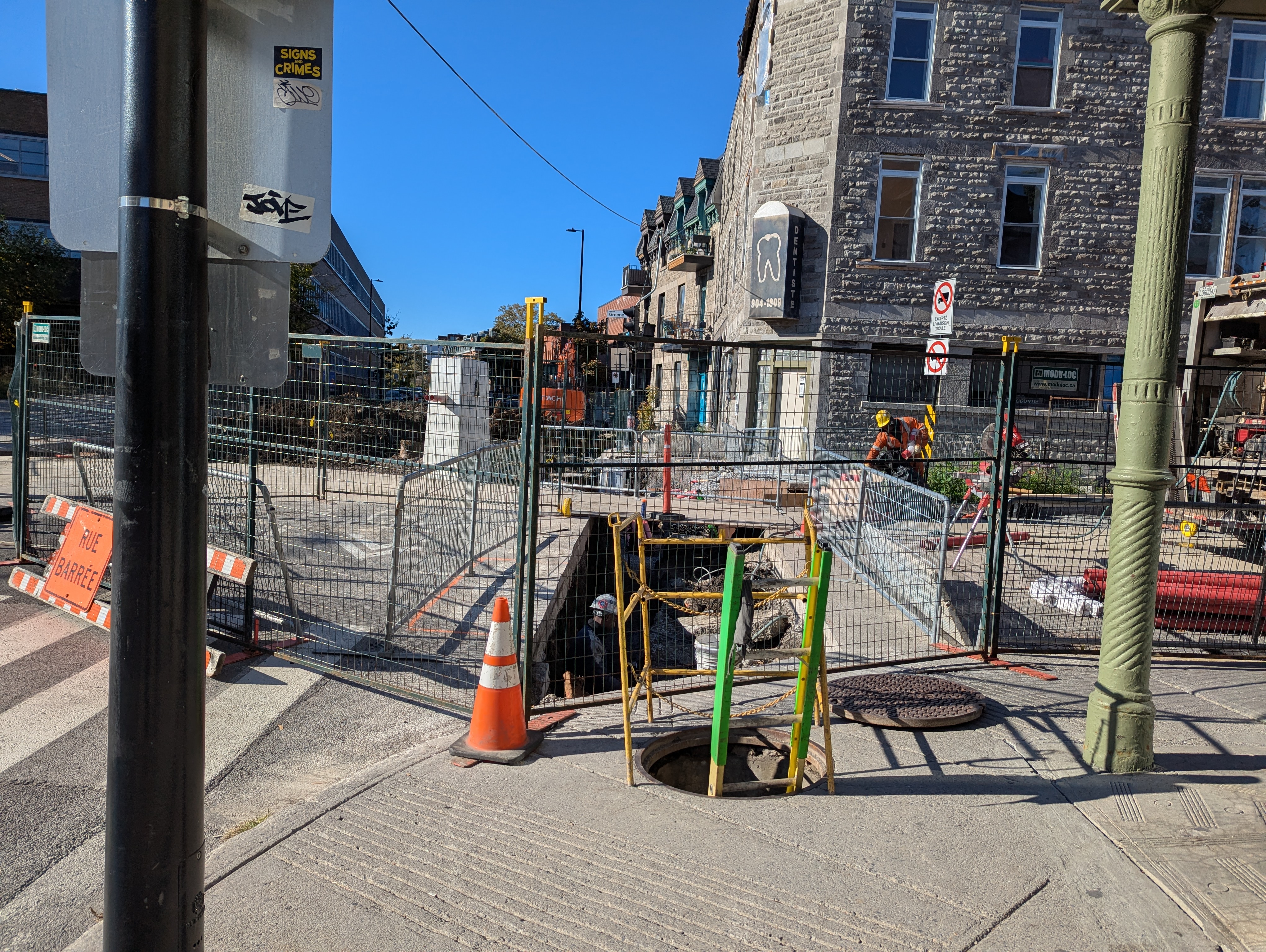 A l’est de Du Couvent, il y a des travaux qui ont débuté sur les canalisations, mais je ne pense pas que ce soit lié vu les récents avis de travaux.