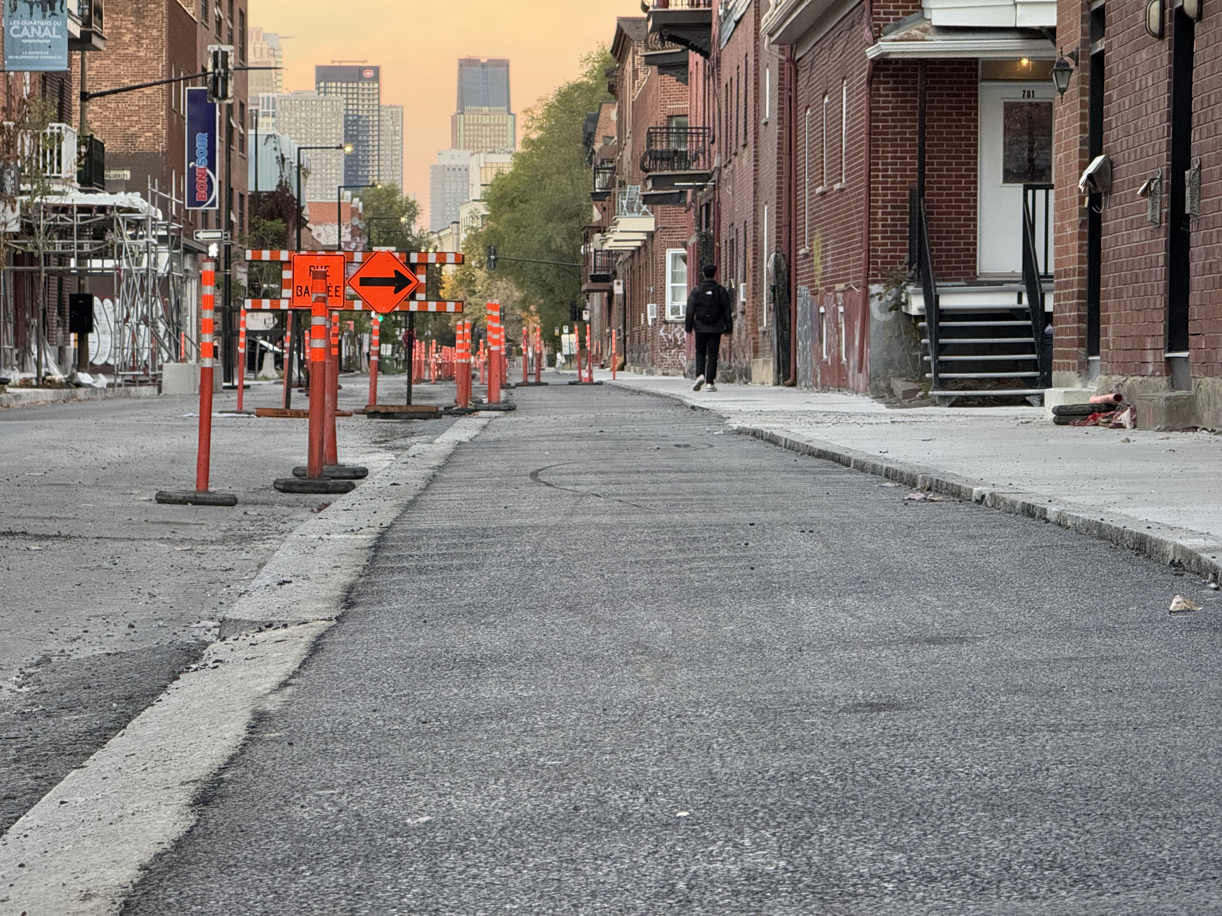 Sur Saint-Jacques, vue vers l’ouest. Ça achève entre Du Couvent et Lenoir.