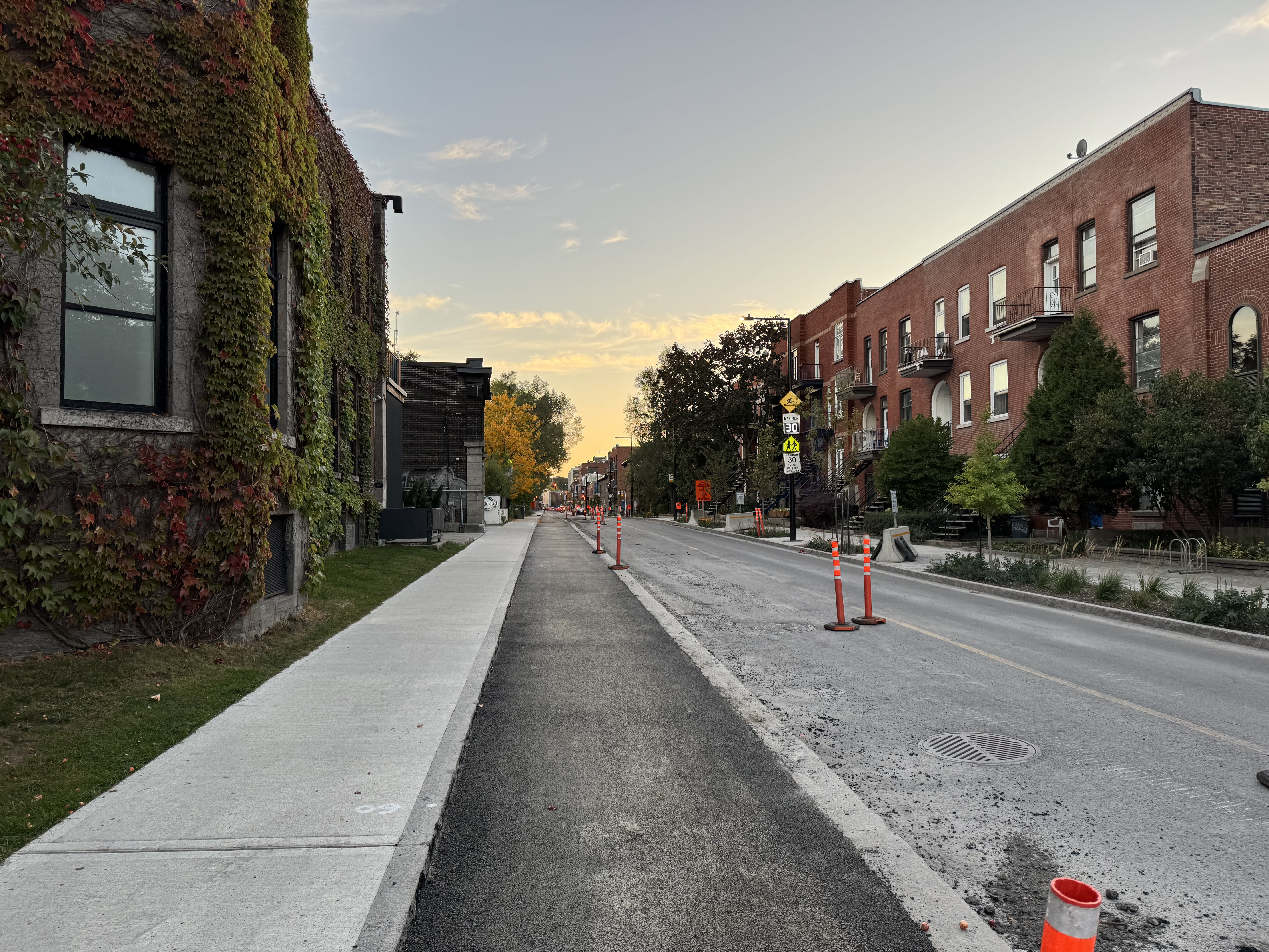 C’est pire qu’entre Atwater et Rose-de-Lima. En Bixi, je ne remarque pas grand chose sur ladite section, mais ici, c’était turbulent. À moins qu’il reste une dernière couche avec un dénivelé plus prononcé, ça semble être la couche d’asphalte finale, puisque c’est au même niveau que le granit qui sépare la piste de la chaussée.