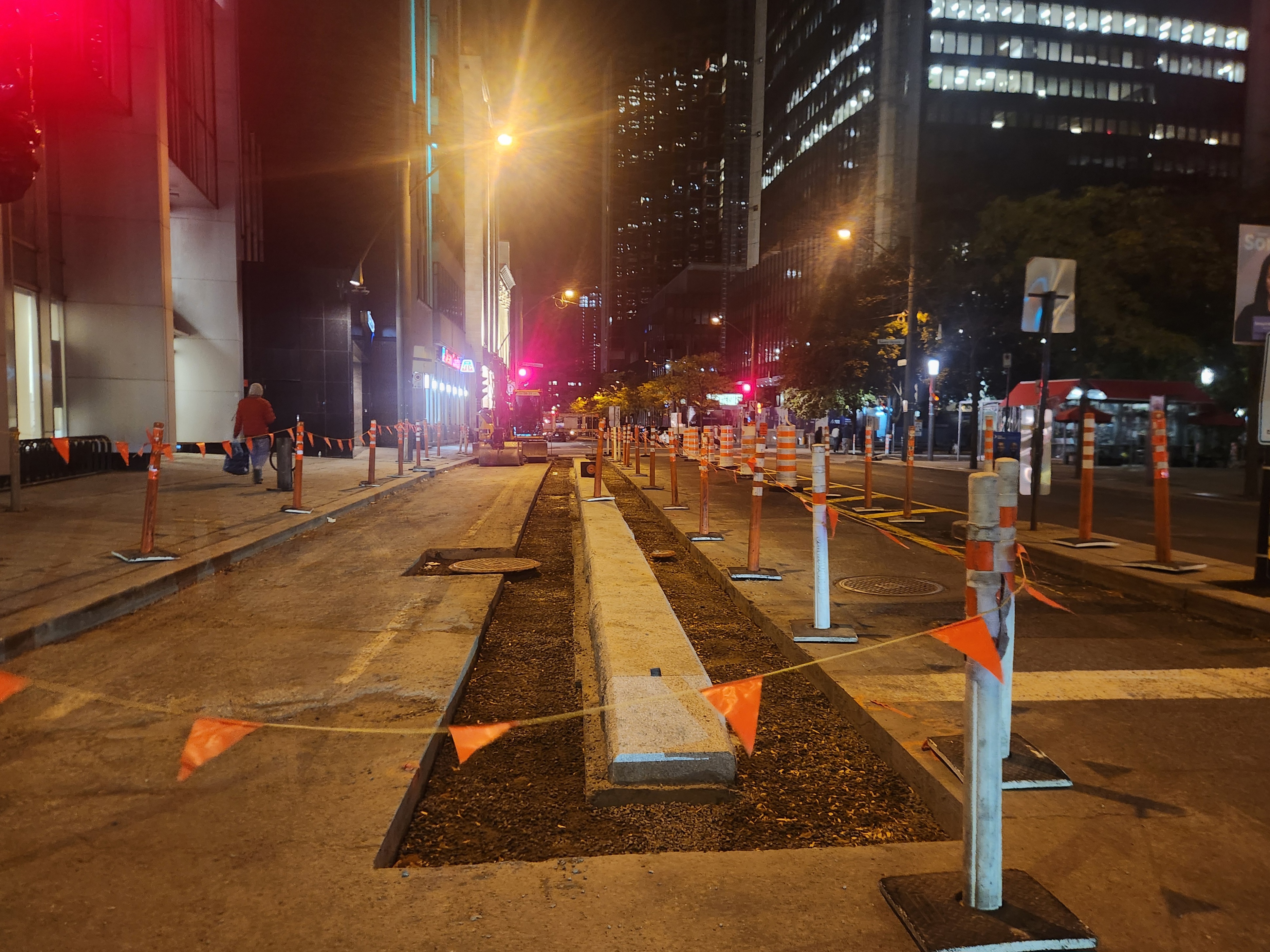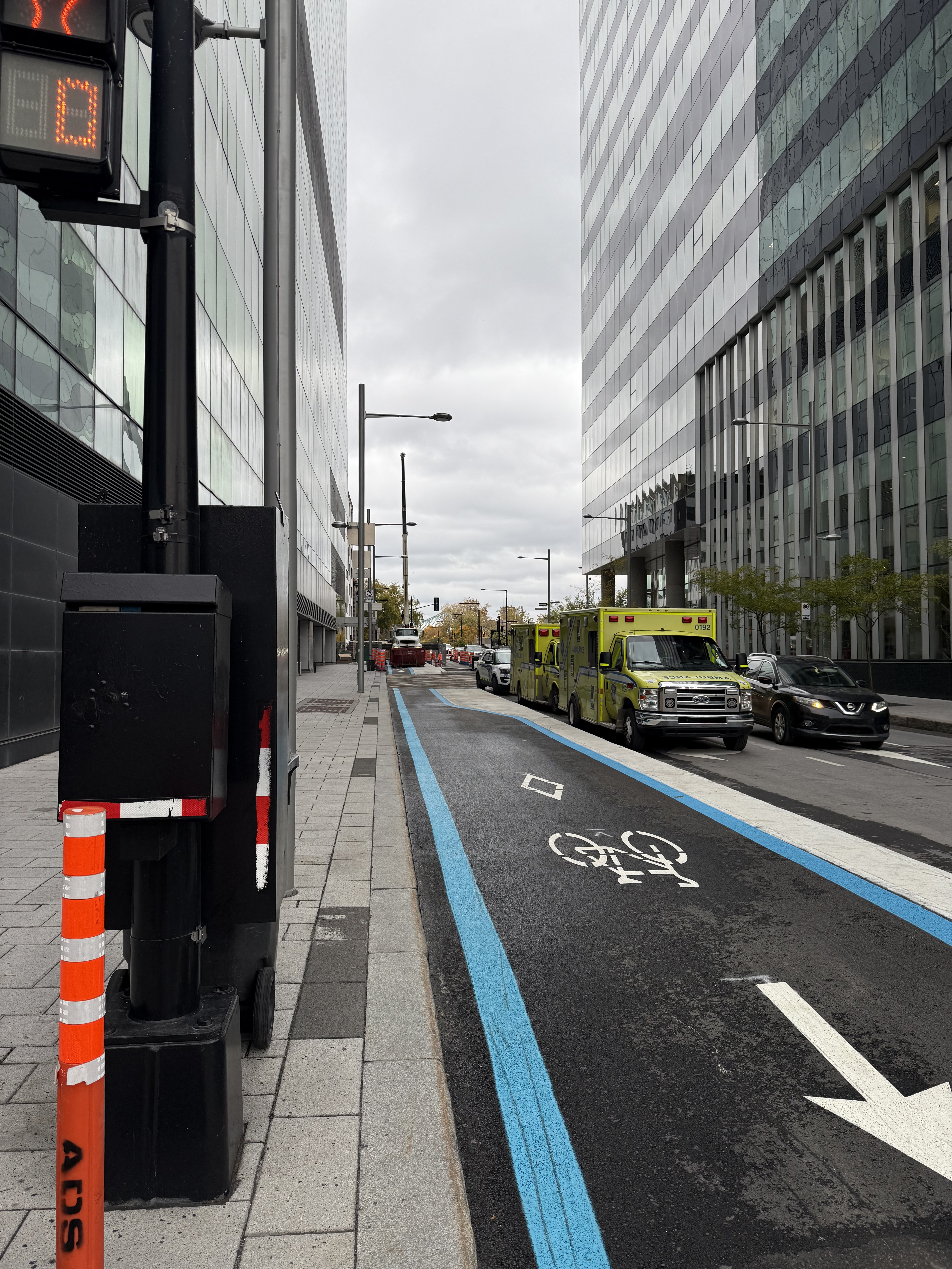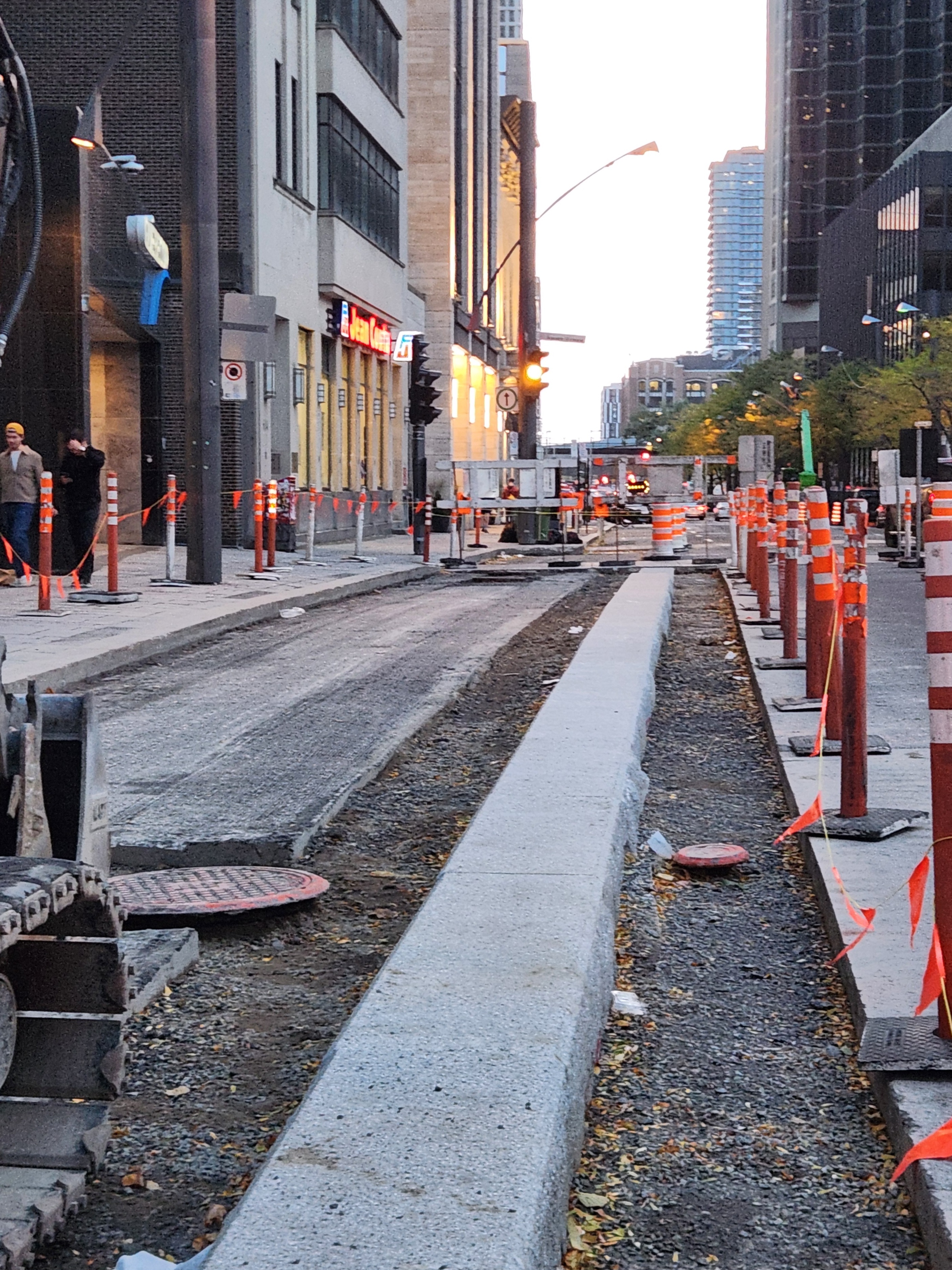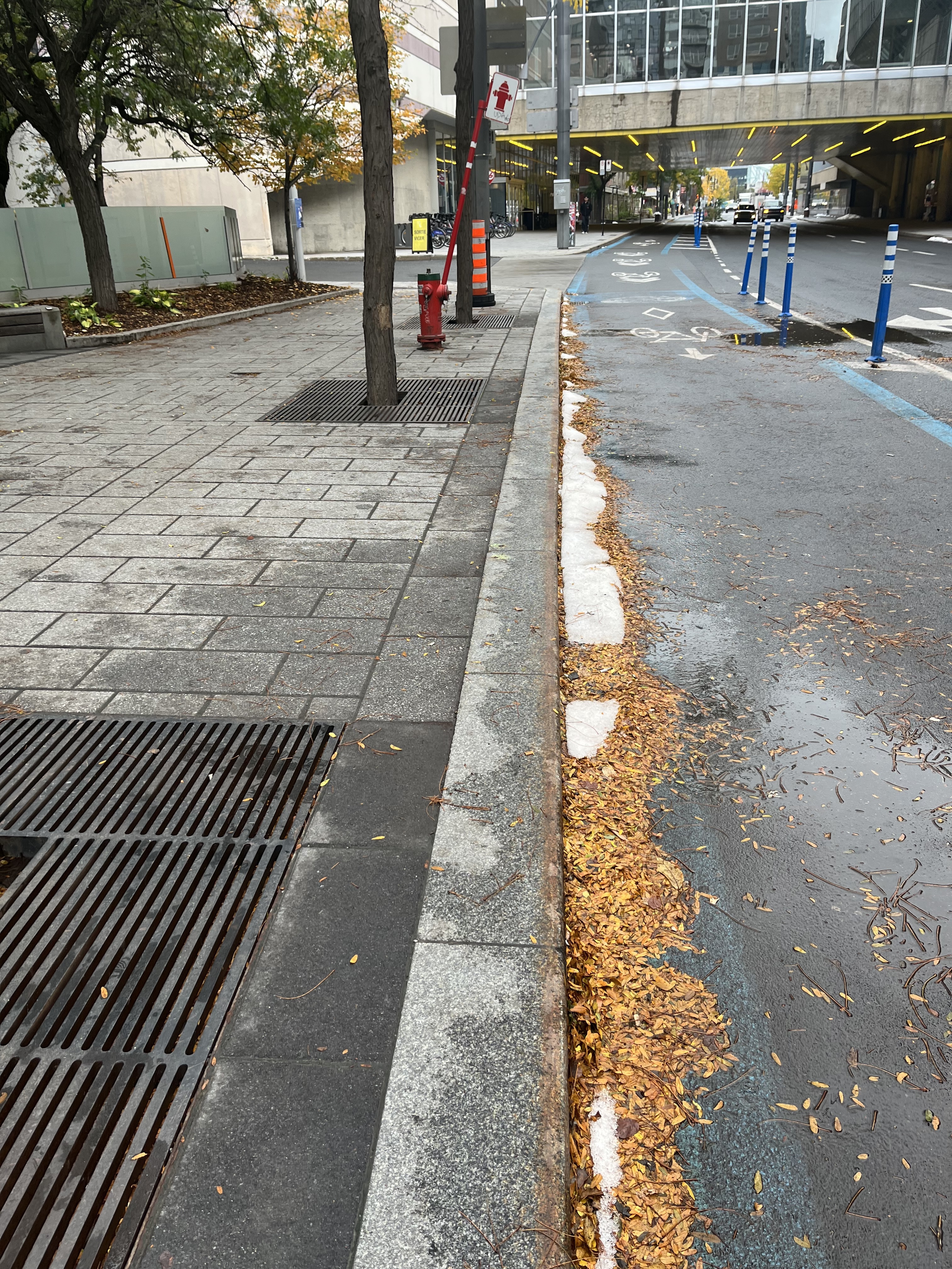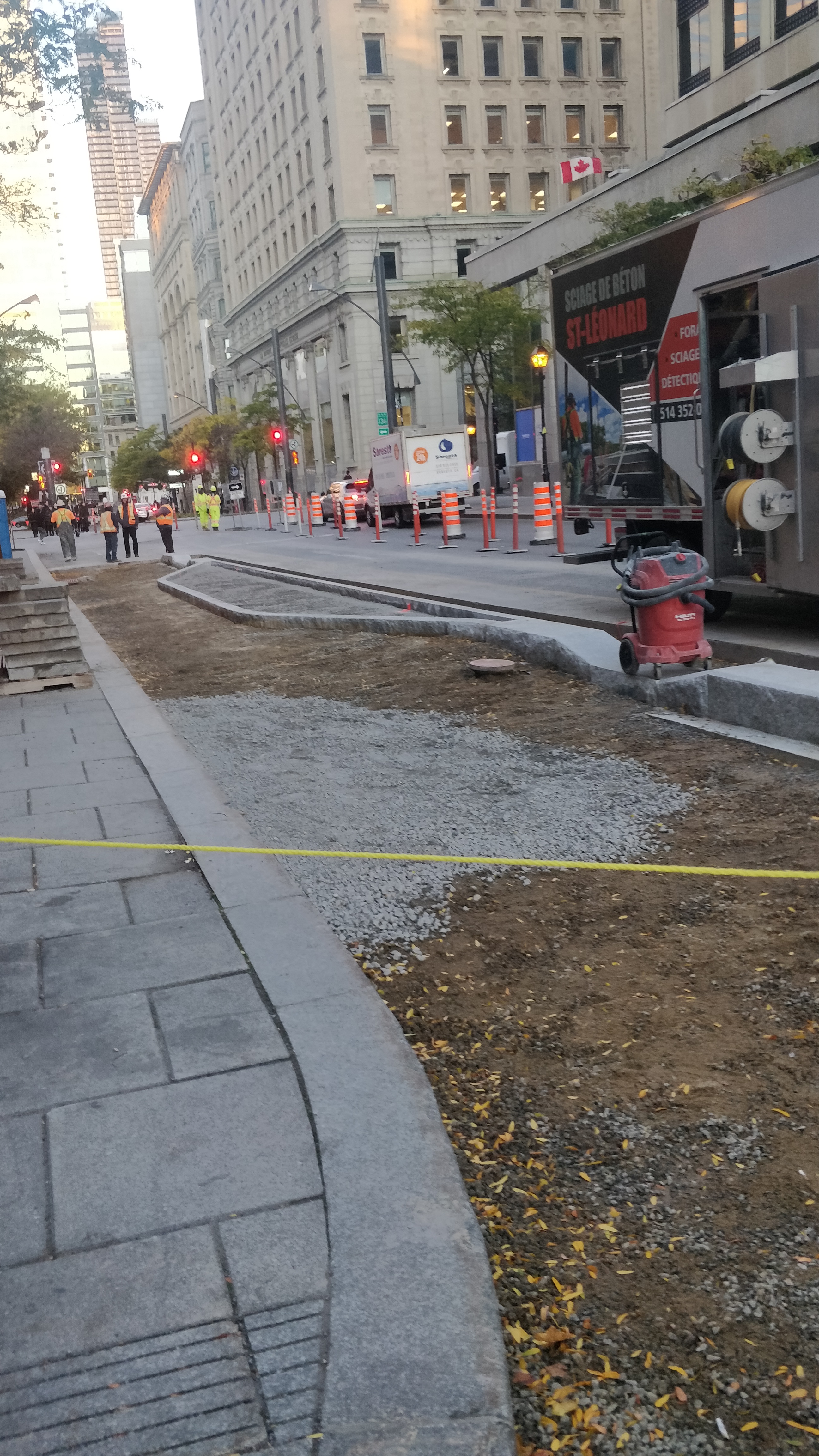 Pas de photos, mais j’ai vu des marquages au sol rudimentaires sur Saint-Antoine vers le parc Saint-Henri (entre du Couvent et Rose-de-Lima) de la forme de mails de béton comme ceux plus à l’est. ![]()