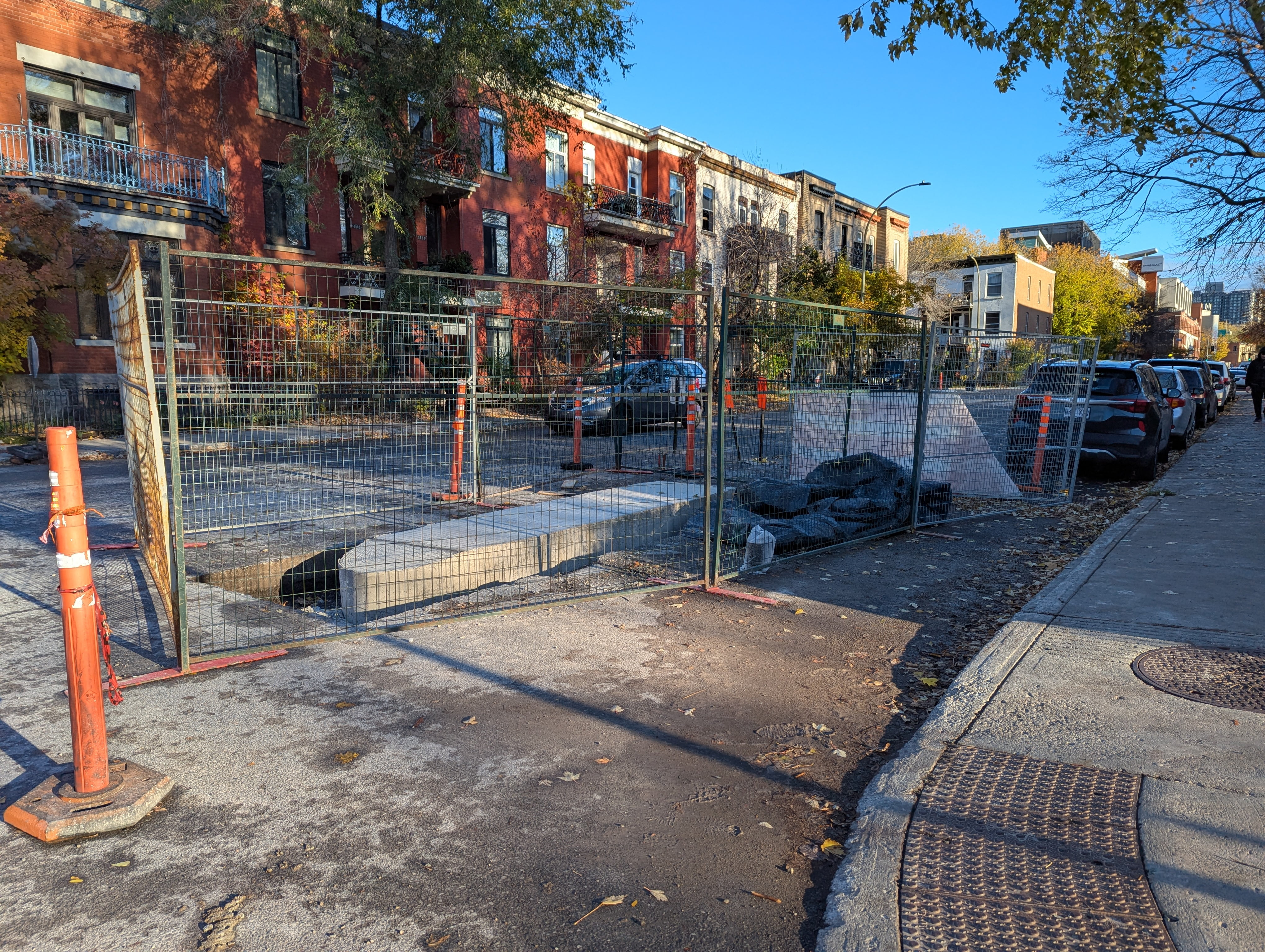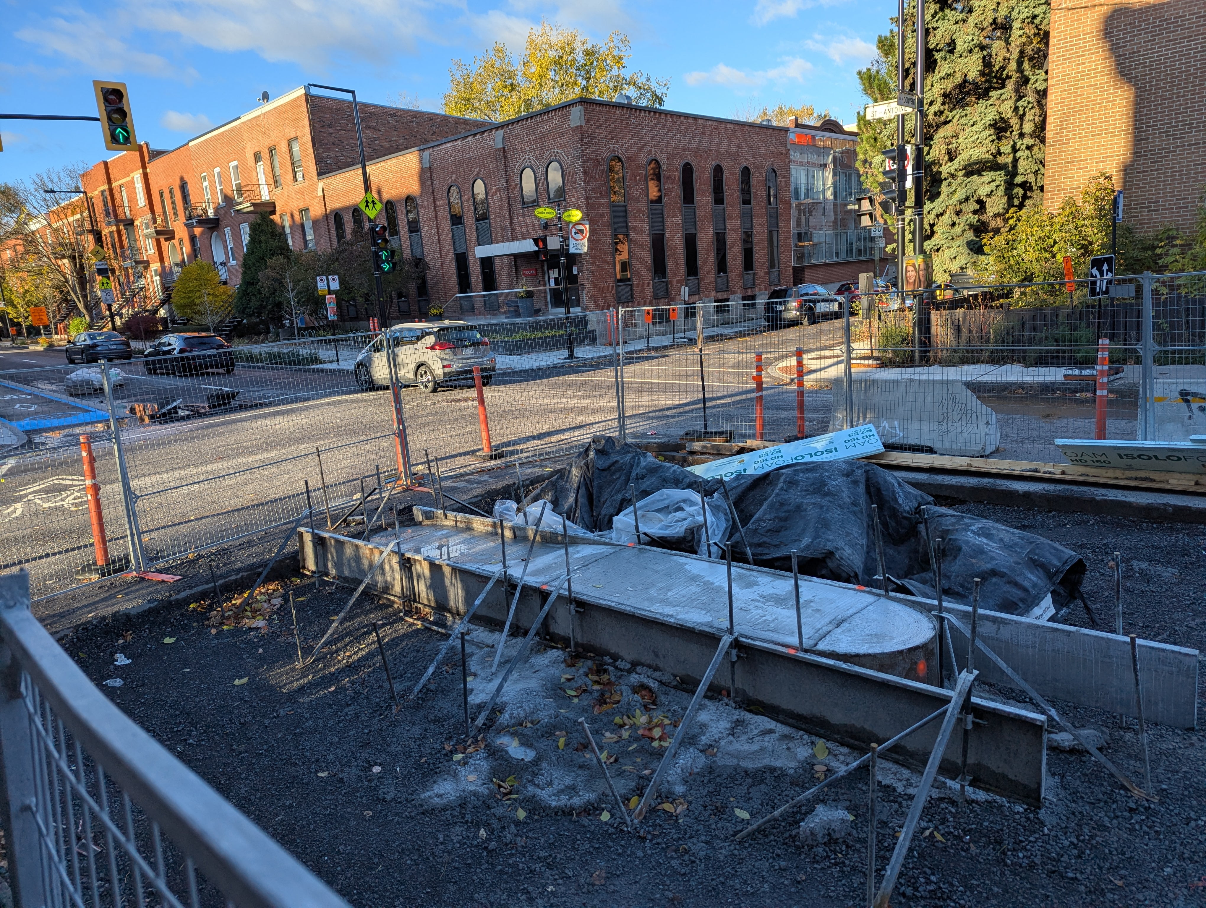 On coulait les mails de béton ce matin. Il y en a également un au coin du Couvent.