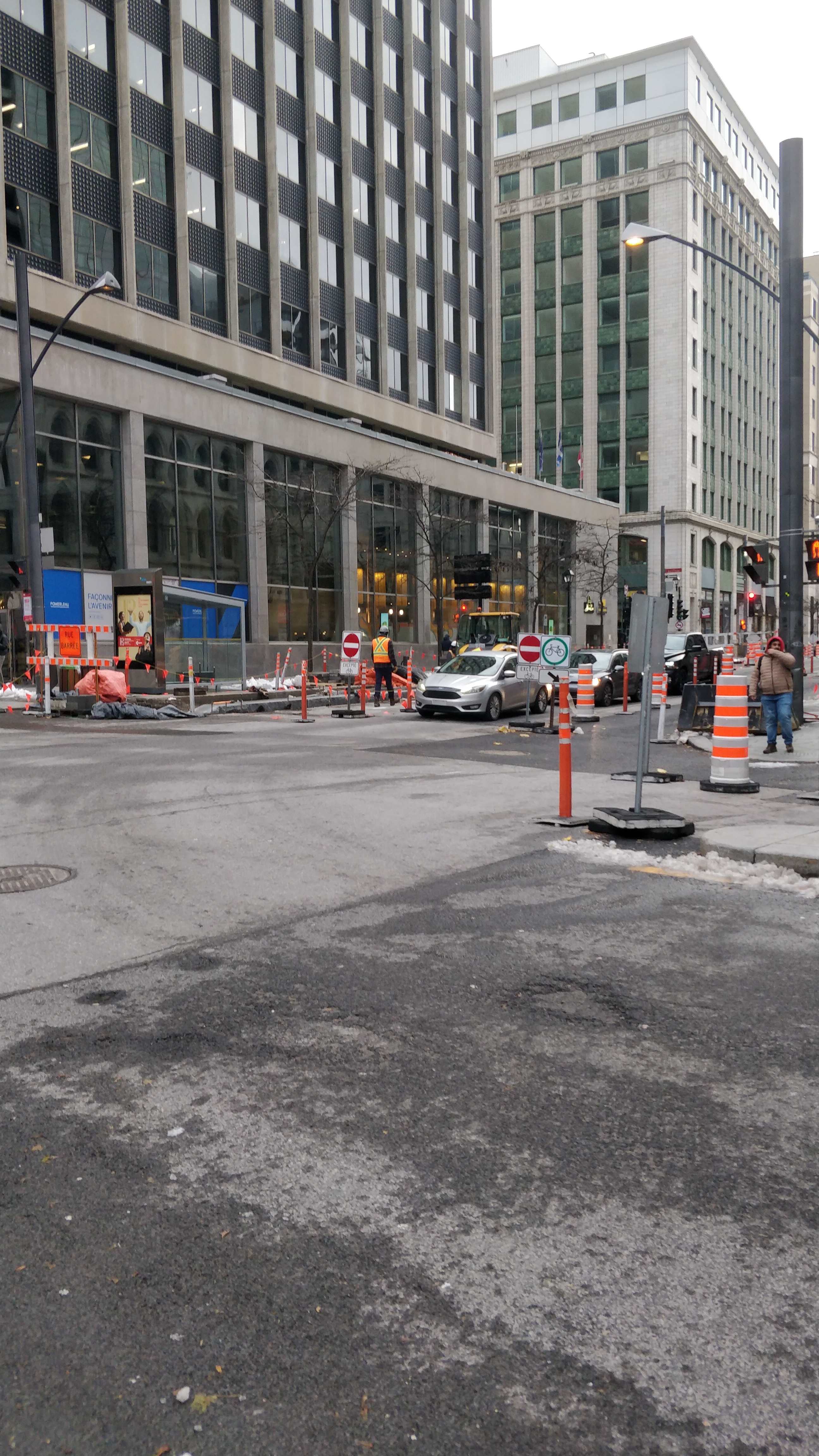 Ça aurait dû commencer moins large à partir de Viger et s’élargir à la largeur actuelle en progressant vers Saint-Antoine et Saint-Jacques.