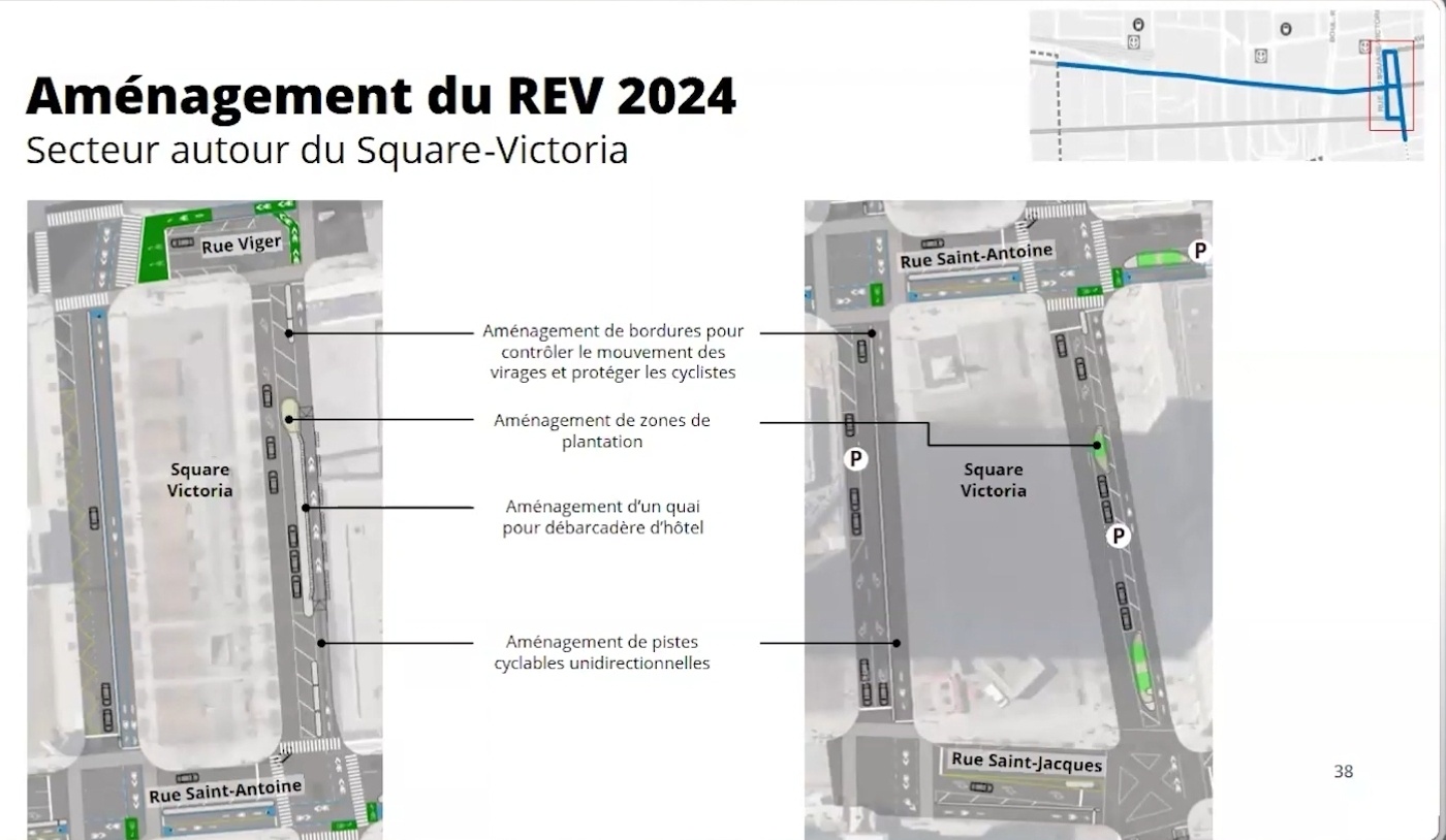 Est-ce que les pistes autour du Square Victoria sont considérées comme un aménagement transitoire (et non permanent)? Ça pourrait expliquer pourquoi c’est comme ça.