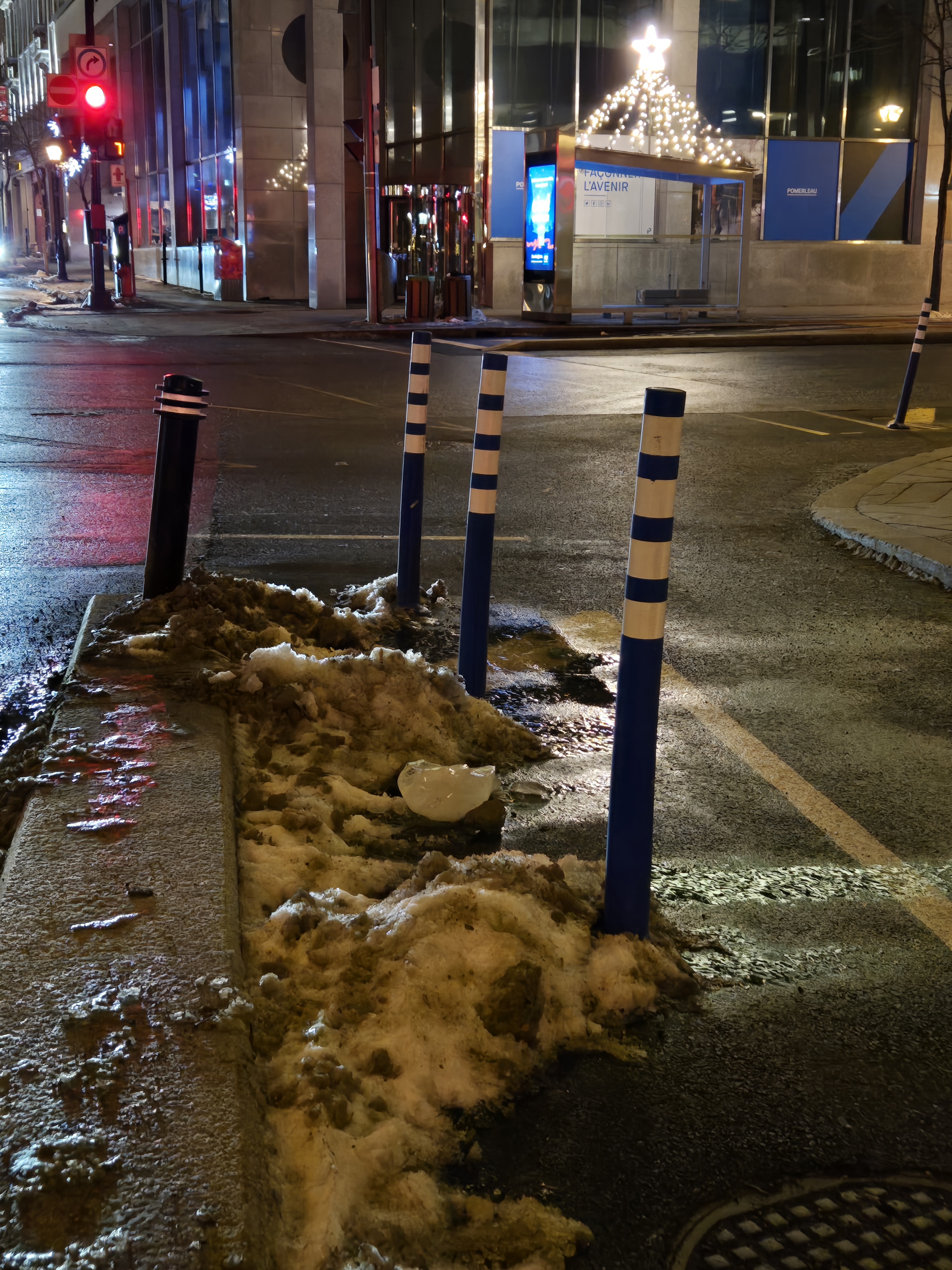 On a hâte que les cônes affaisés soient retirés, maintenant que le chantier est terminé. Les bollards plastifiés en bordure de piste semblent écrasés et ne jouent plus adéquatement leur rôle de sécurisation. Le pari est-il adéquat?