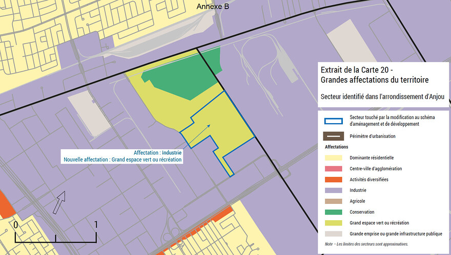 Étonnamment le terrain du golf d’Anjou figure seulement partiellement sur la carte. Il semble que la partie sud du terrain ait été sacrifiée pour le développement.